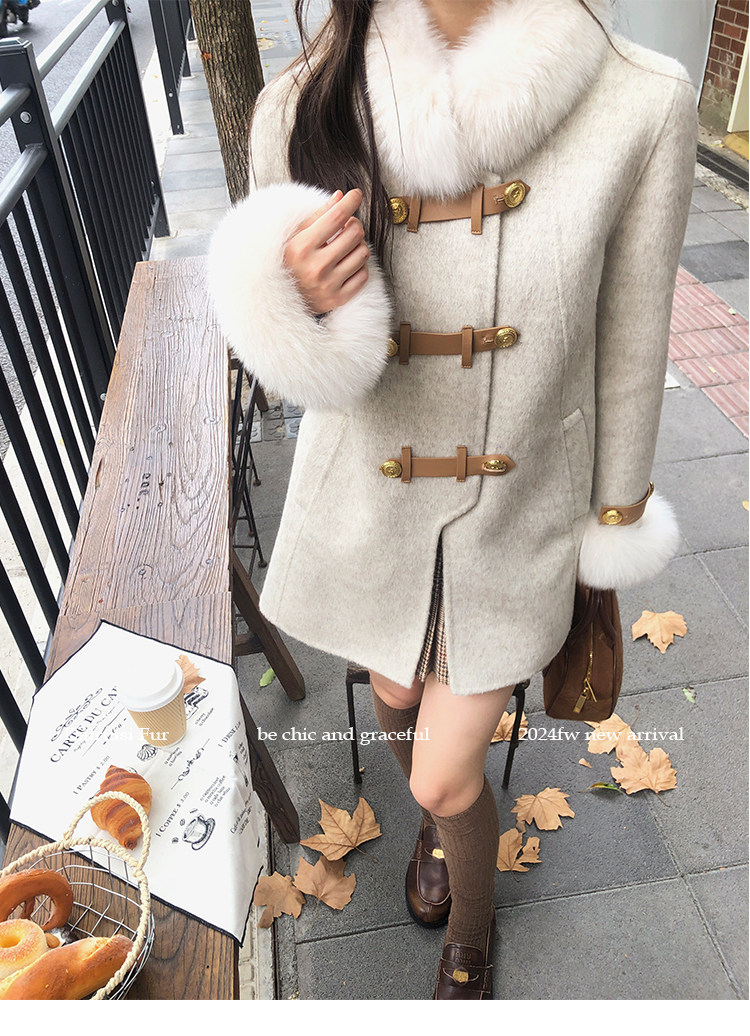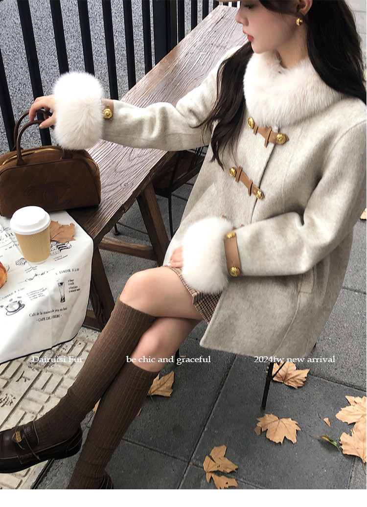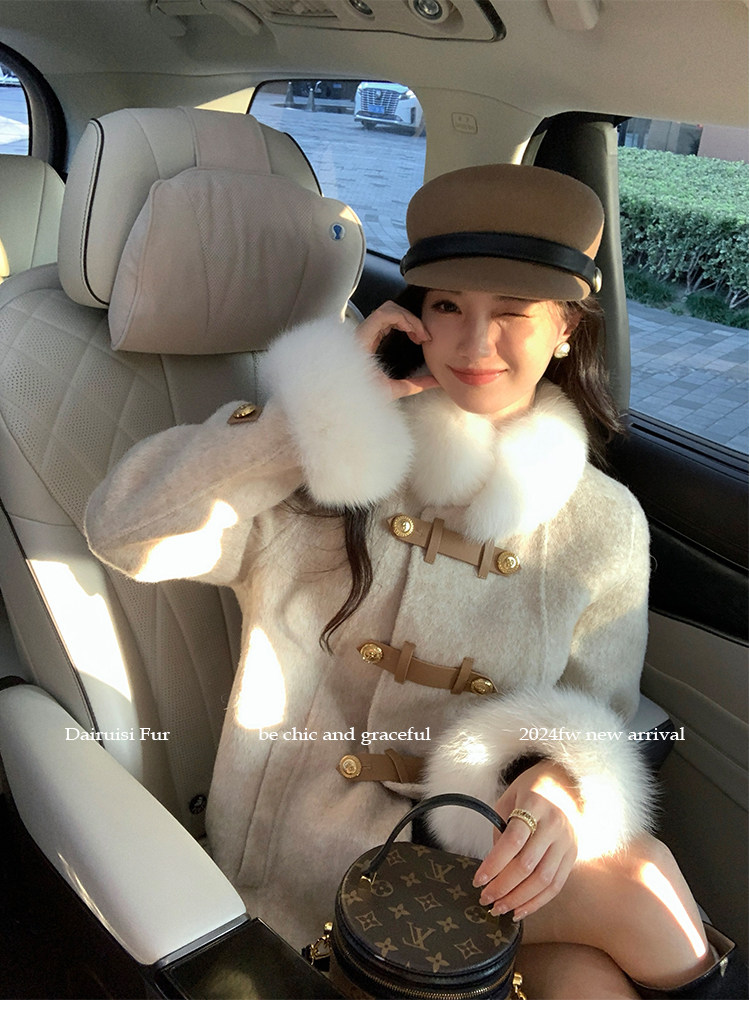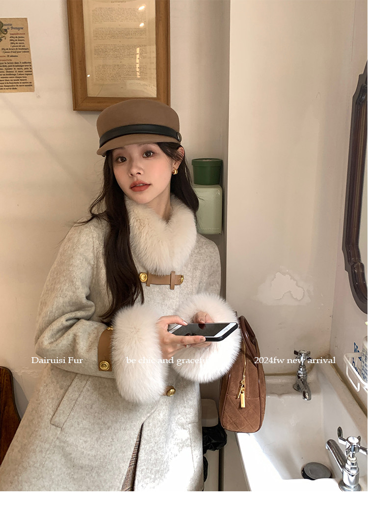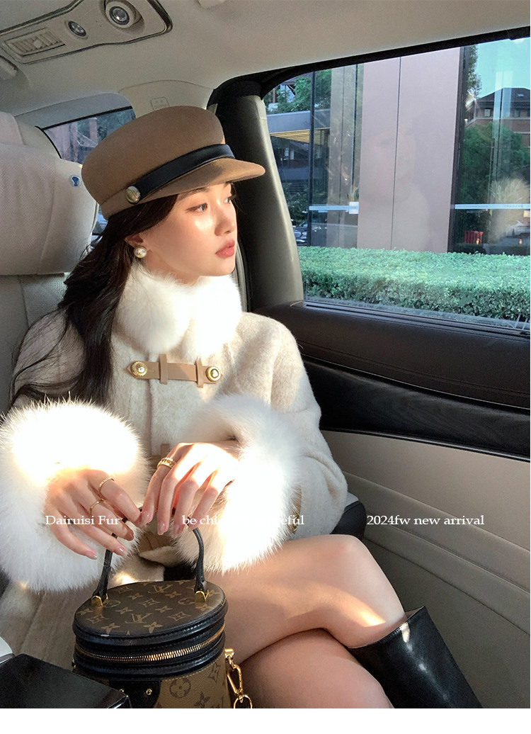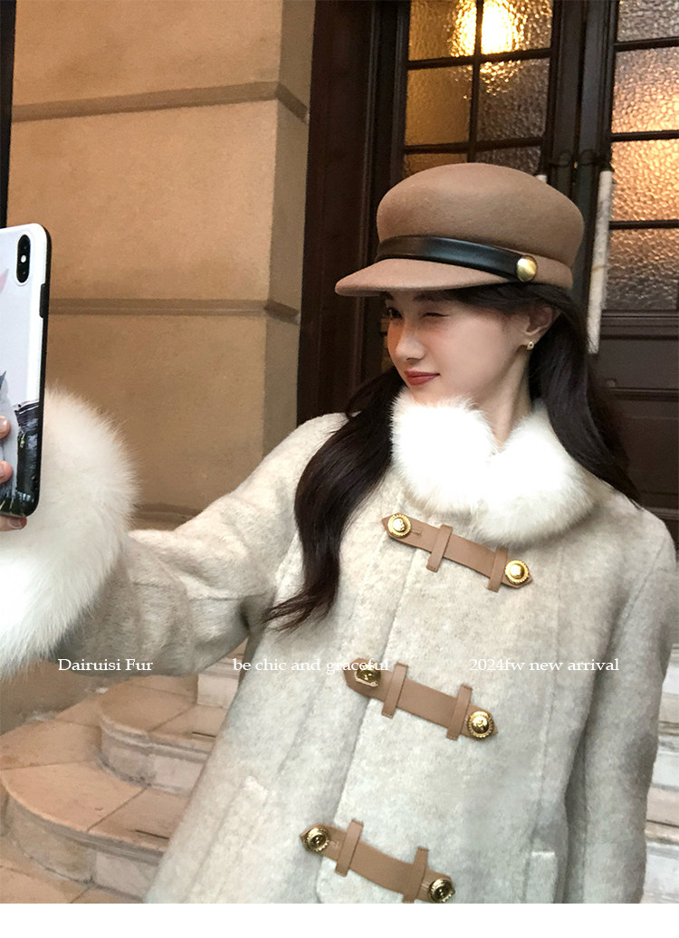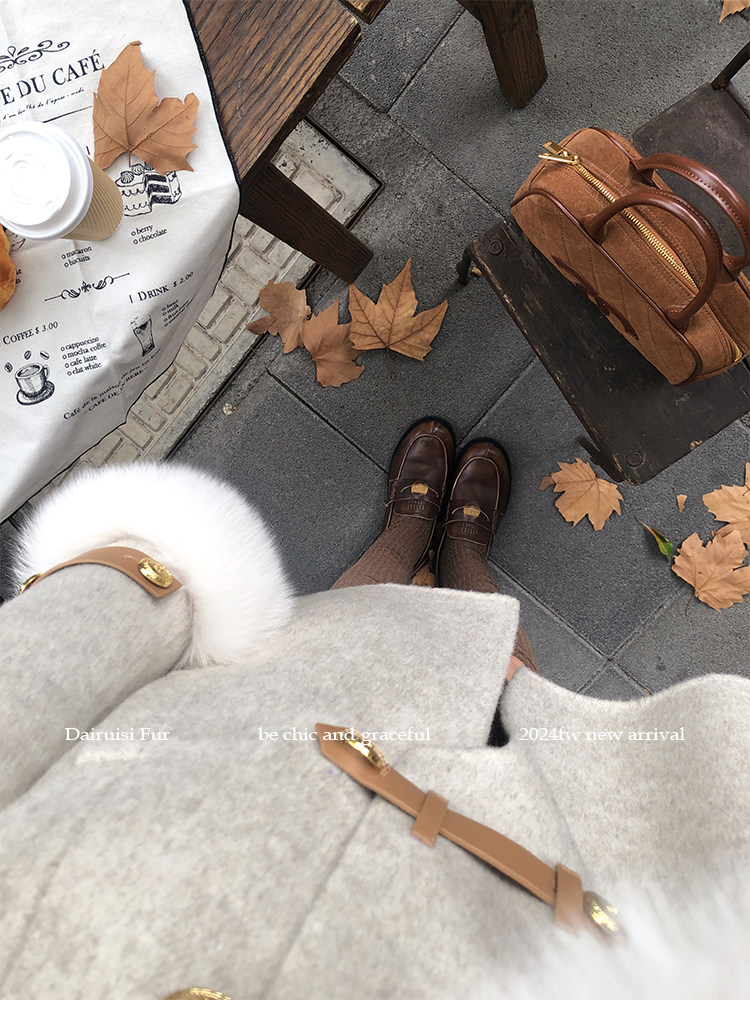 自帶奓貴甜美感的狐貍毛袖大衣 初見便是驚艷