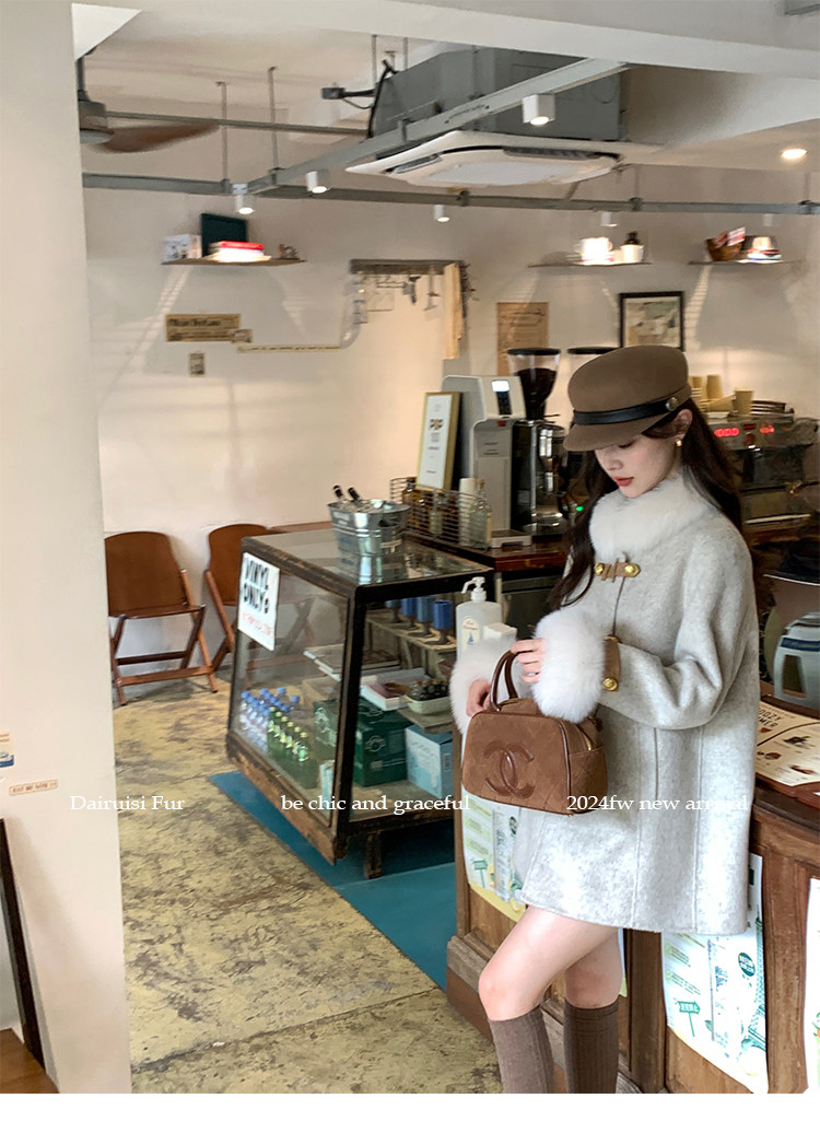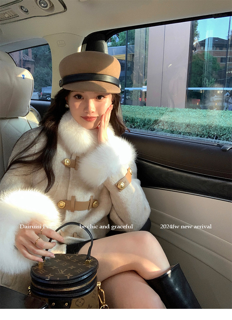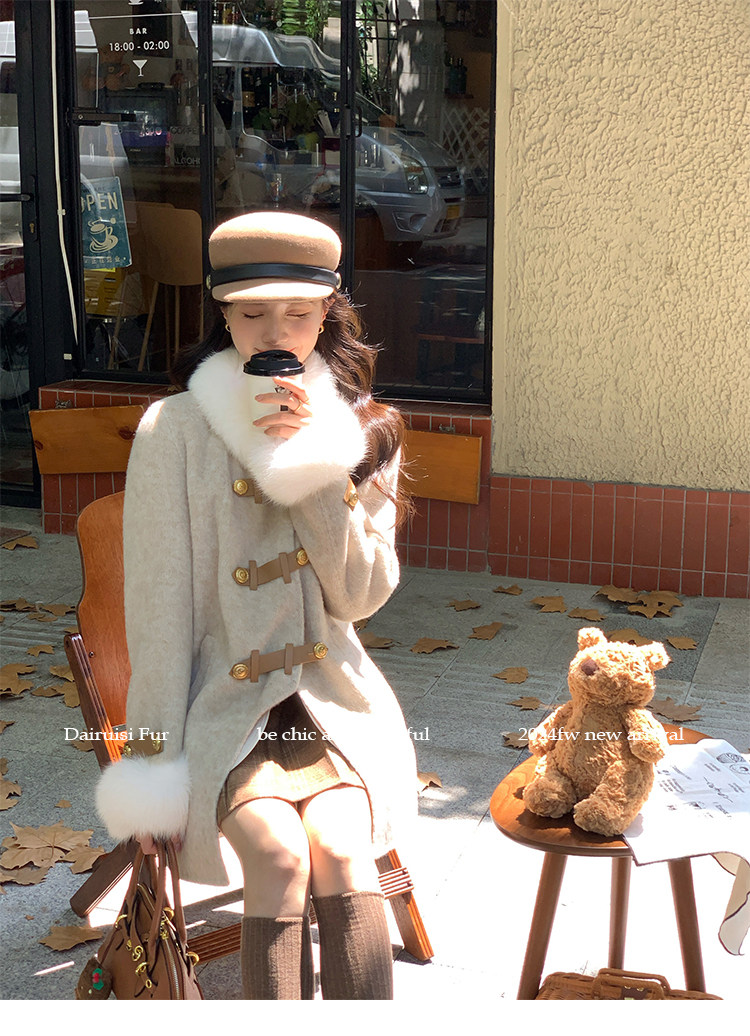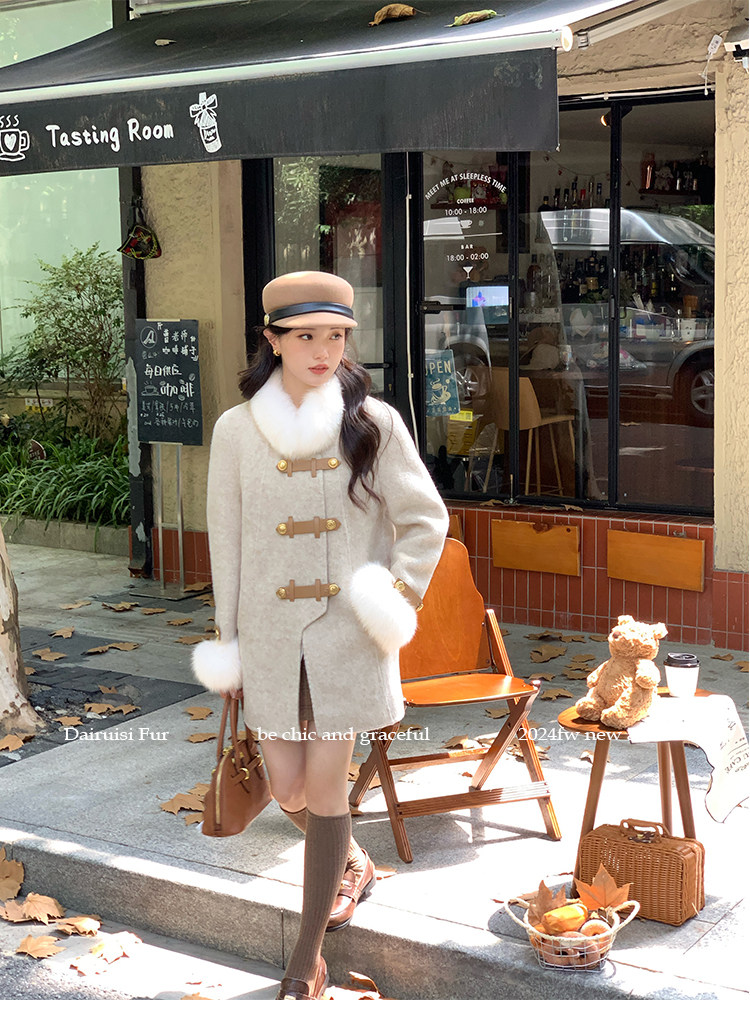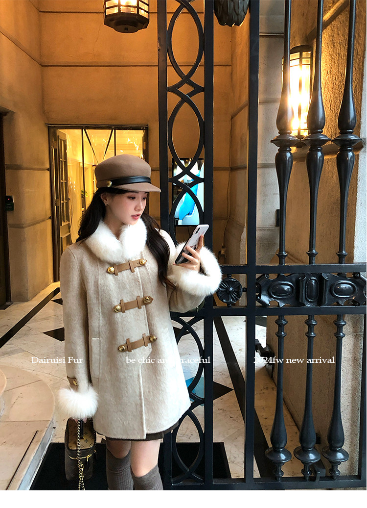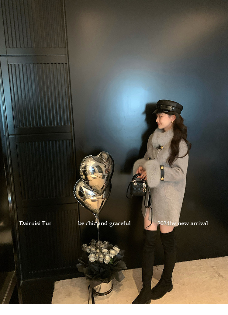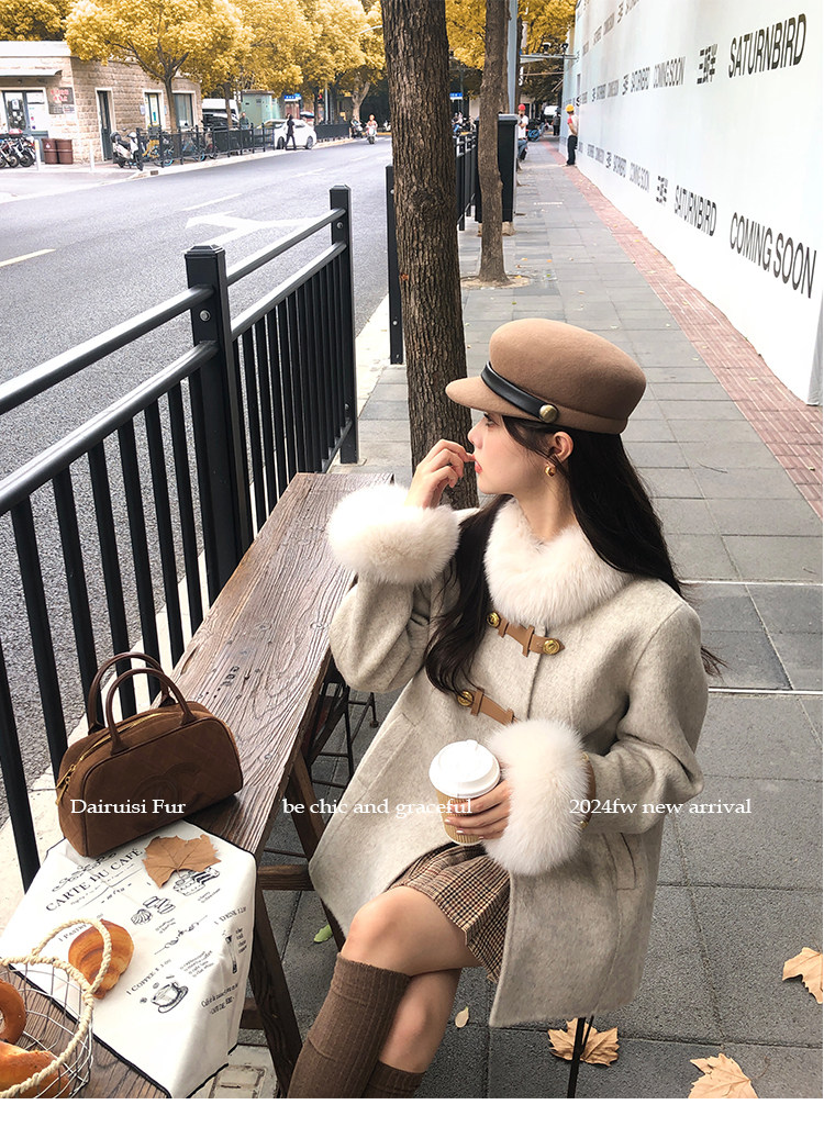 自帶奓貴甜美感的狐貍毛袖大衣 初見便是驚艷