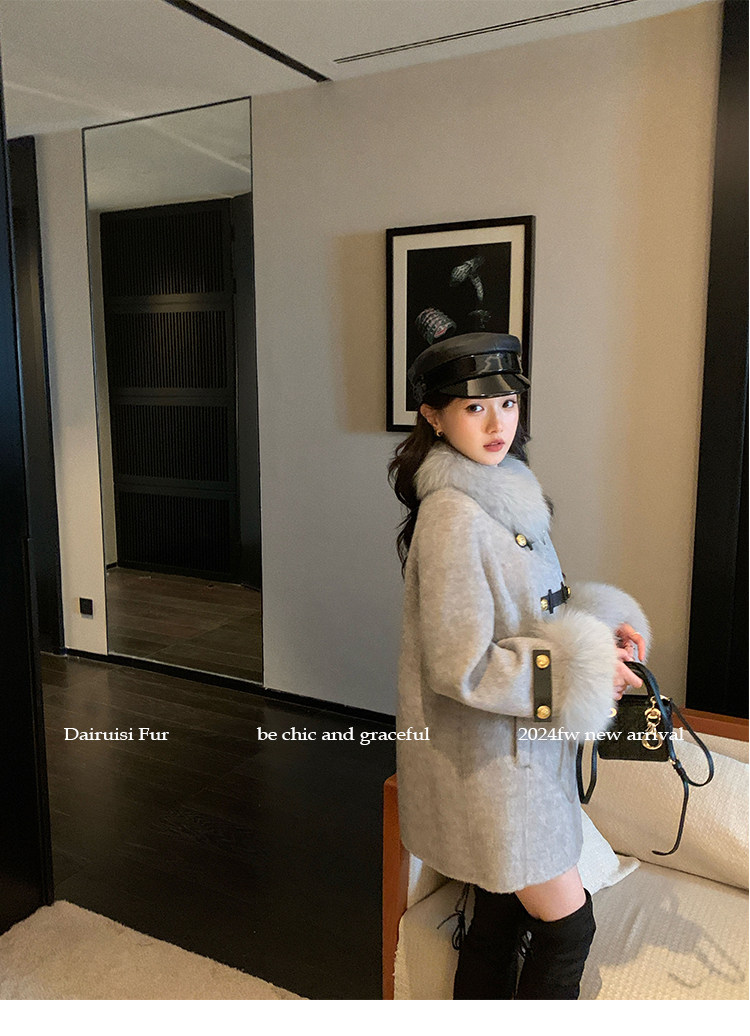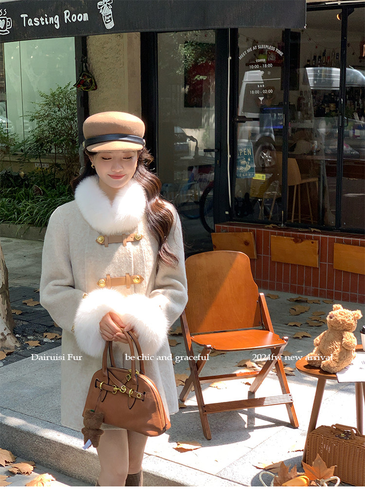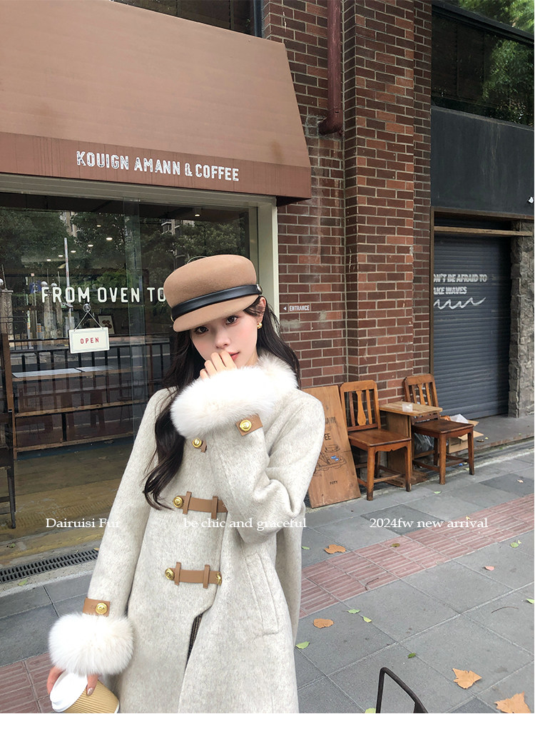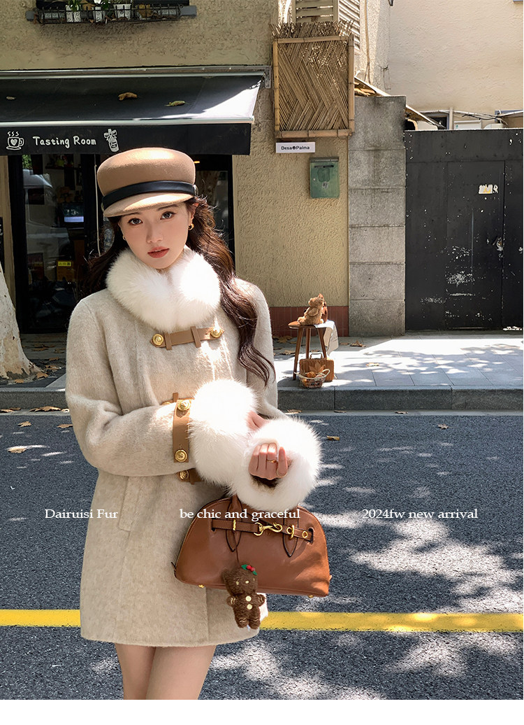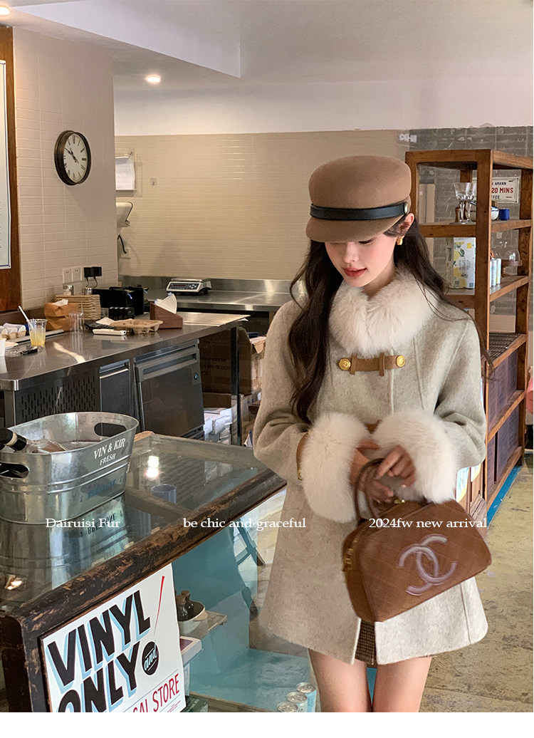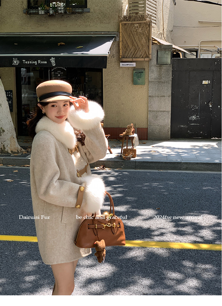 自帶奓貴甜美感的狐貍毛袖大衣 初見便是驚艷