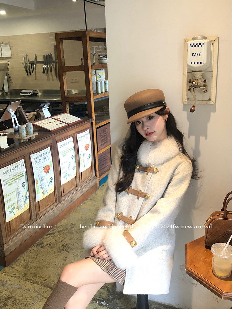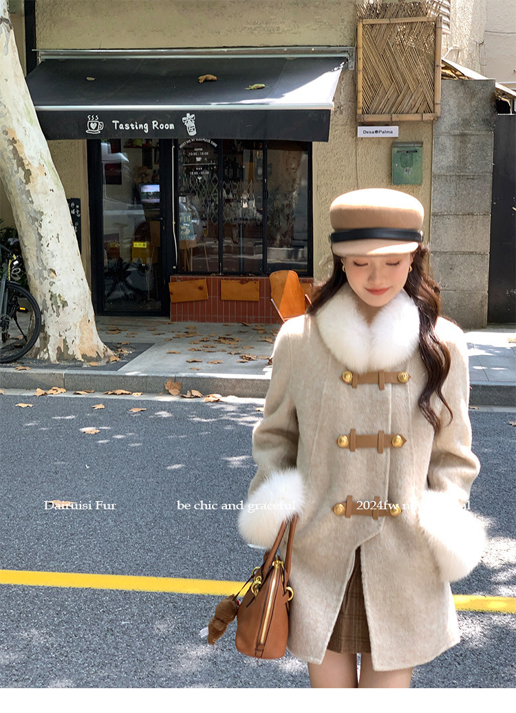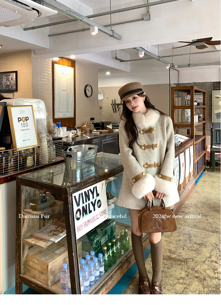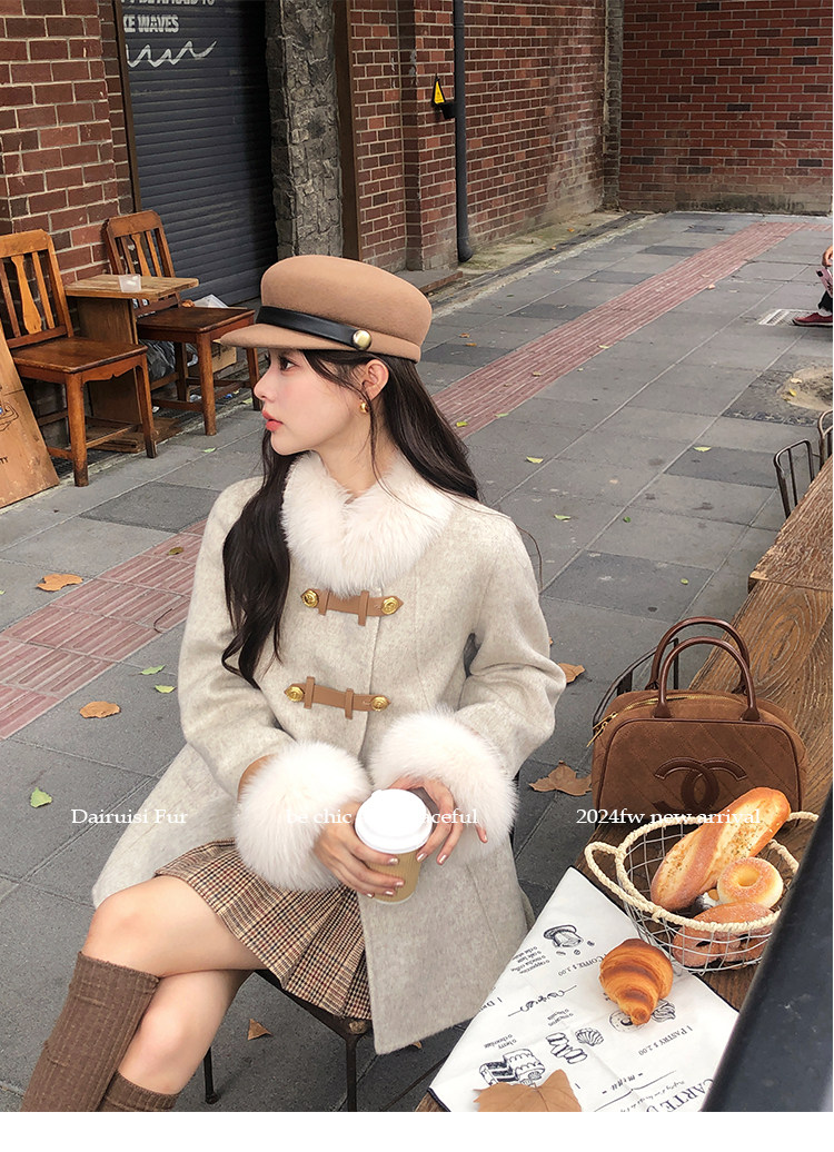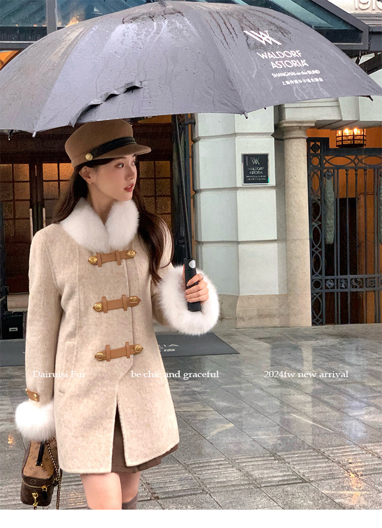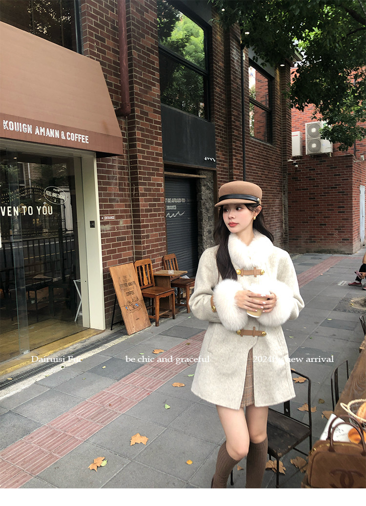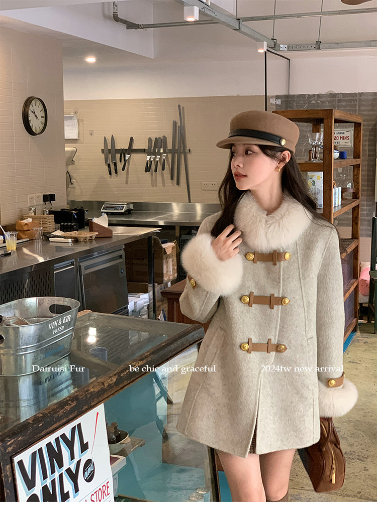 自帶奓貴甜美感的狐貍毛袖大衣 初見便是驚艷