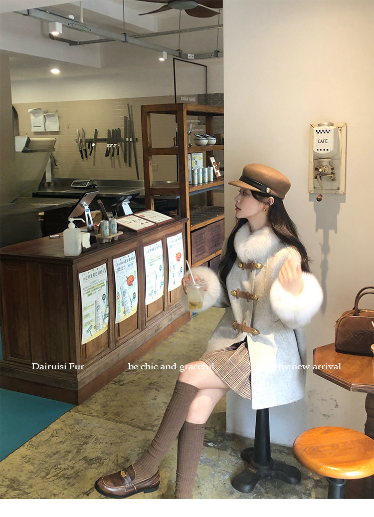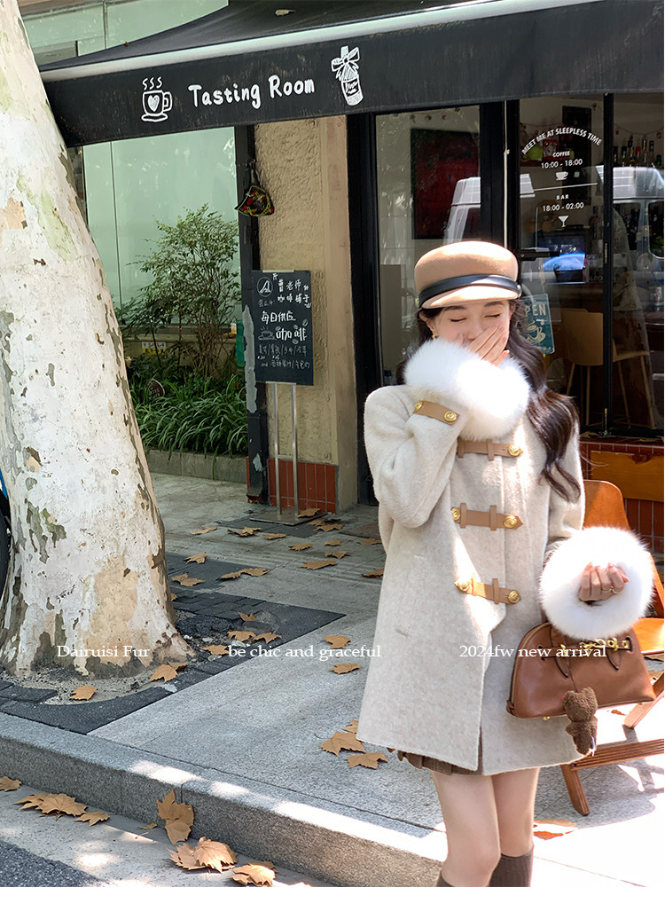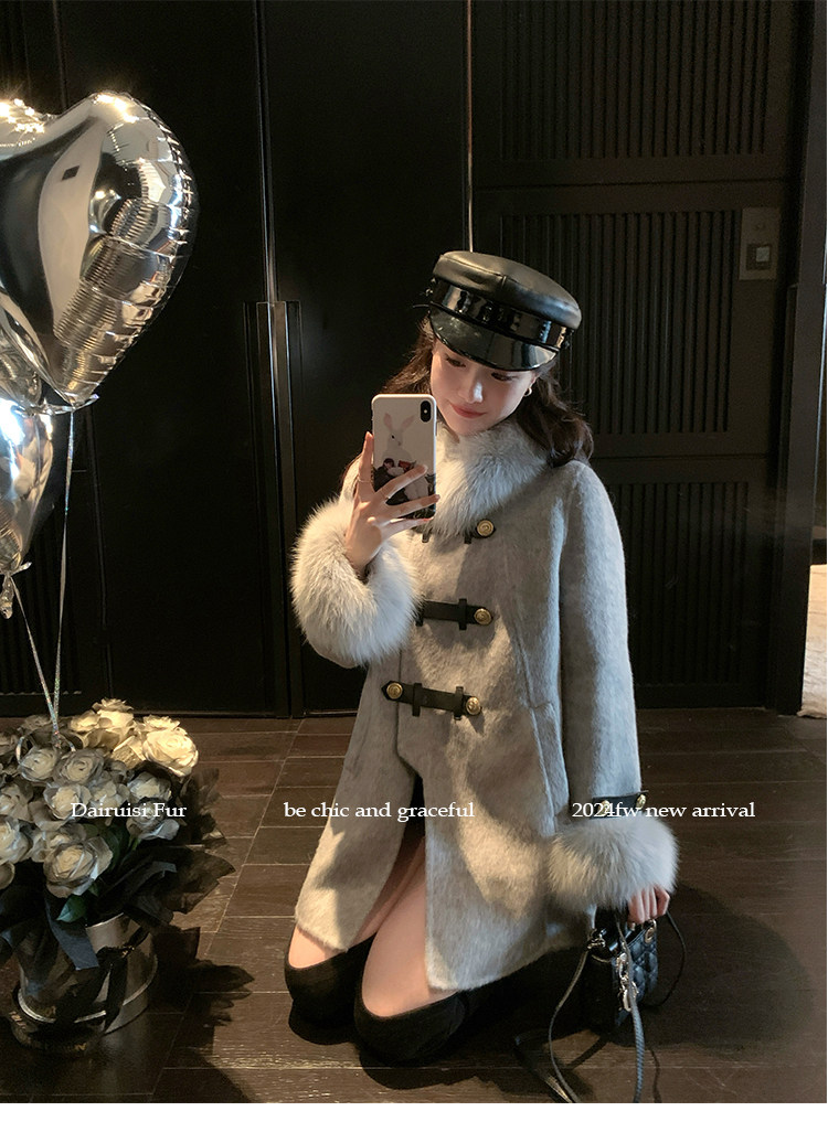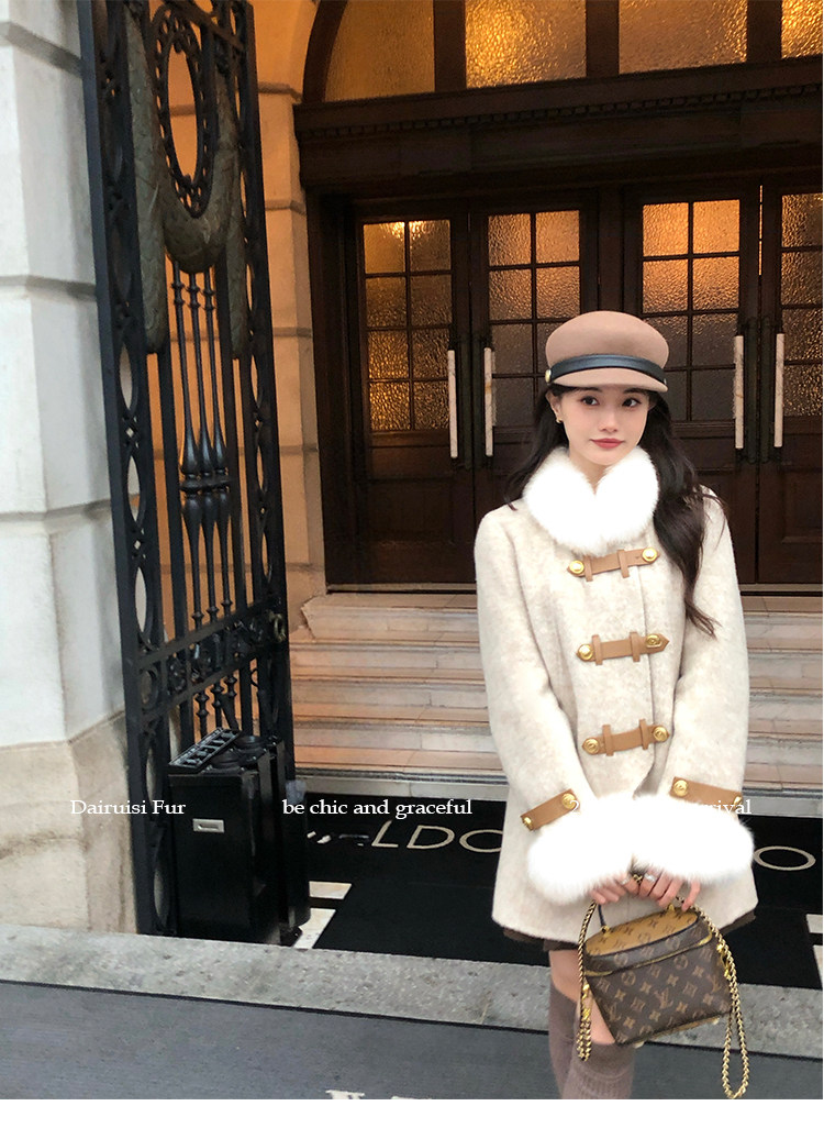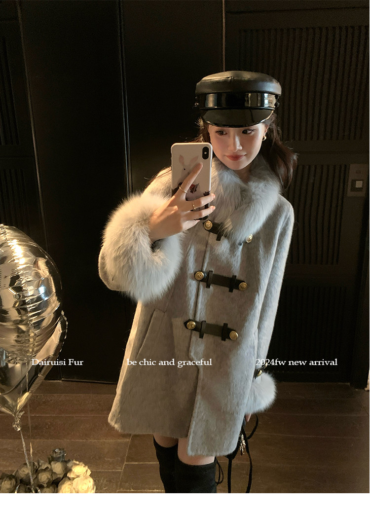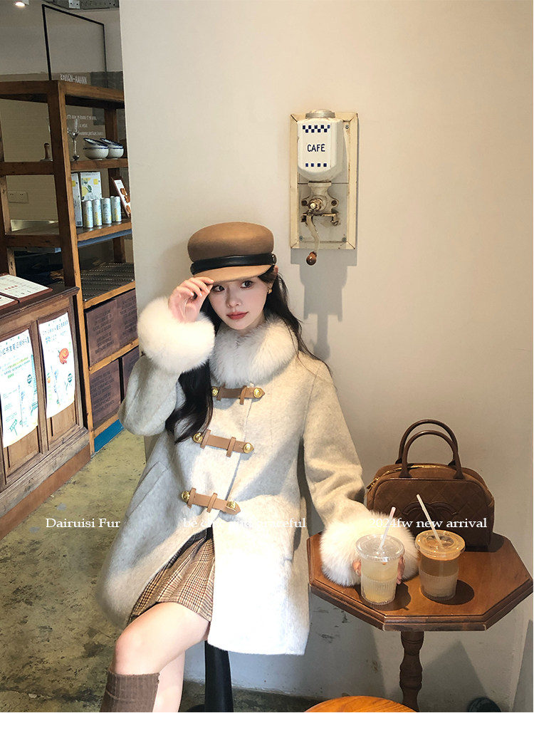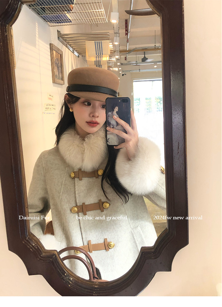 自帶奓貴甜美感的狐貍毛袖大衣 初見便是驚艷