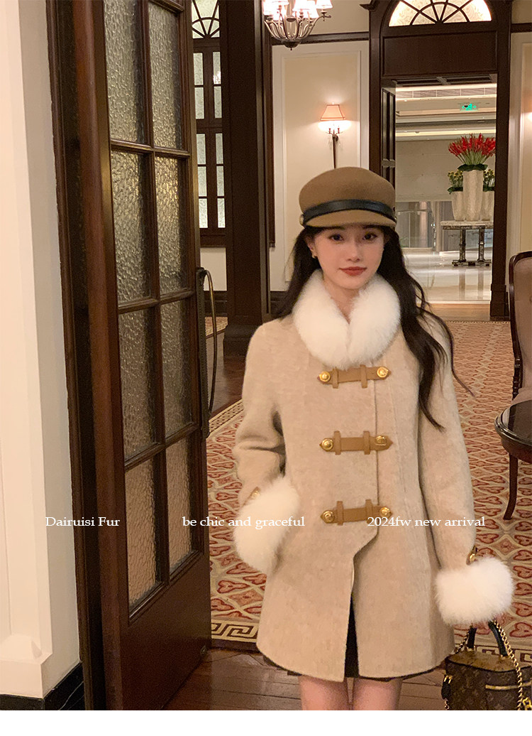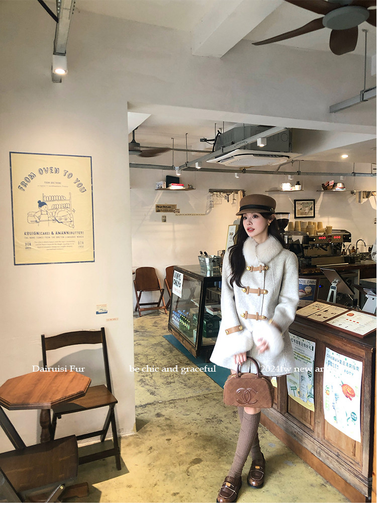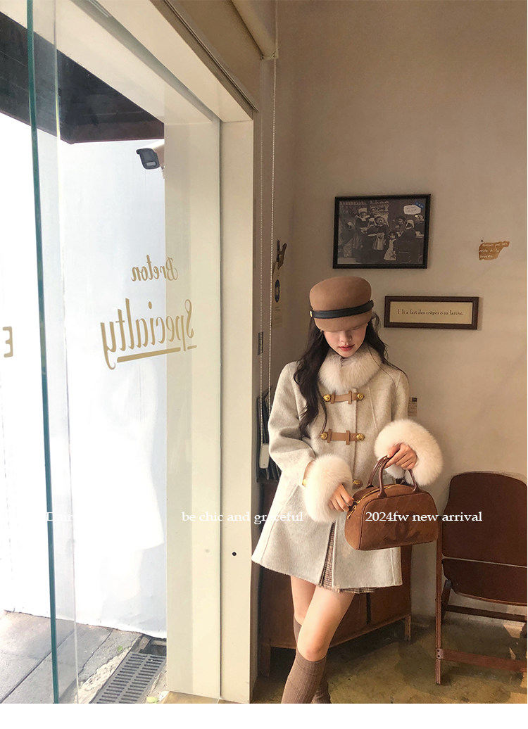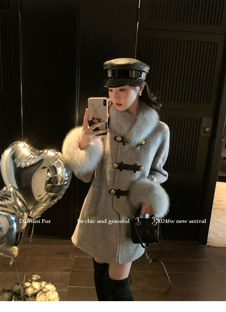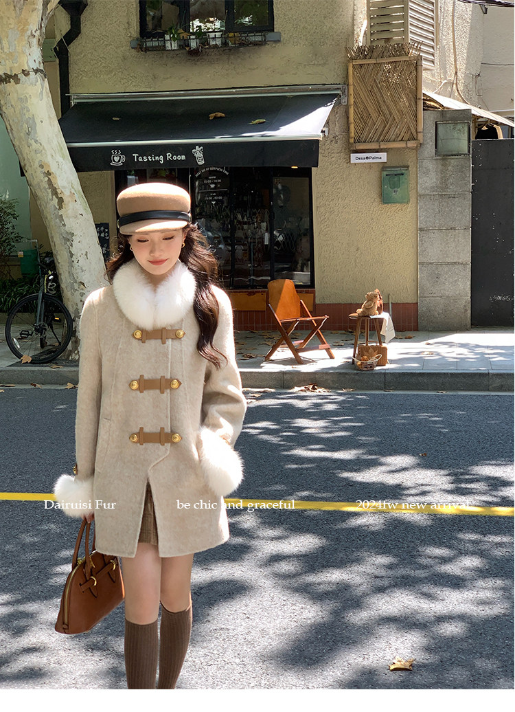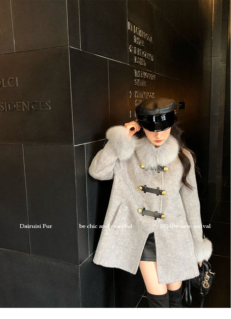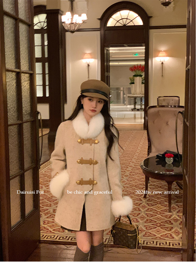 自帶奓貴甜美感的狐貍毛袖大衣 初見便是驚艷