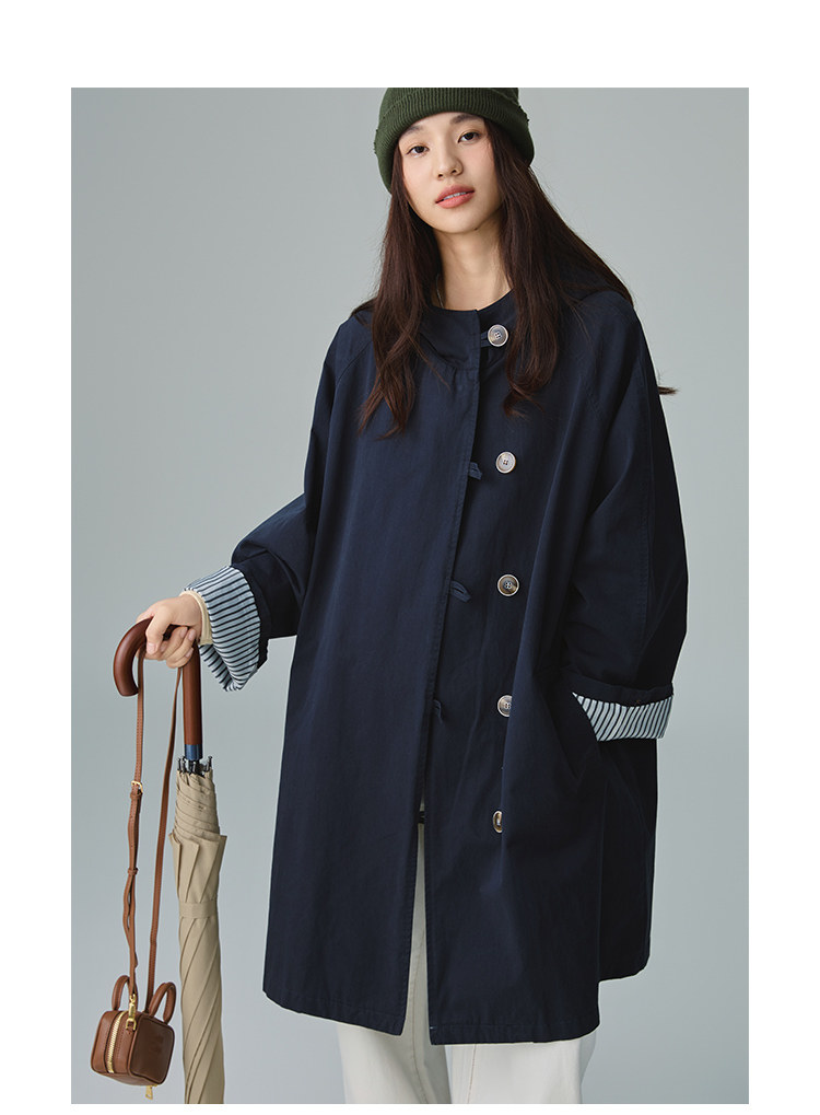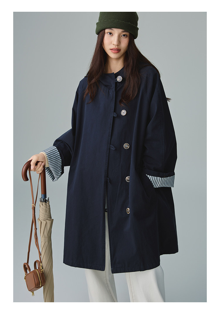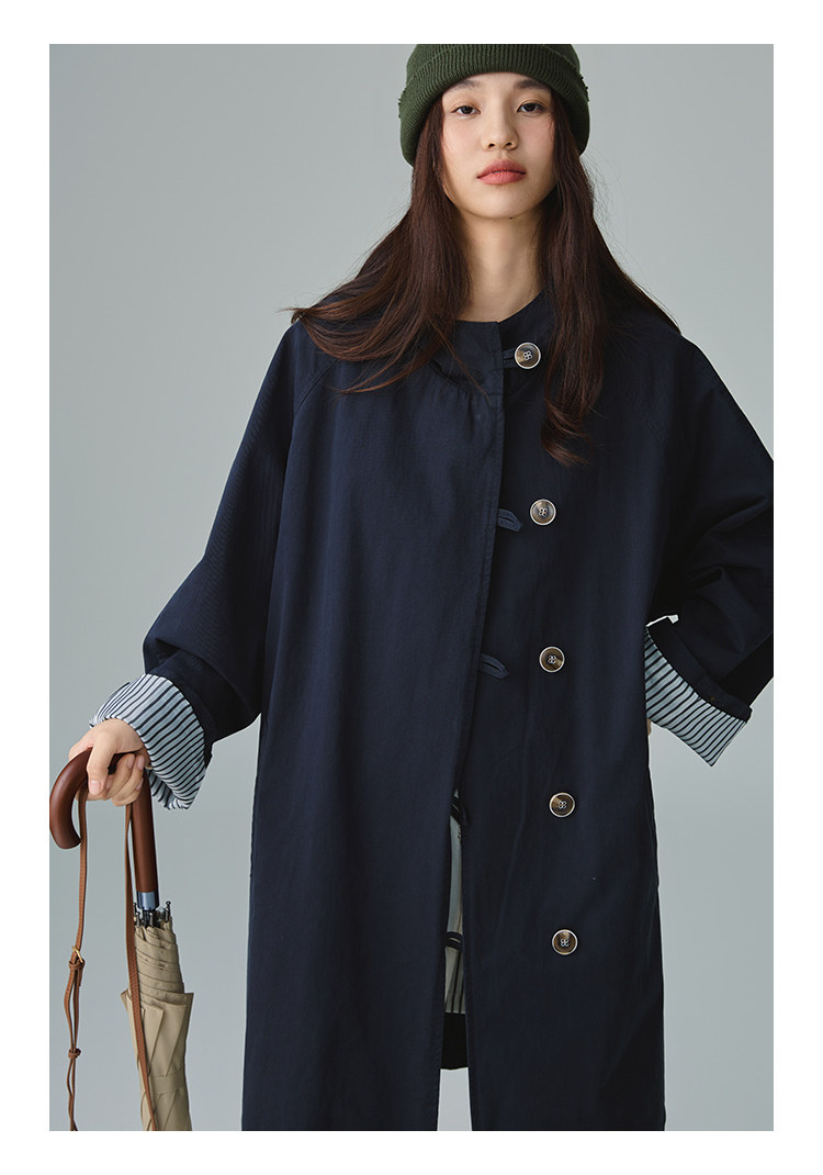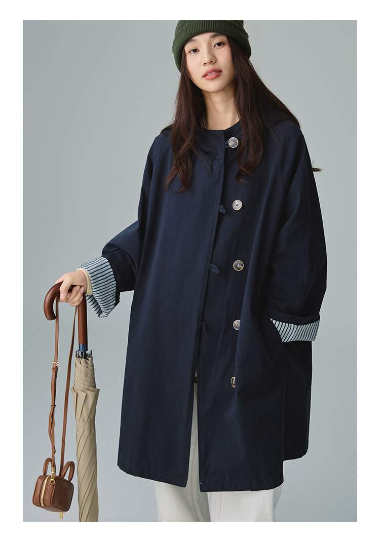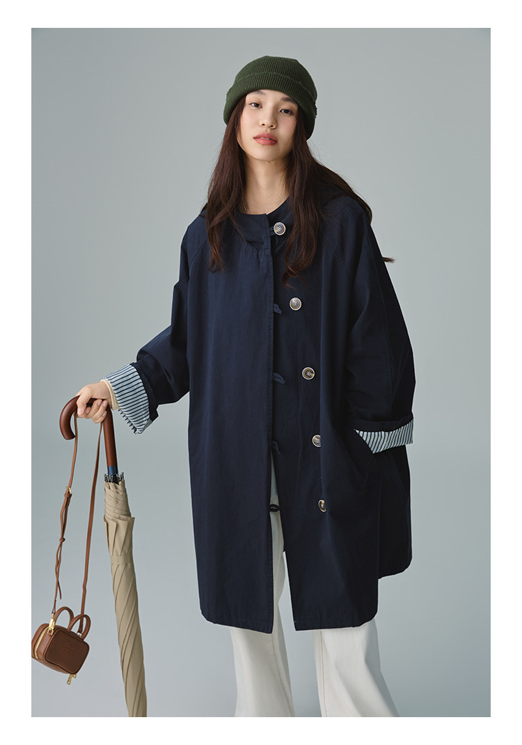 門襟設計很別致,中部同色系紐扣開合實用耐看