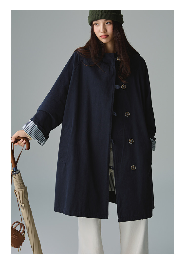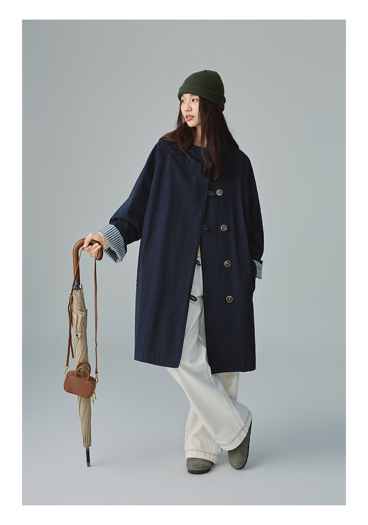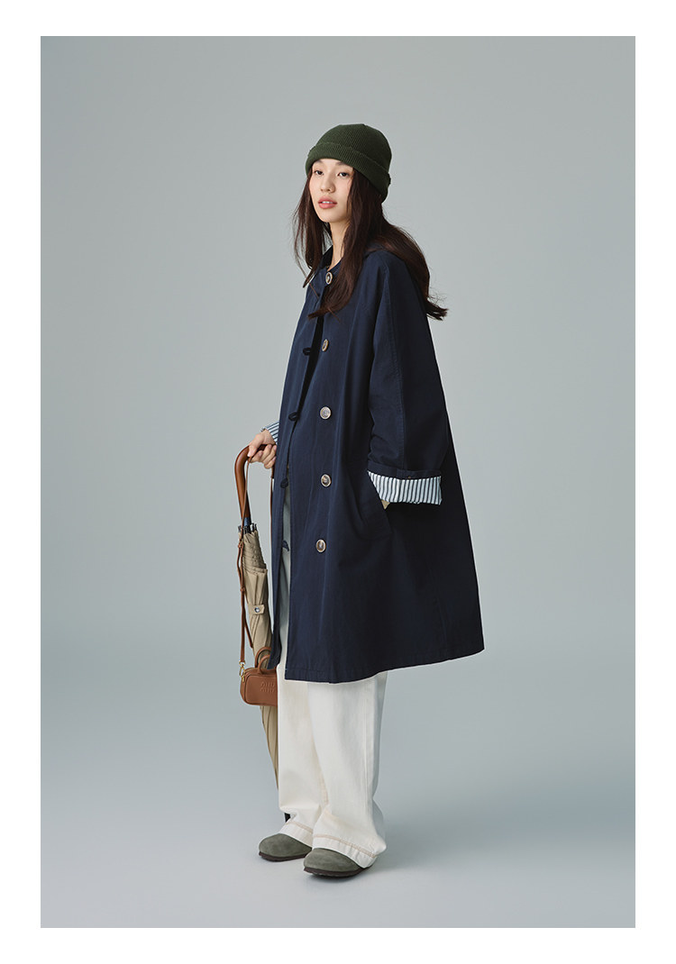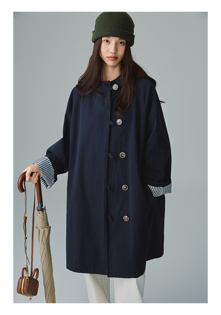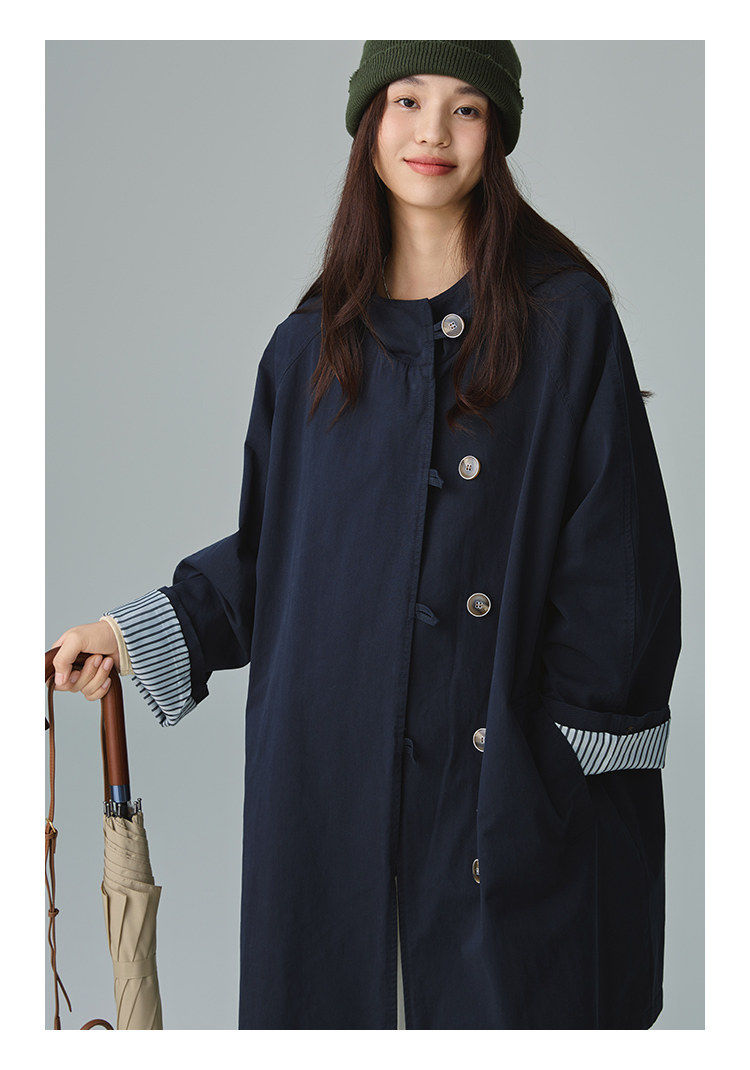門襟設計很別致,中部同色系紐扣開合實用耐看