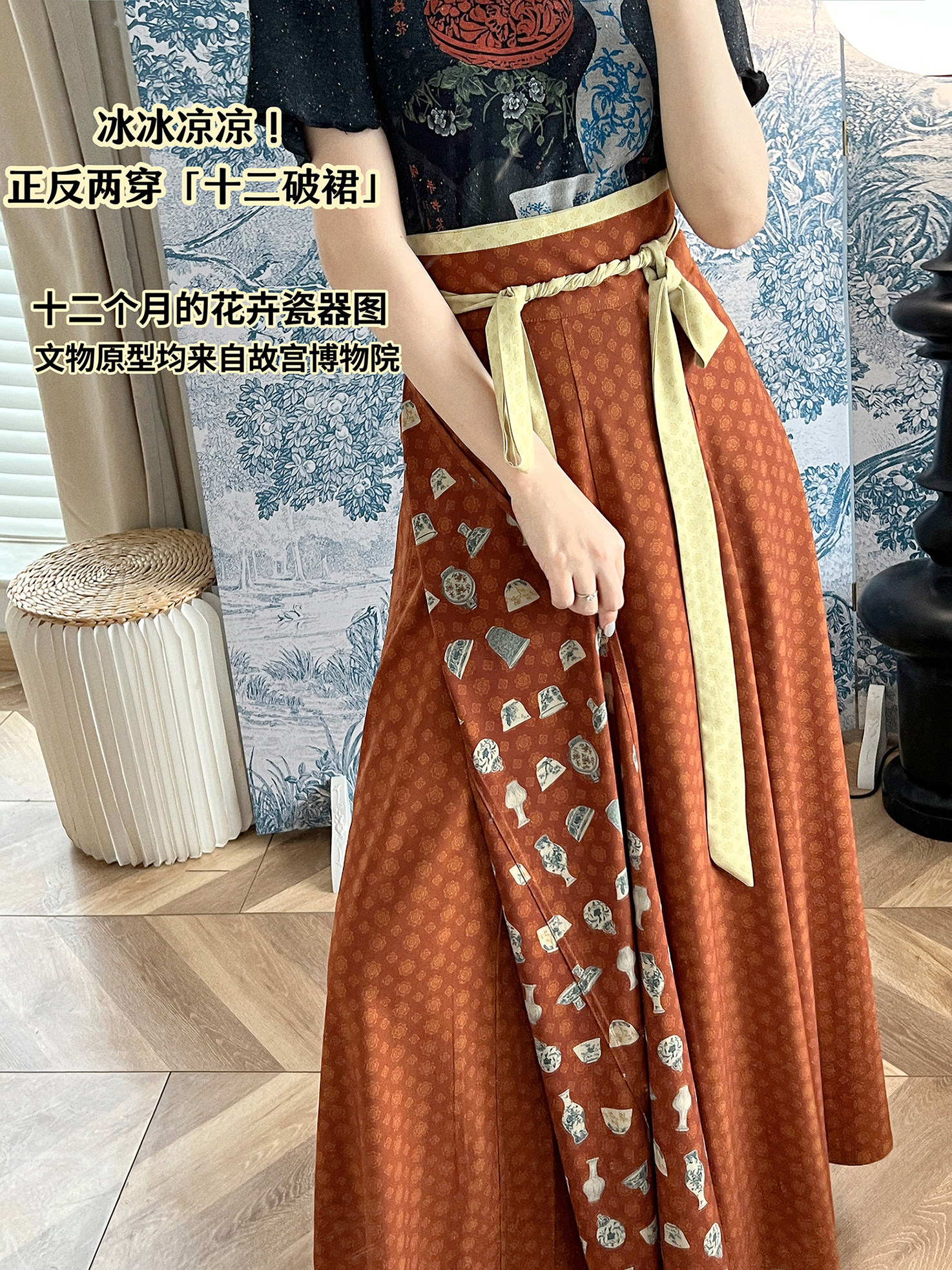 一面是參考故宮文物手繪的瓷器,十二個月的花囊括其中