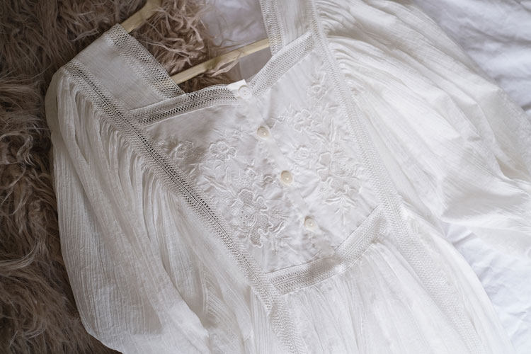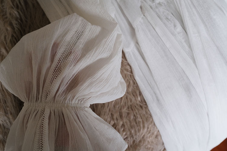 整件睡裙肩部+胸前位置做細致打攬細褶