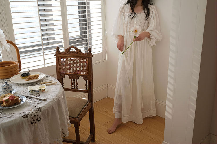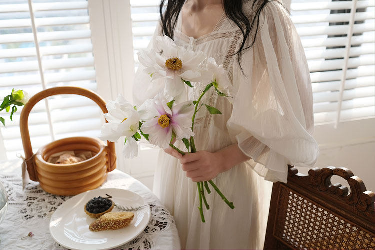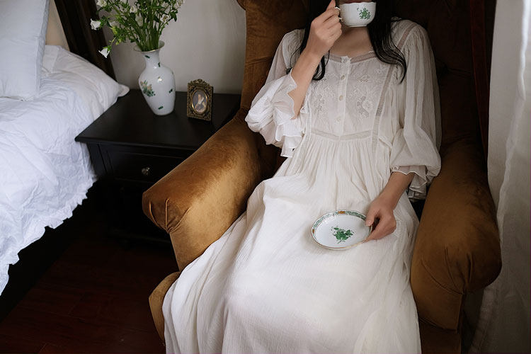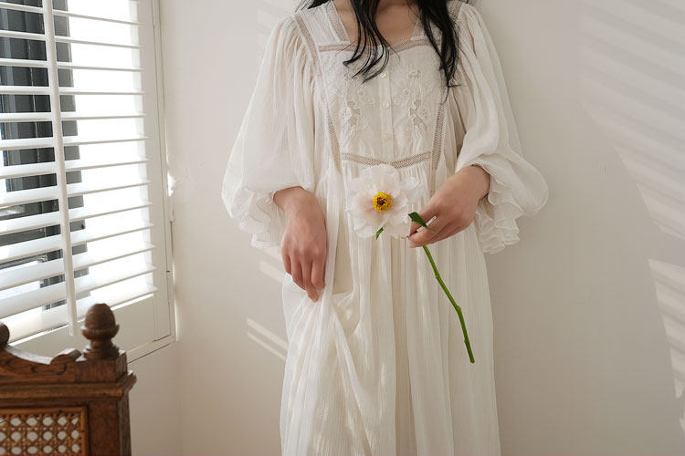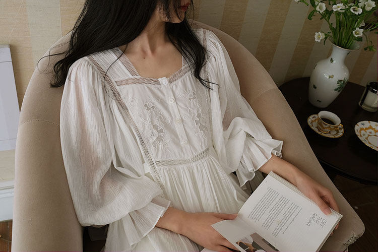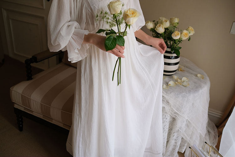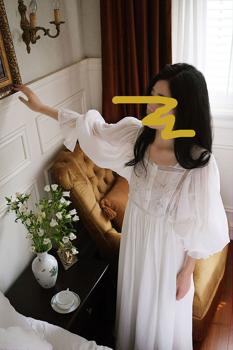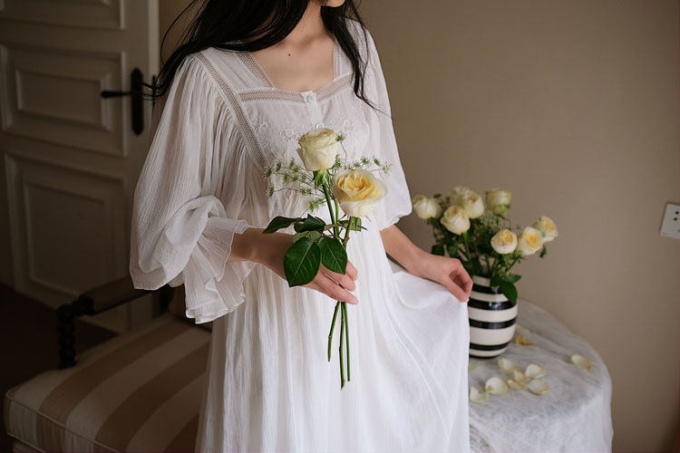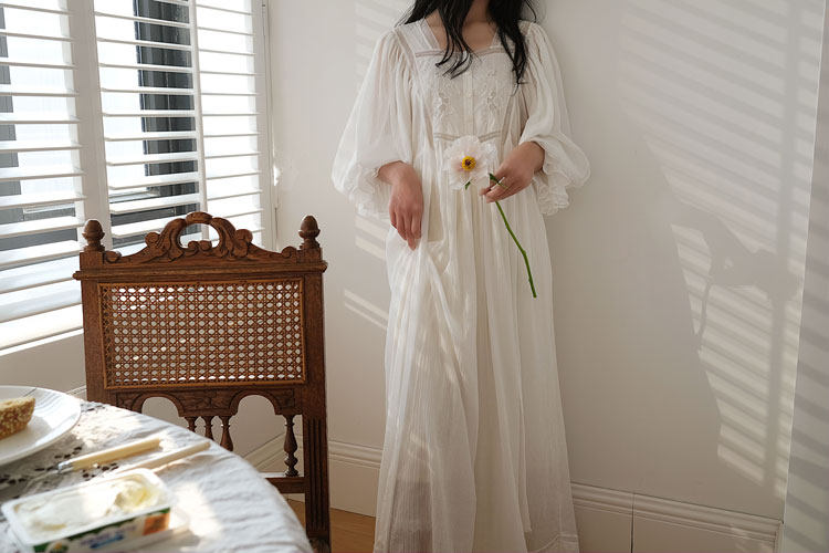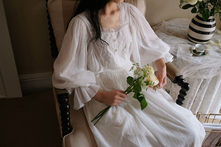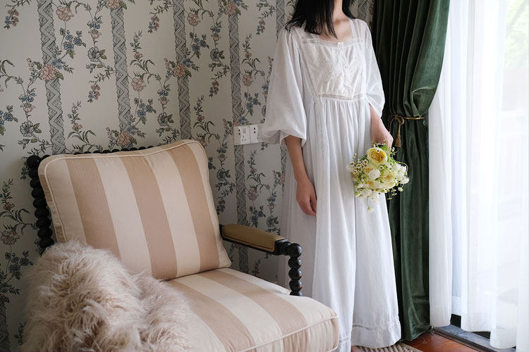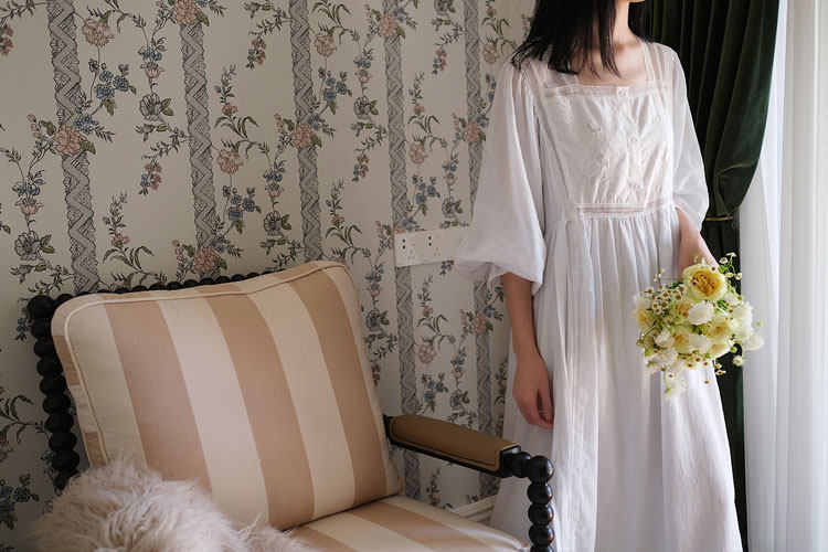 整件睡裙飄逸不拘謹,帶點小甜美的法式優雅