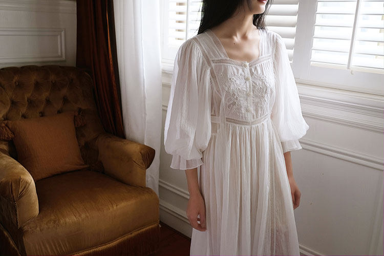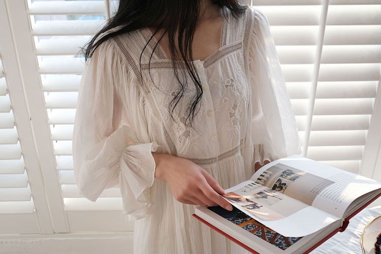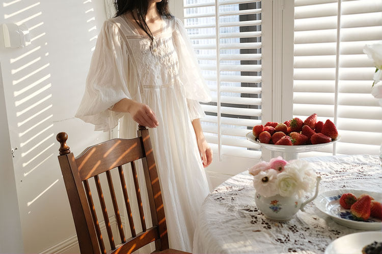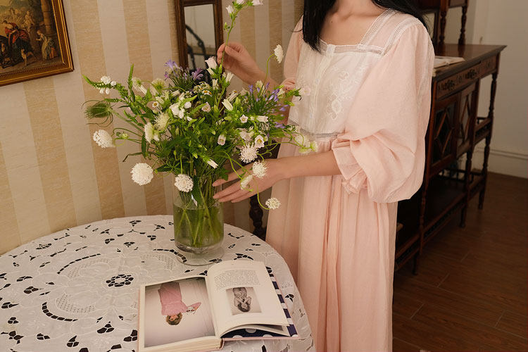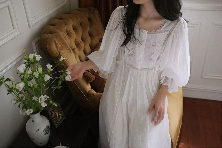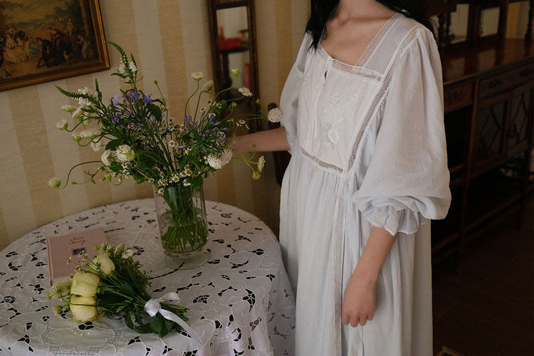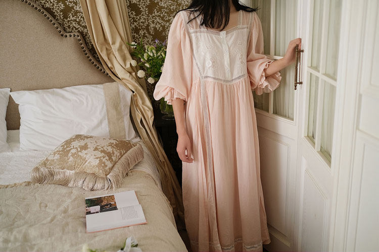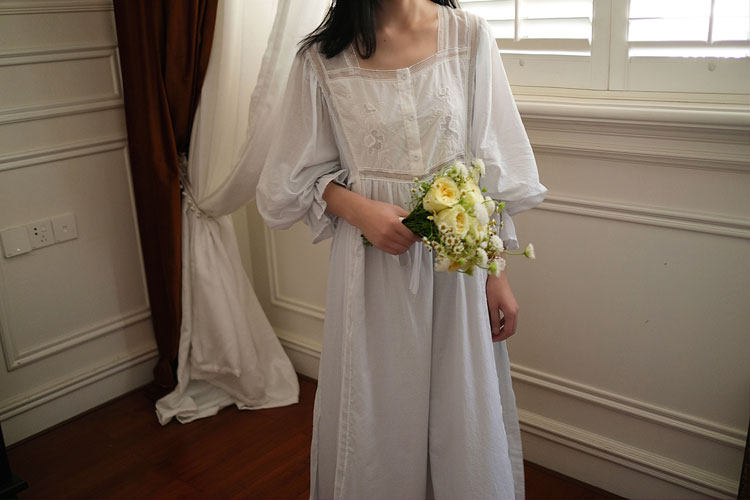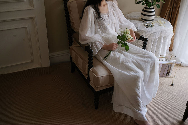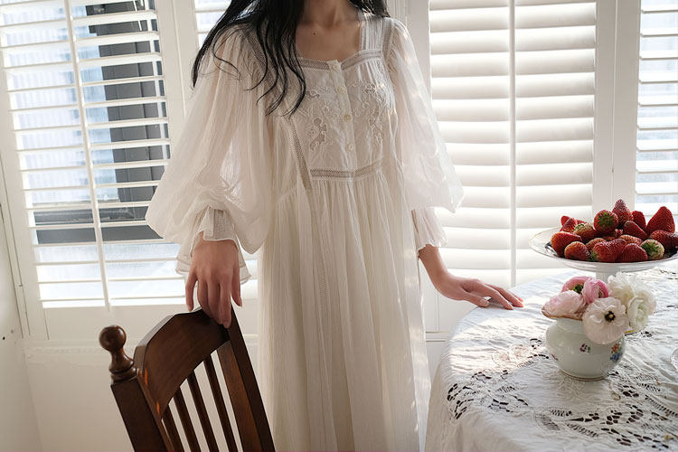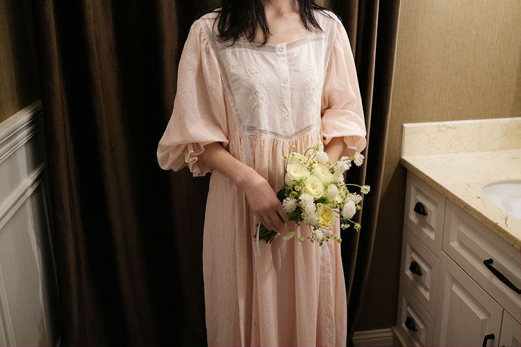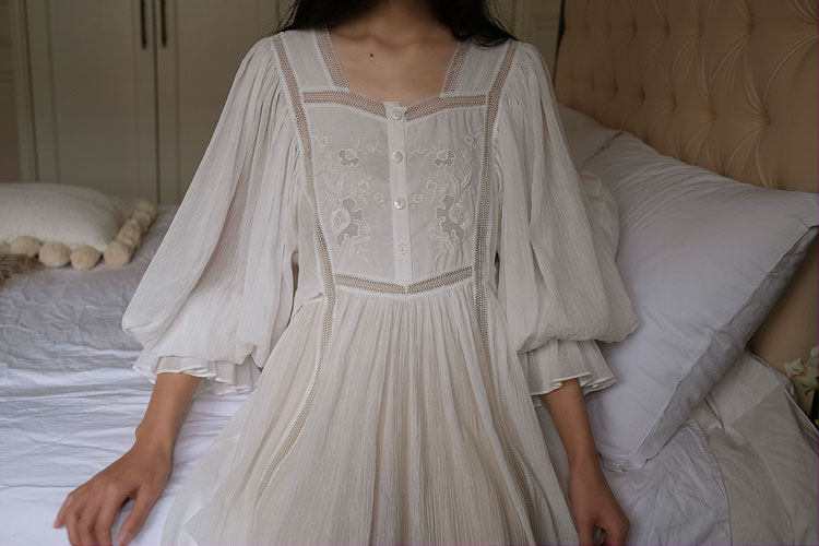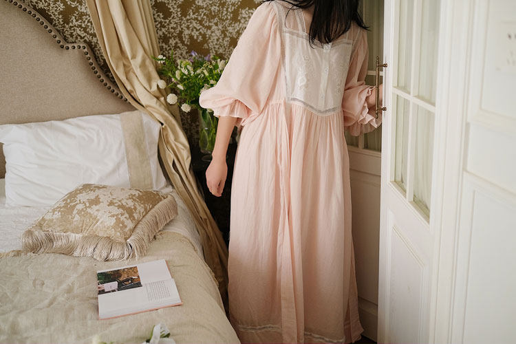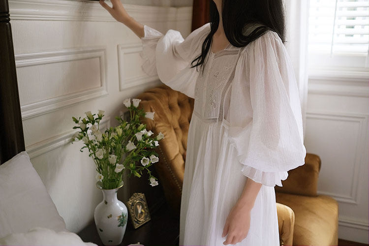 整件睡裙飄逸不拘謹,帶點小甜美的法式優雅
