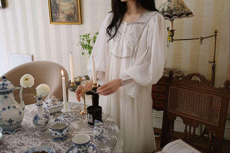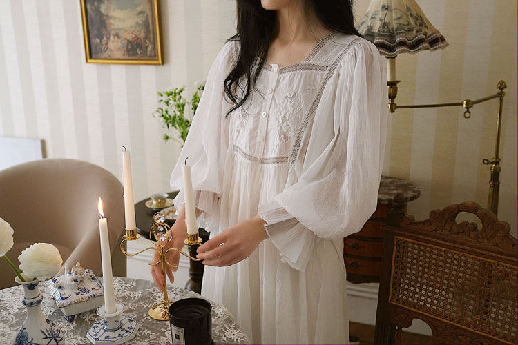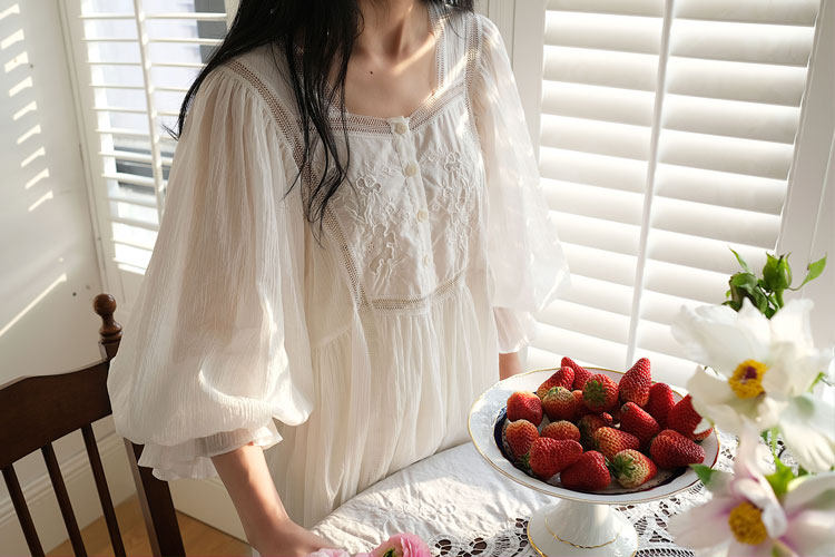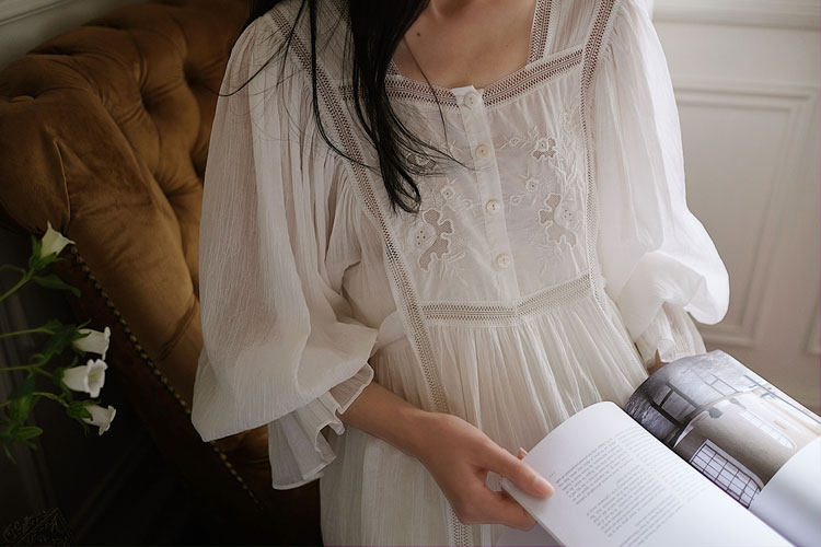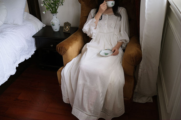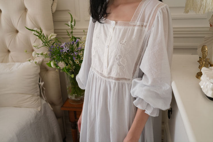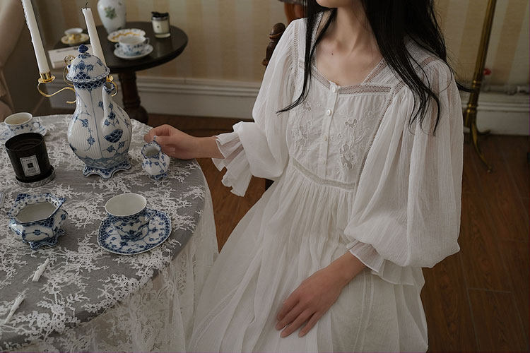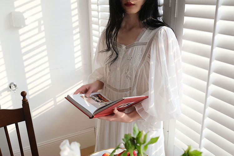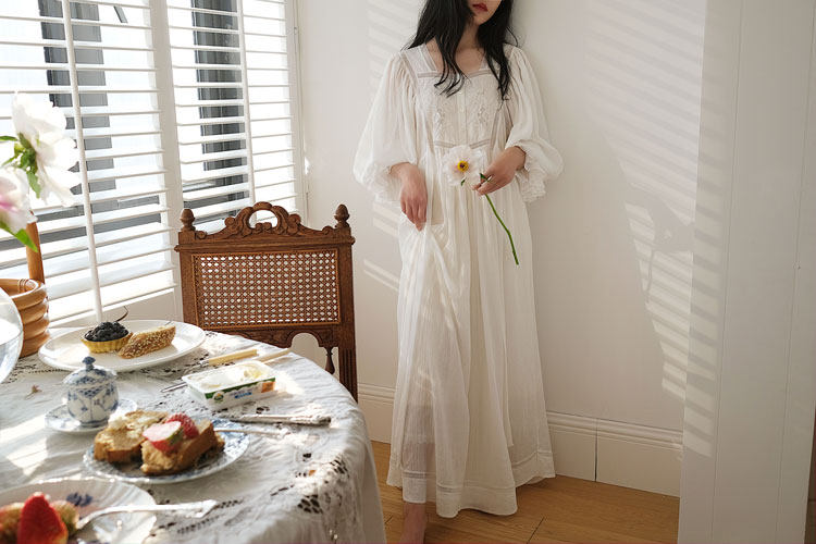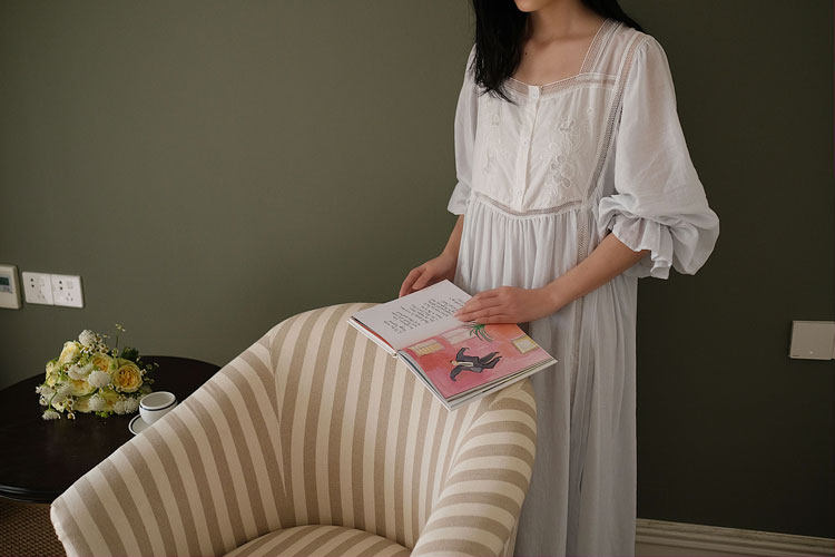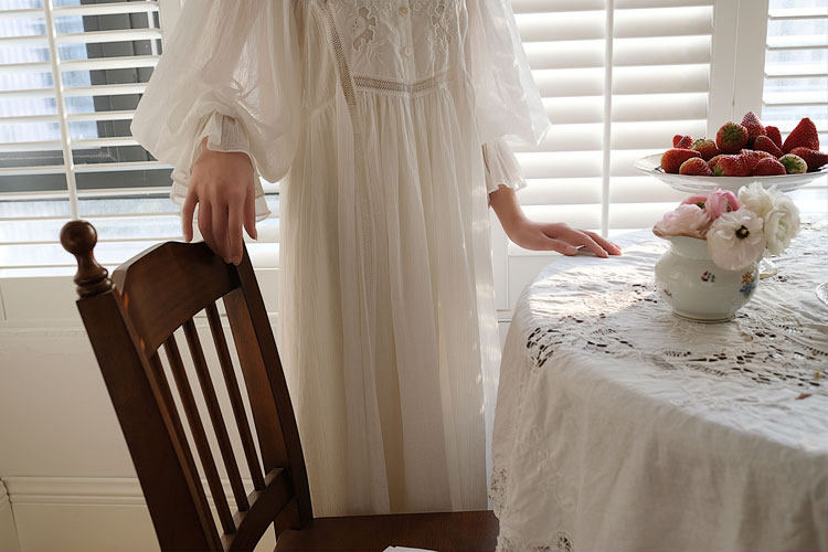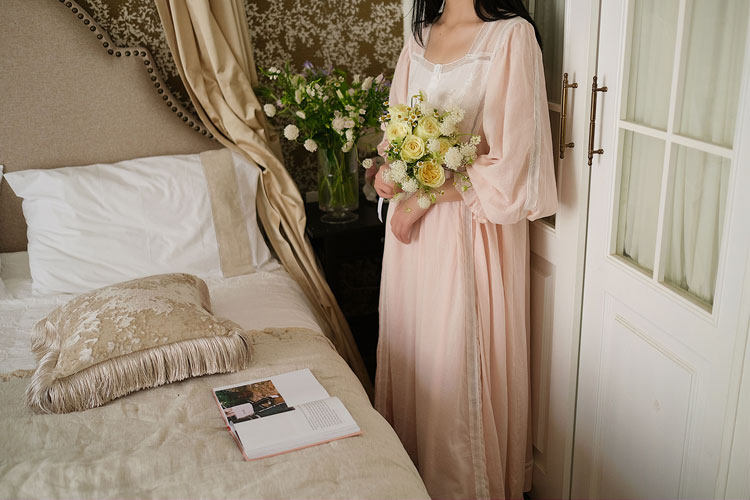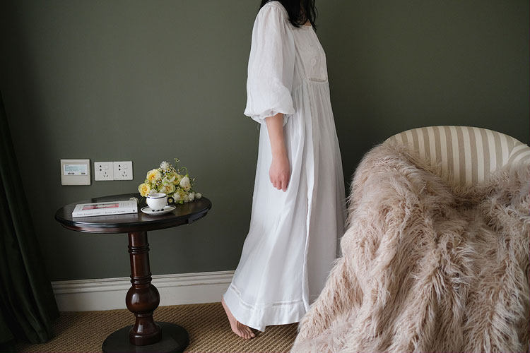 整件睡裙飄逸不拘謹,帶點小甜美的法式優雅