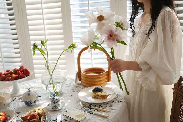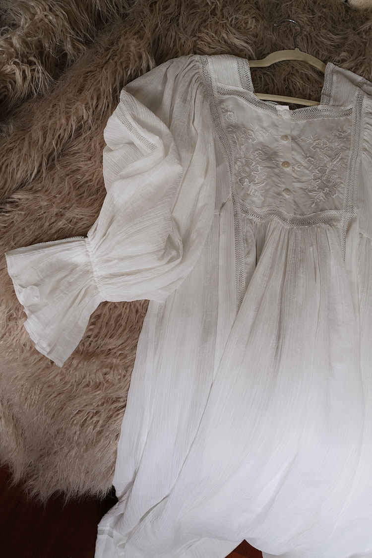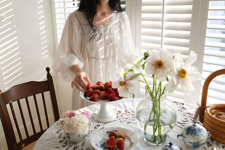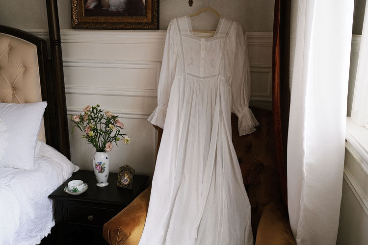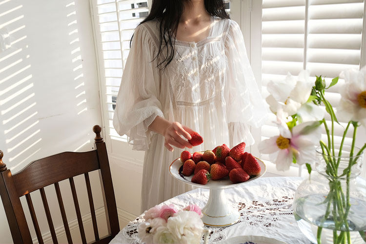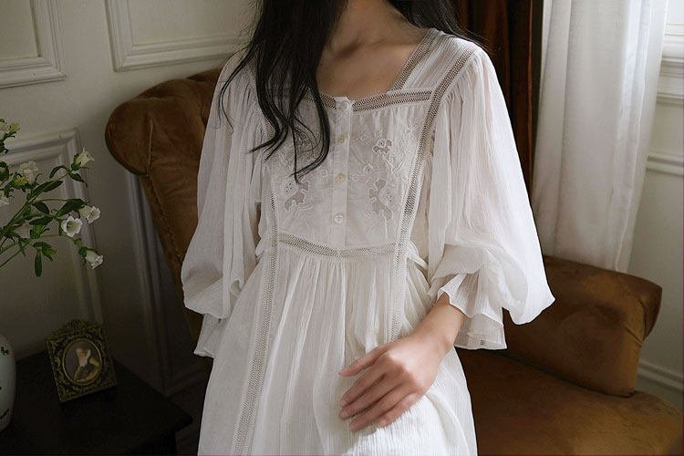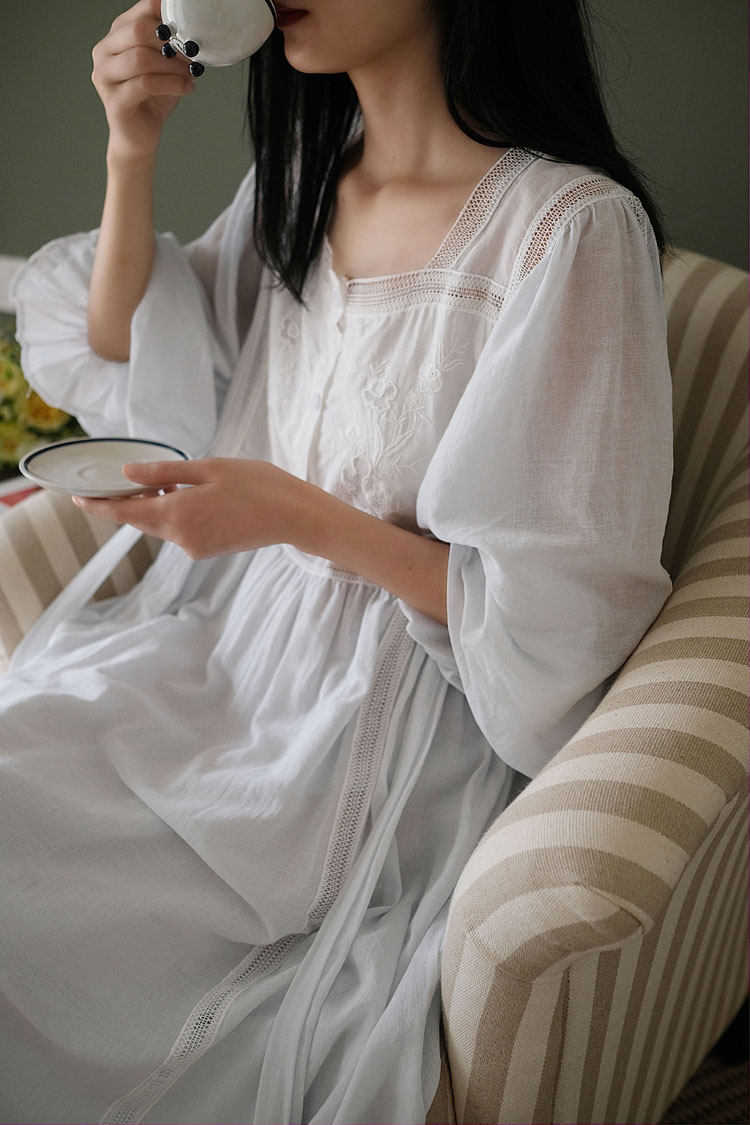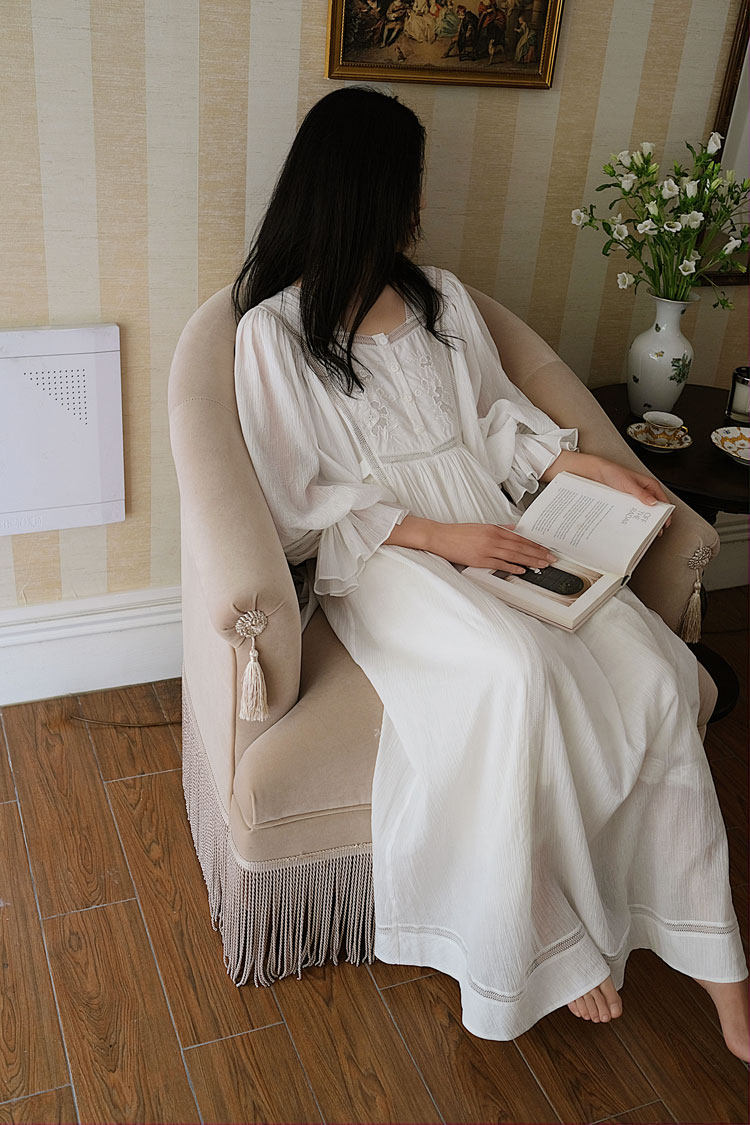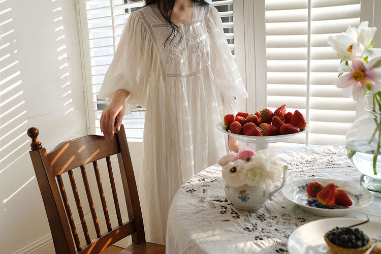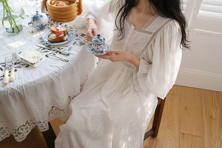 整件睡裙飄逸不拘謹,帶點小甜美的法式優雅