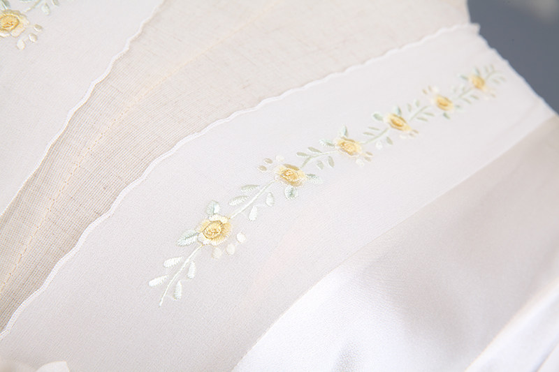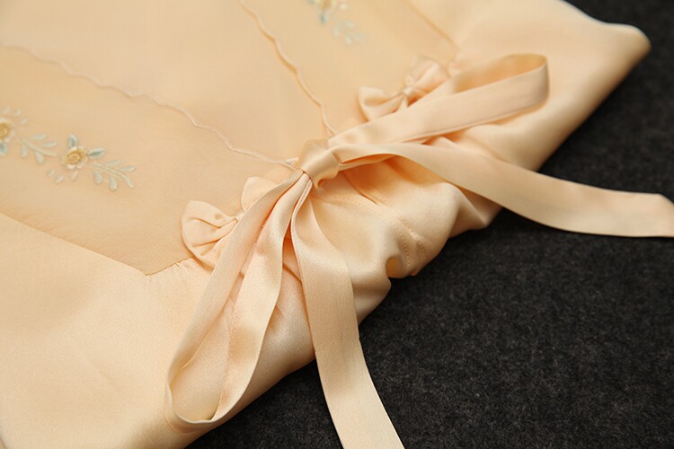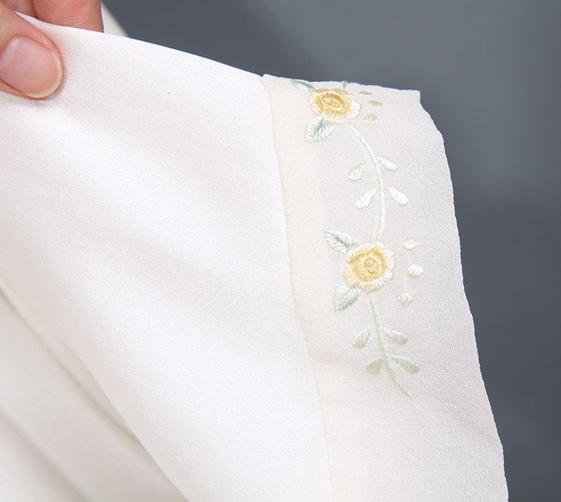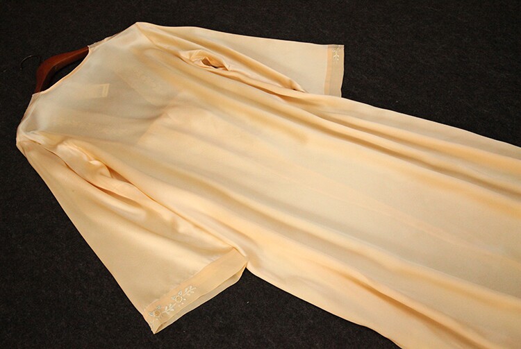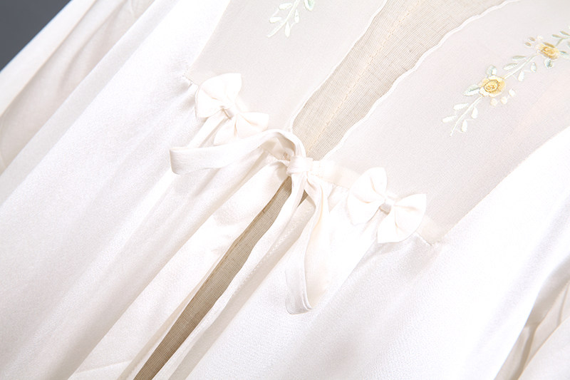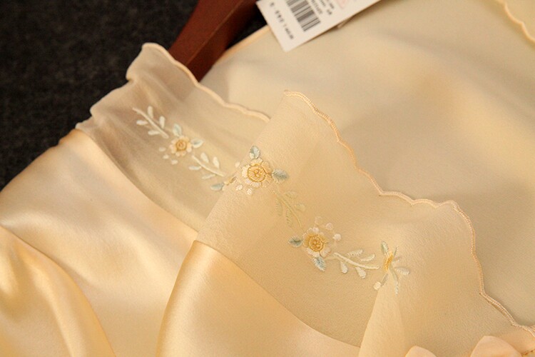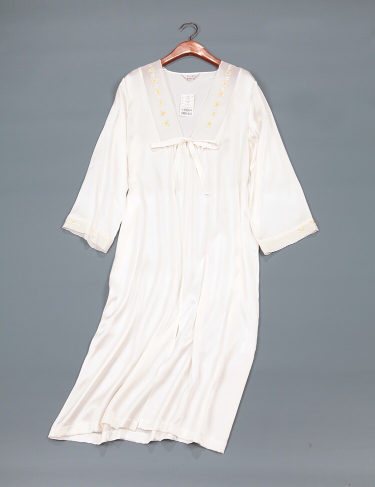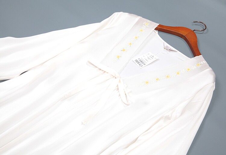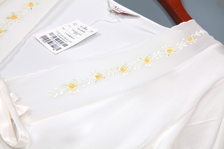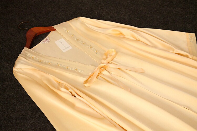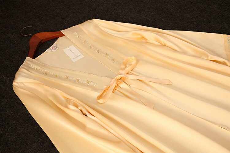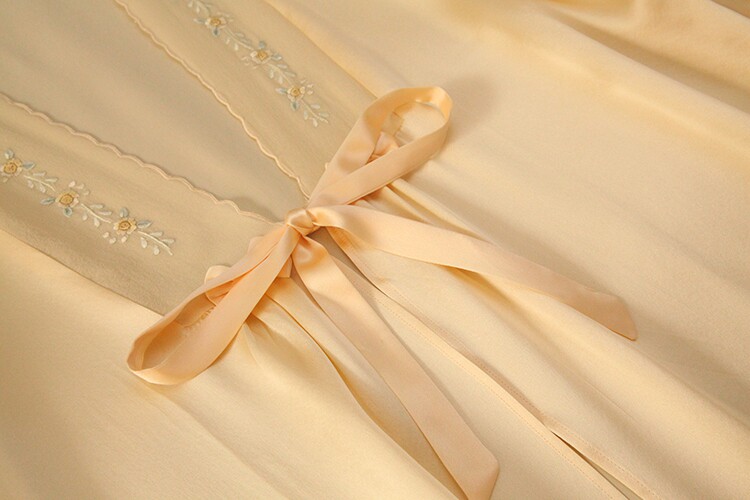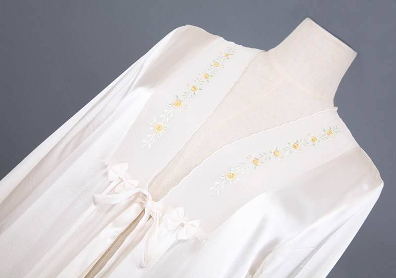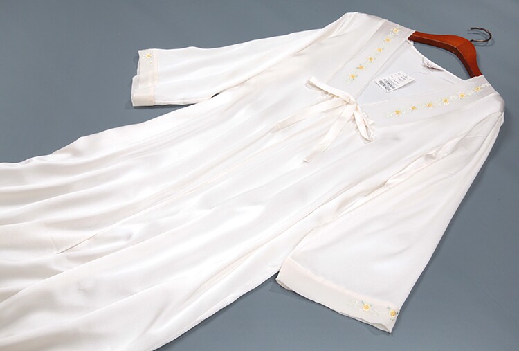 此款睡袍每一件領口,袖口是純手工繡花的,