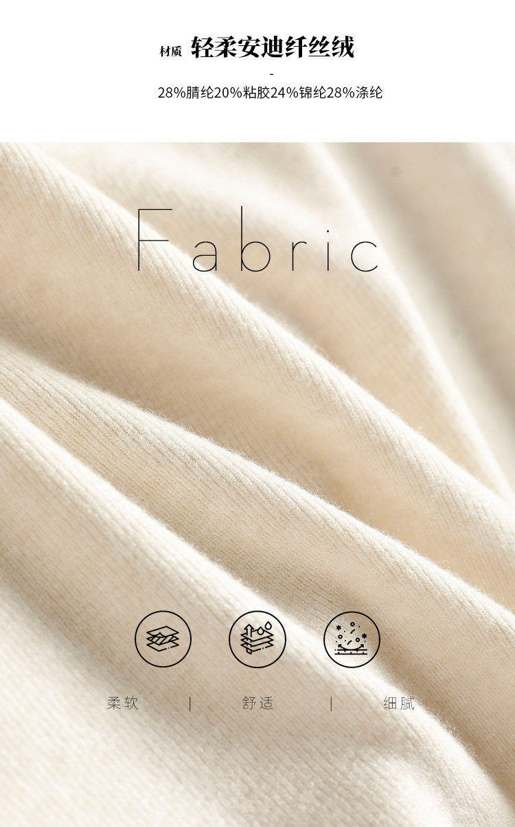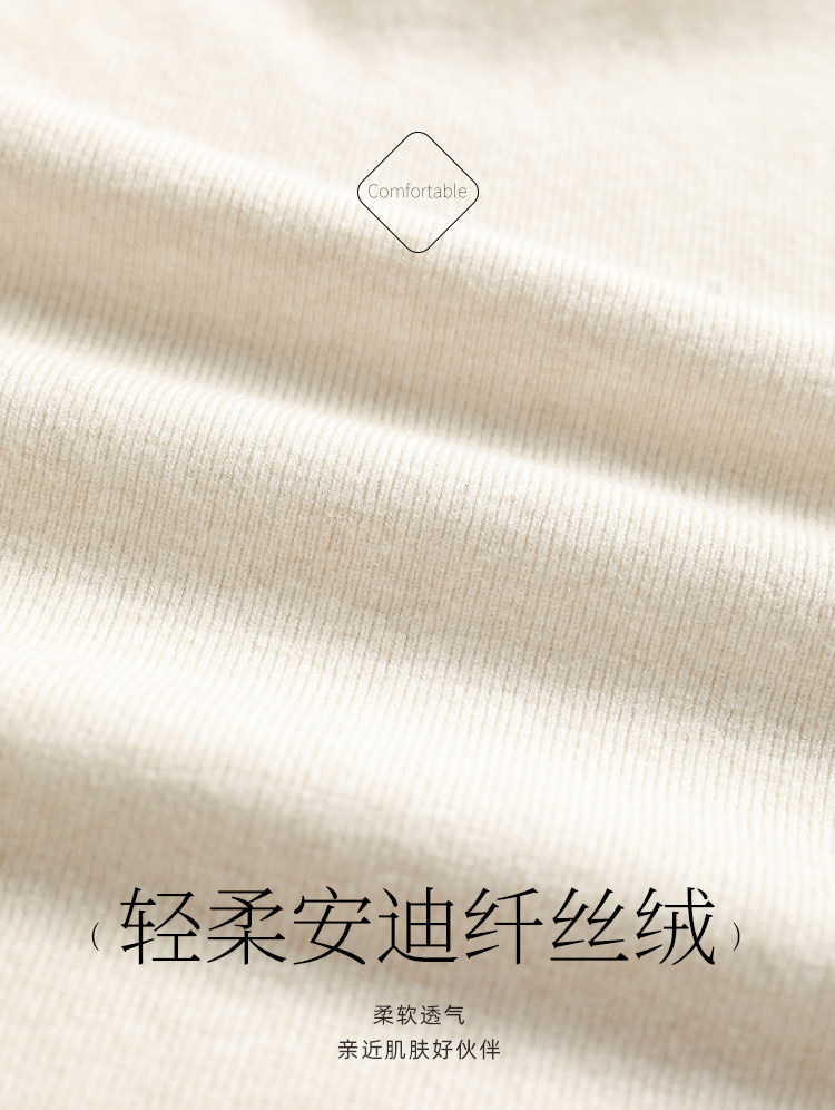 輕柔安迪絲絨面料的觸感總是溫柔細膩的 自帶優越的吸濕性和透氣性 貼身穿也不影響其出眾的舒適 面料表面經過磨毛處理 ,更細膩柔軟 本身的厚度適中,看起來也挺括大方 即使是放大到細微的狀態 仍然能感受到優越的品質感 打理起來方便輕松 各個方面都致力于給予你愜意的體驗 | |||||||||||||||