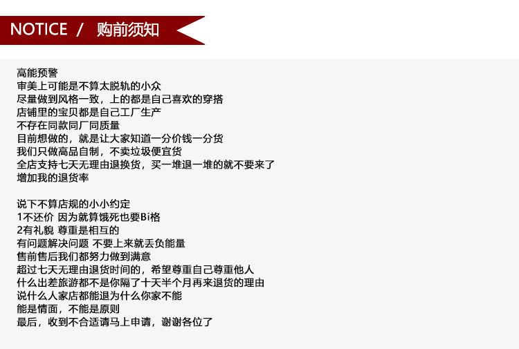 1. 本人了解並接受海外代購的特殊性,並確認不會因規則中所列條款(包括但不限於:商品不可取消、折價券使用規則、不可控因素導致訂單取消等)而要求商家賠償或補償。