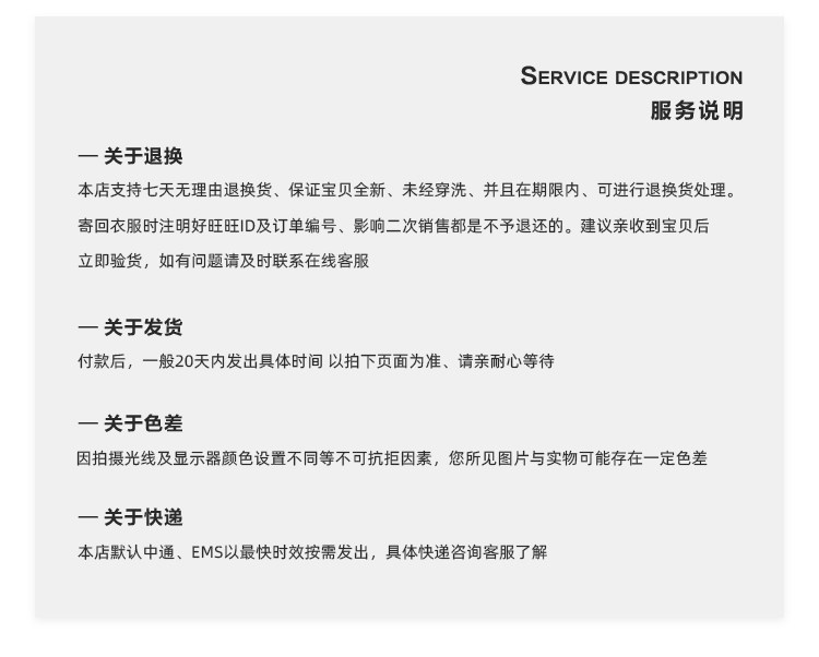1. 本人了解並接受海外代購的特殊性,並確認不會因規則中所列條款(包括但不限於:商品不可取消、折價券使用規則、不可控因素導致訂單取消等)而要求商家賠償或補償。