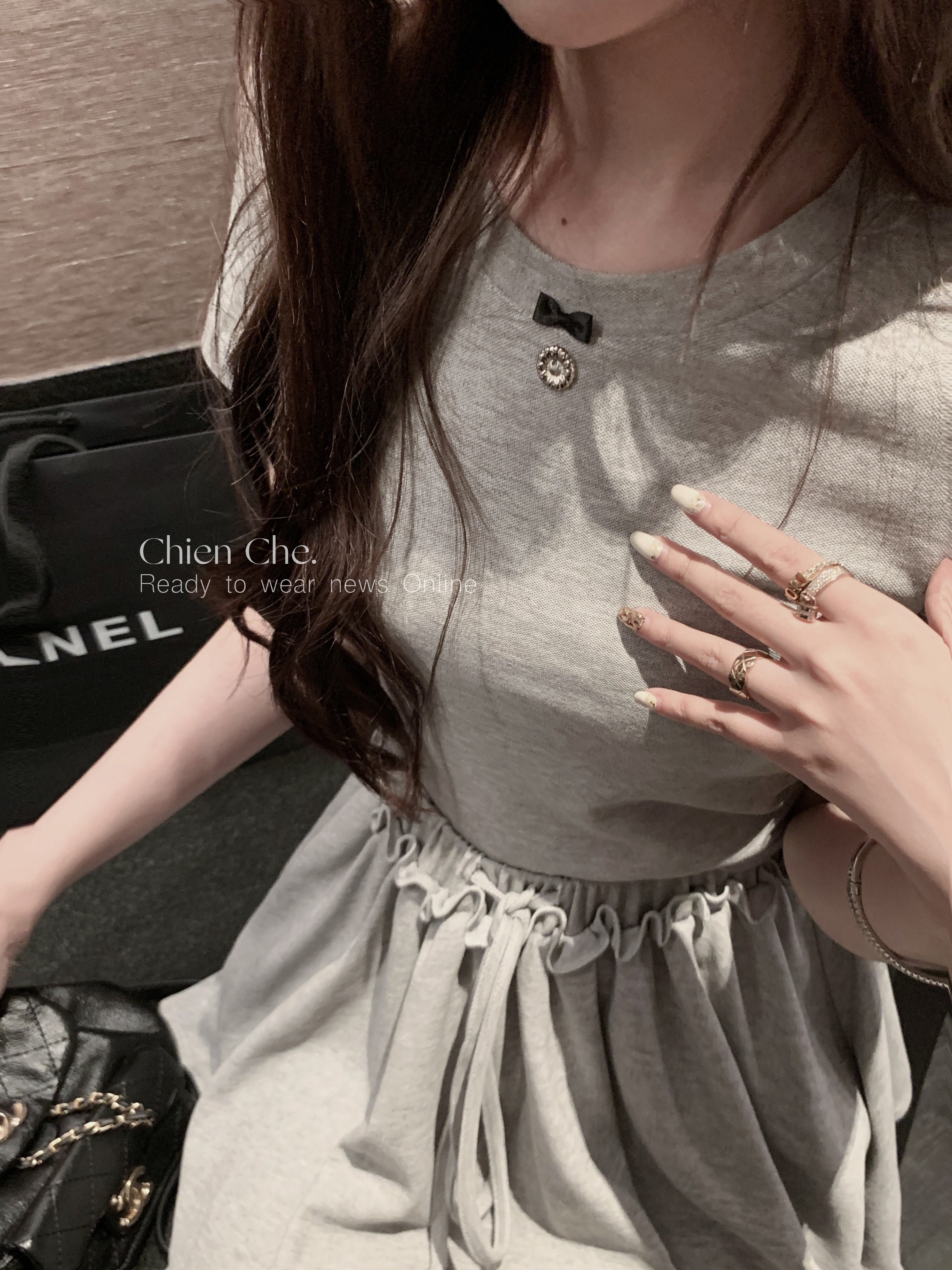 以不挑人的花灰色為主 拼接了黑色織帶
