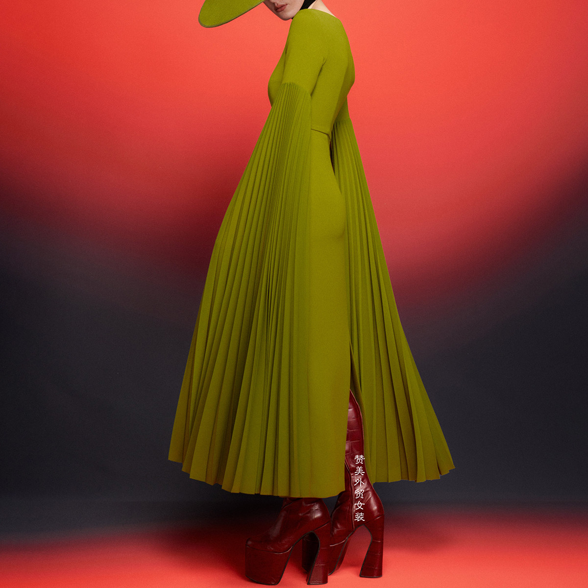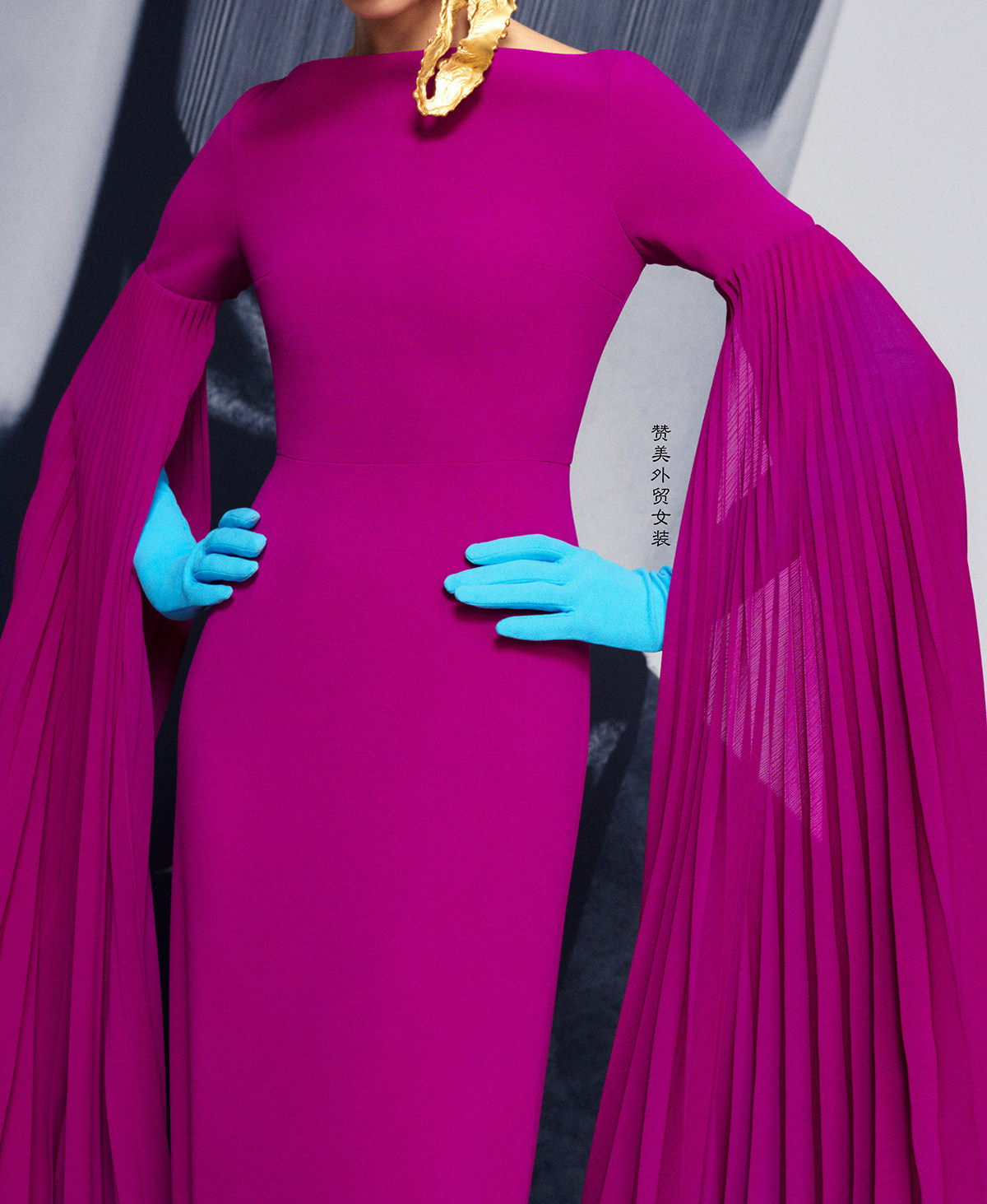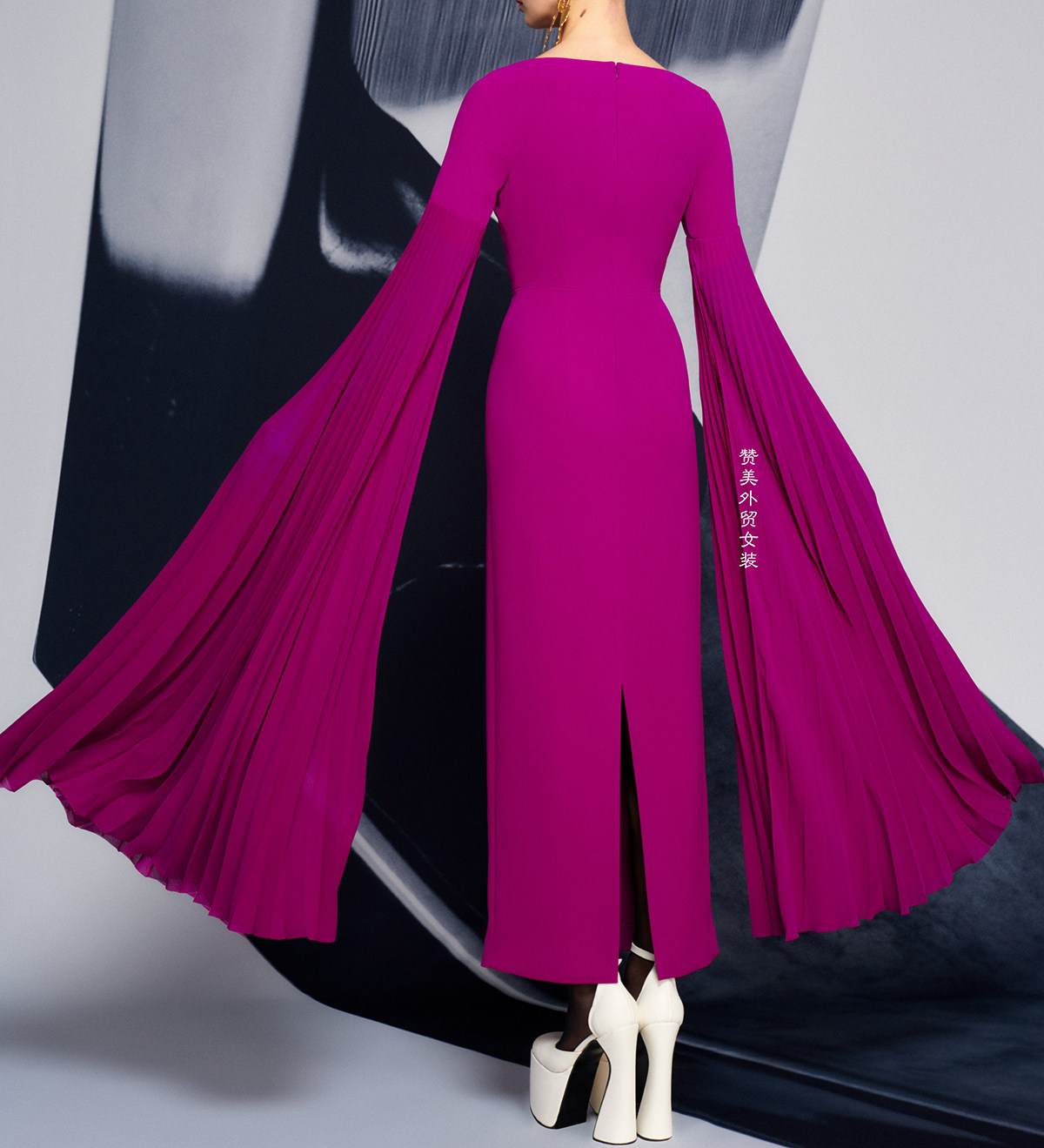 面料微彈力,設計感百褶開衩長擺袖,氣質女神款~