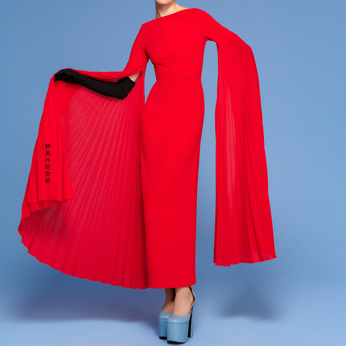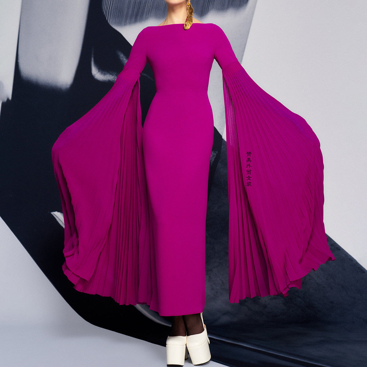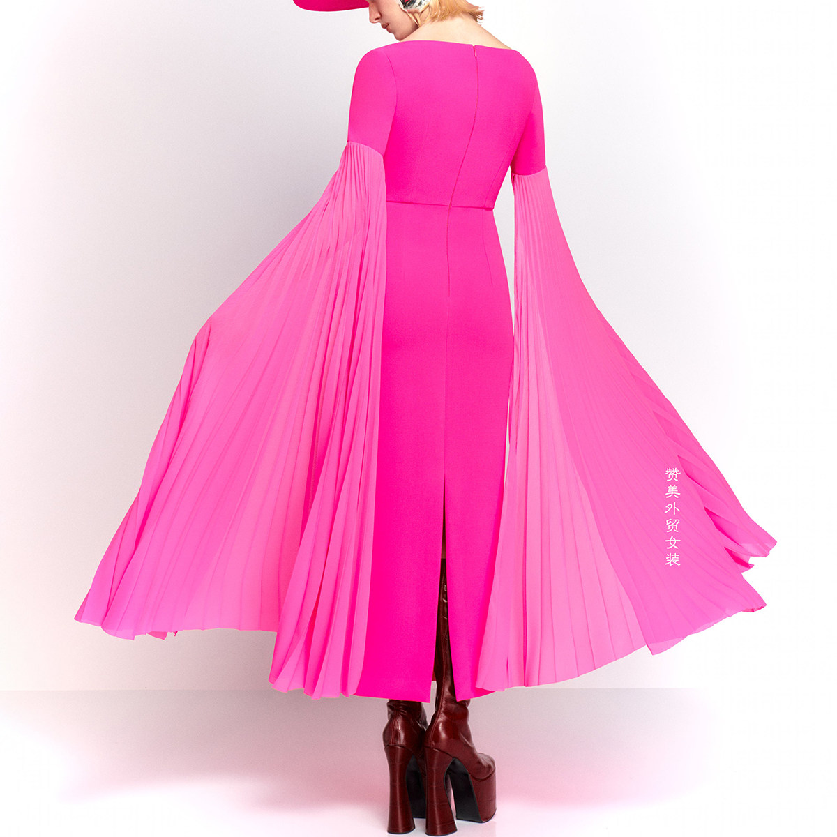 面料微彈力,設計感百褶開衩長擺袖,氣質女神款~