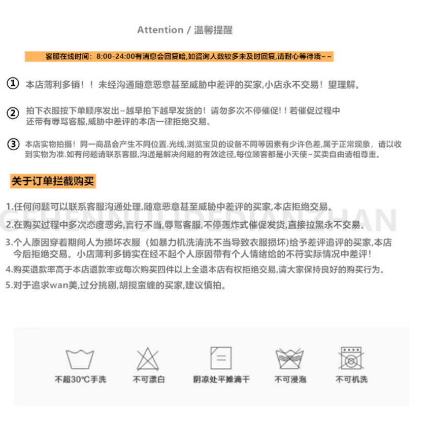 因商品為海外寄送,若拒收包裹,包裹將會退回海關並被銷毀,且訂單款項不會退款。請務必在下單前確認收件地址及商品內容無誤。