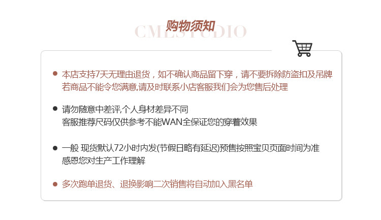 - 本人了解並接受海外代購的特殊性,並確認不會因規則中所列條款(包括但不限於:商品不可取消、折價券使用規則、不可控因素導致訂單取消等)而要求商家賠償或補償。