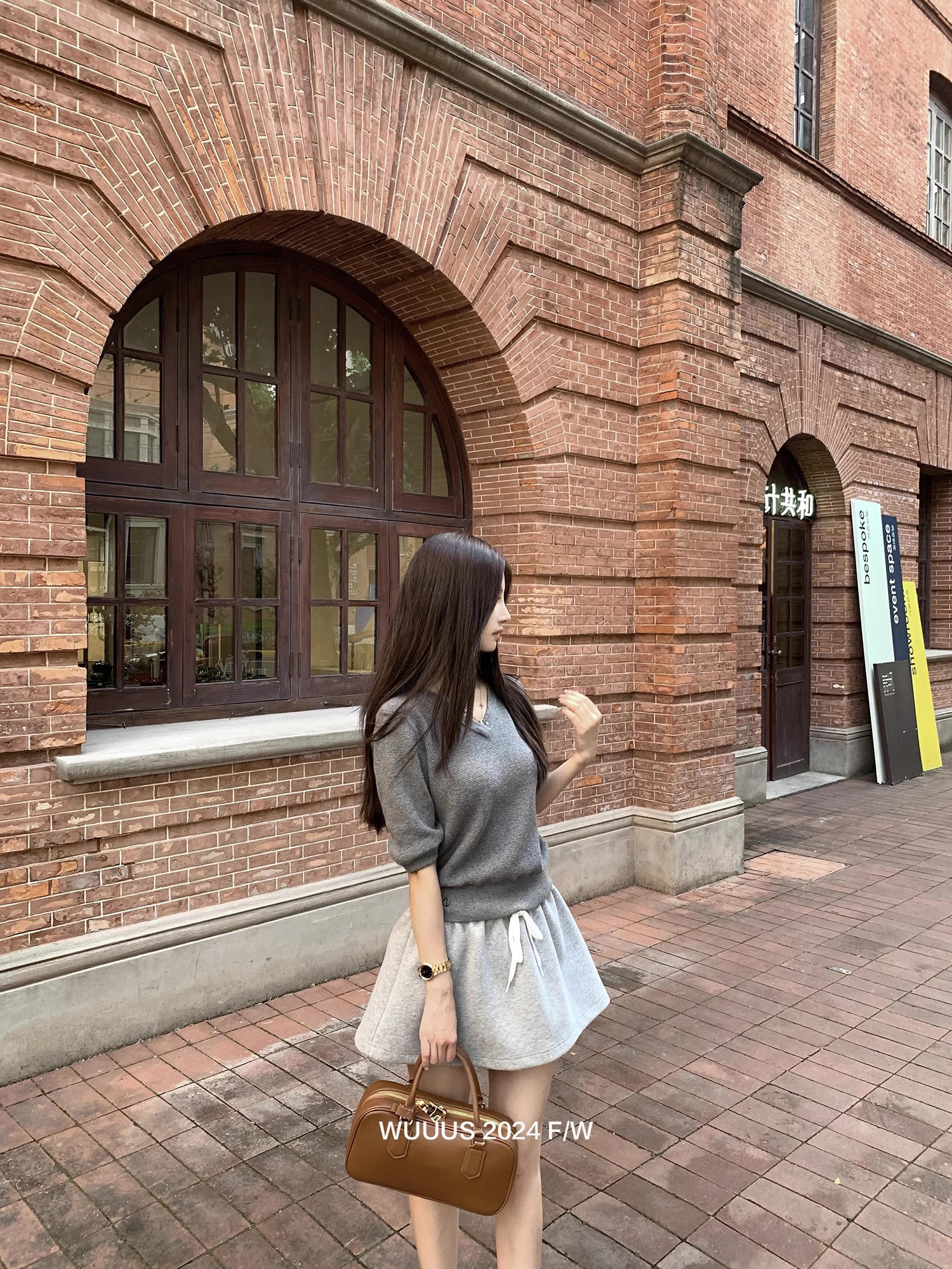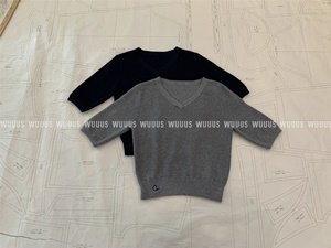 Wuuus original系列【勞倫學院】疊穿五分袖V領毛織衫