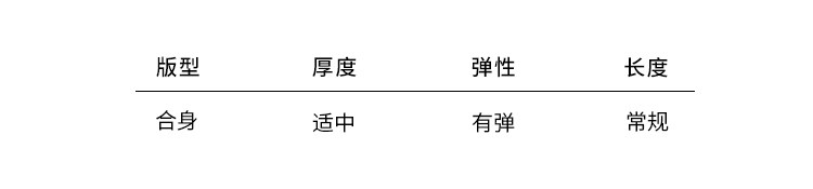 提醒:平面測量CM,因測量方法不同,存在2-3cm誤差屬于正常范圍。試穿表格 僅供參考