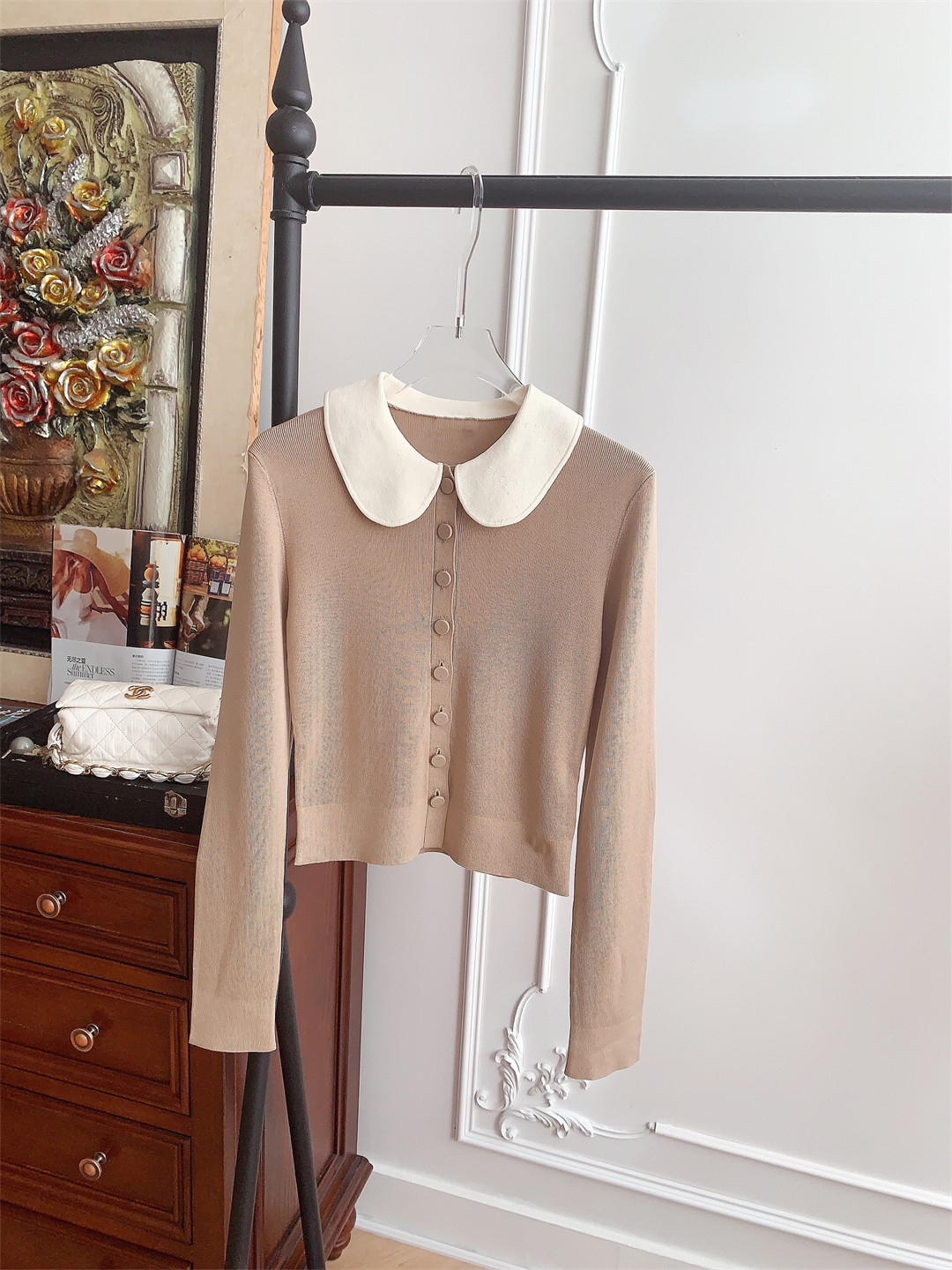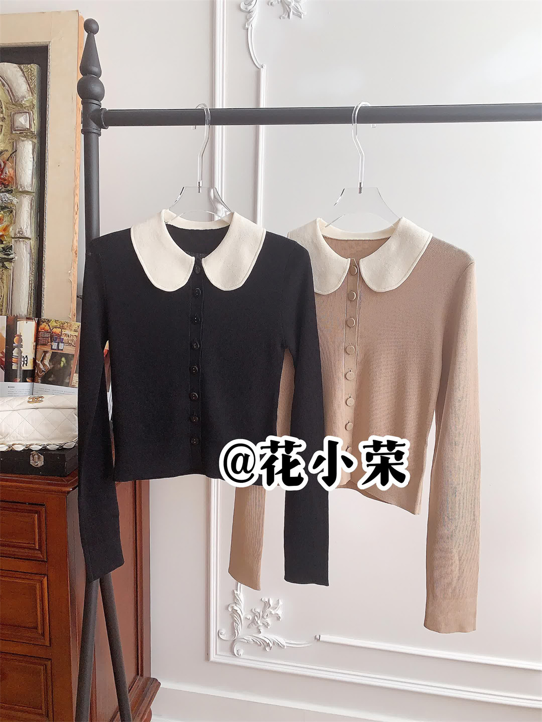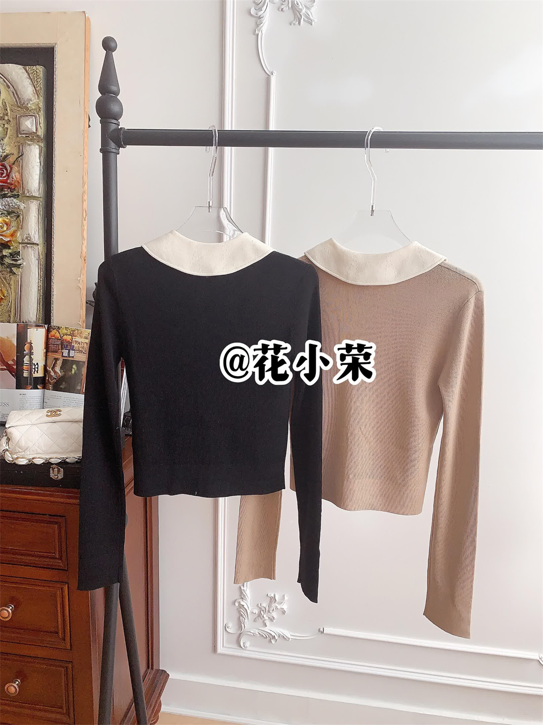 D家這款24早秋新品修身顯瘦撞色娃娃領針織長袖上衣一定不能少