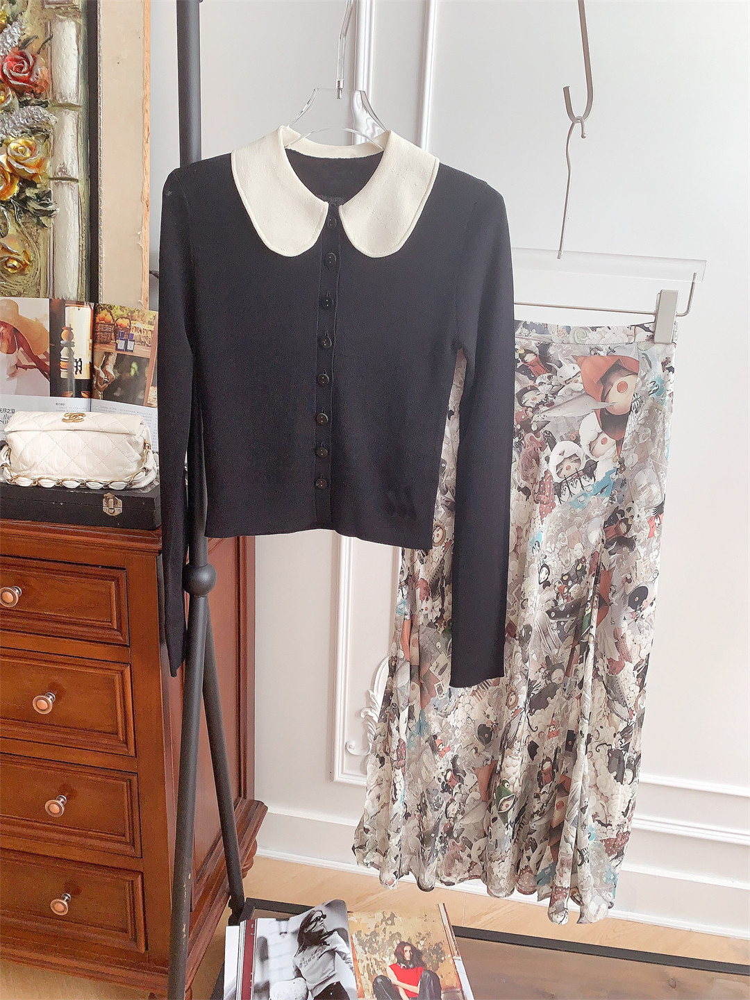 也可搭配復古藝術感卡通印花高腰半身裙~營造濃厚的藝術氛圍感