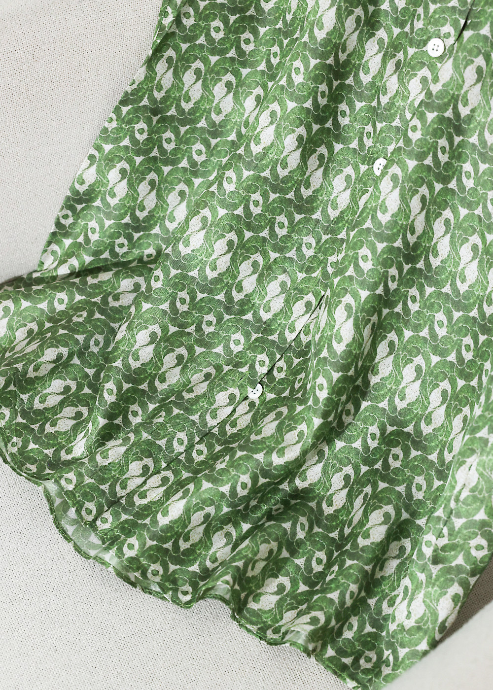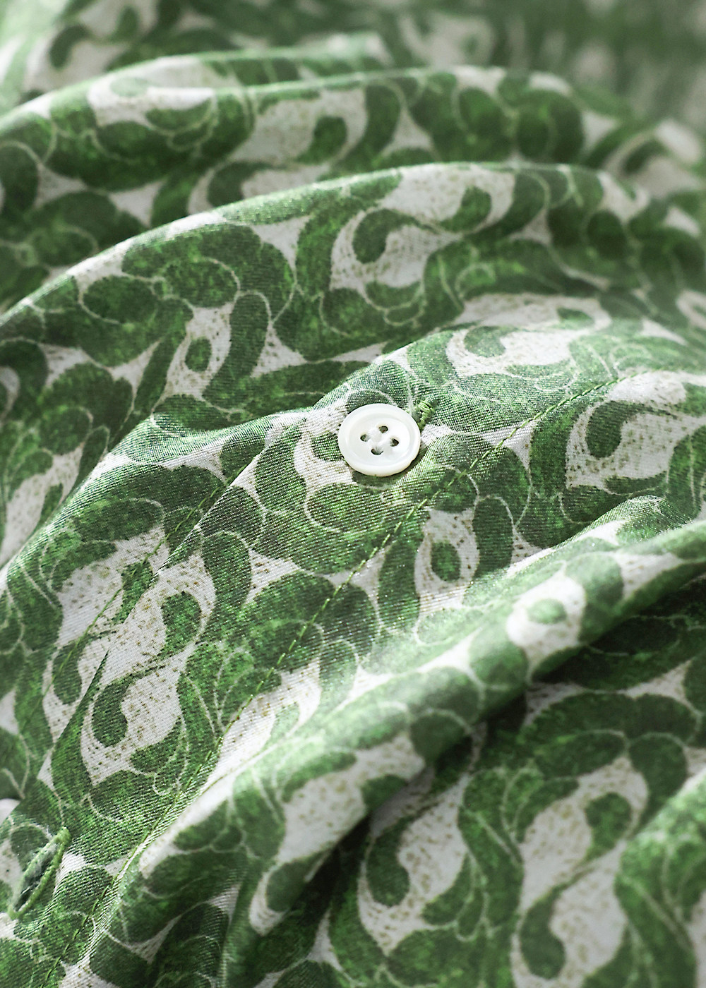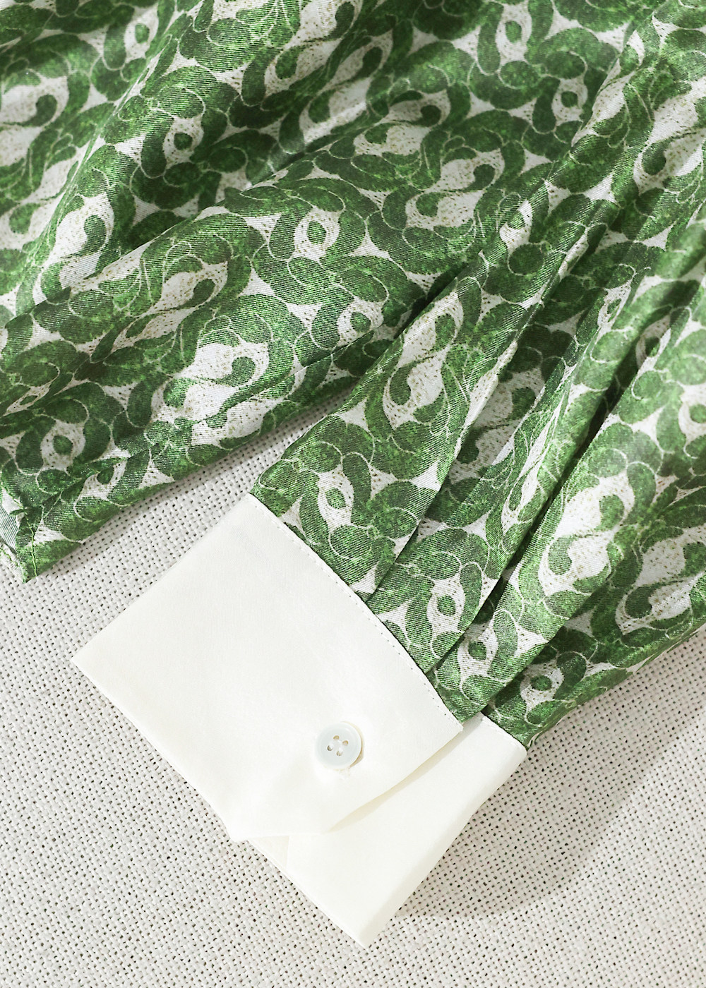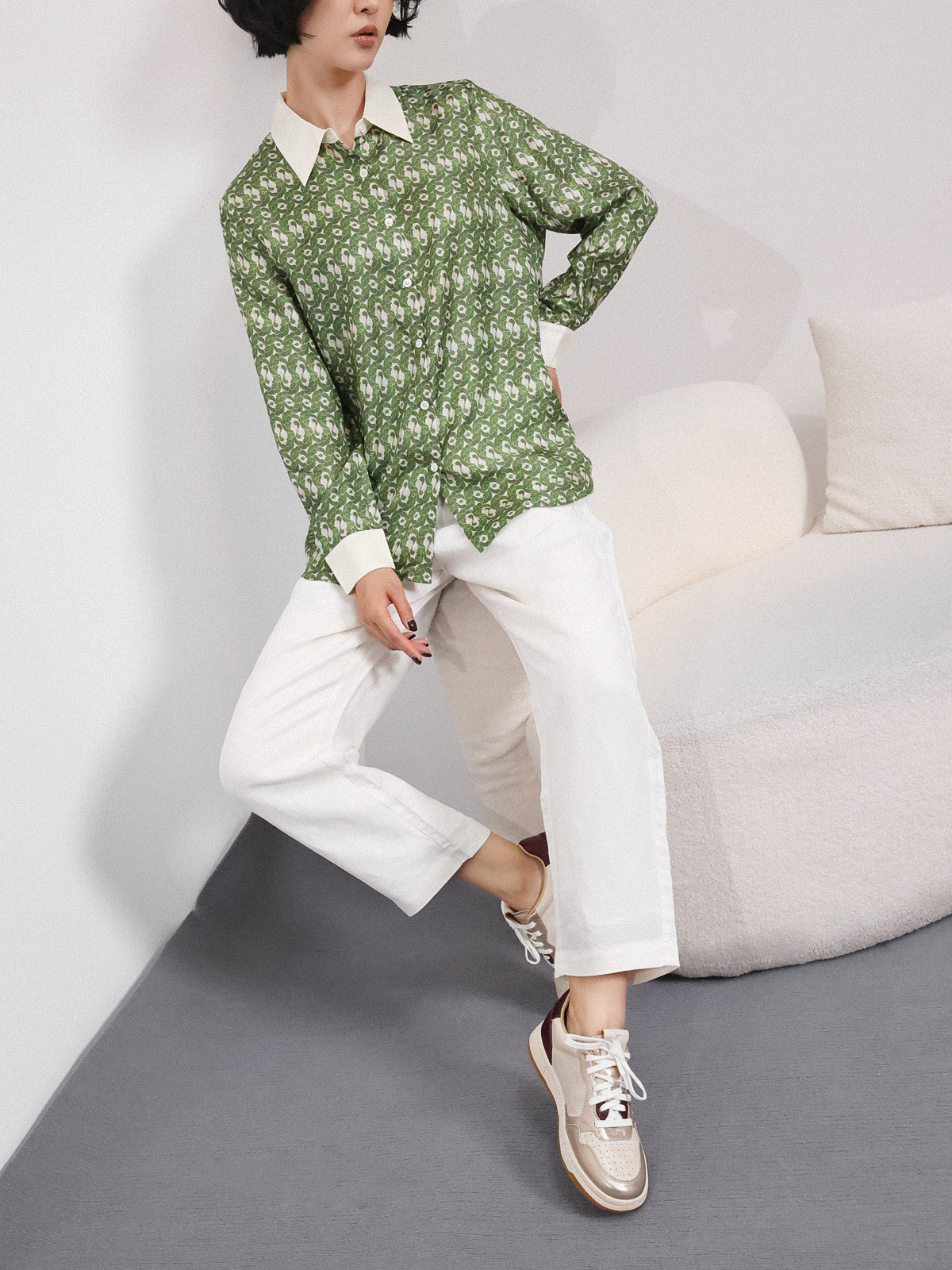 法單款桑蠶絲景粹印花翻領單排扣寬松襯衫