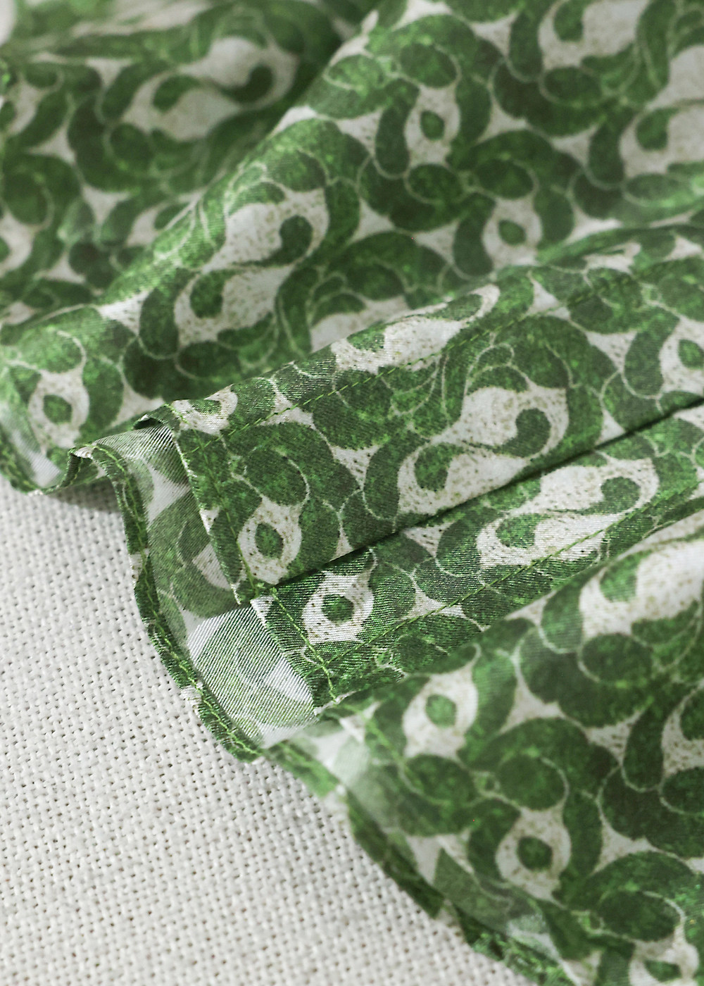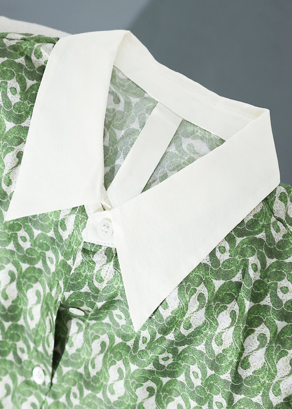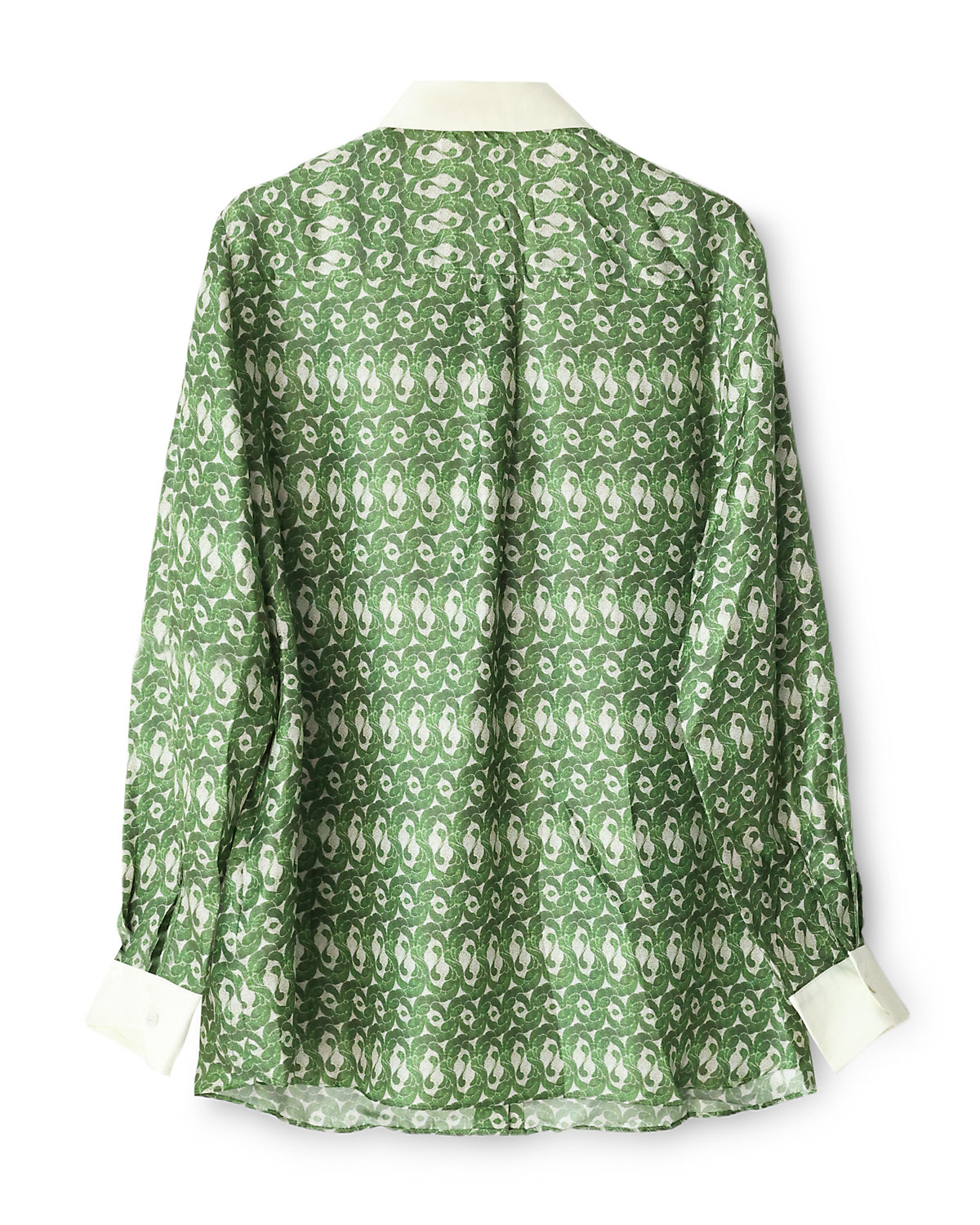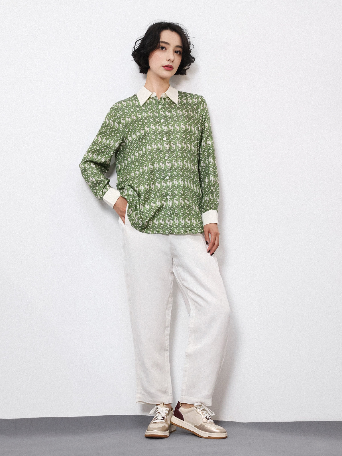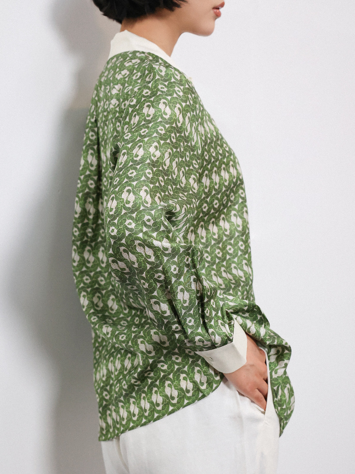 法單款桑蠶絲景粹印花翻領單排扣寬松襯衫