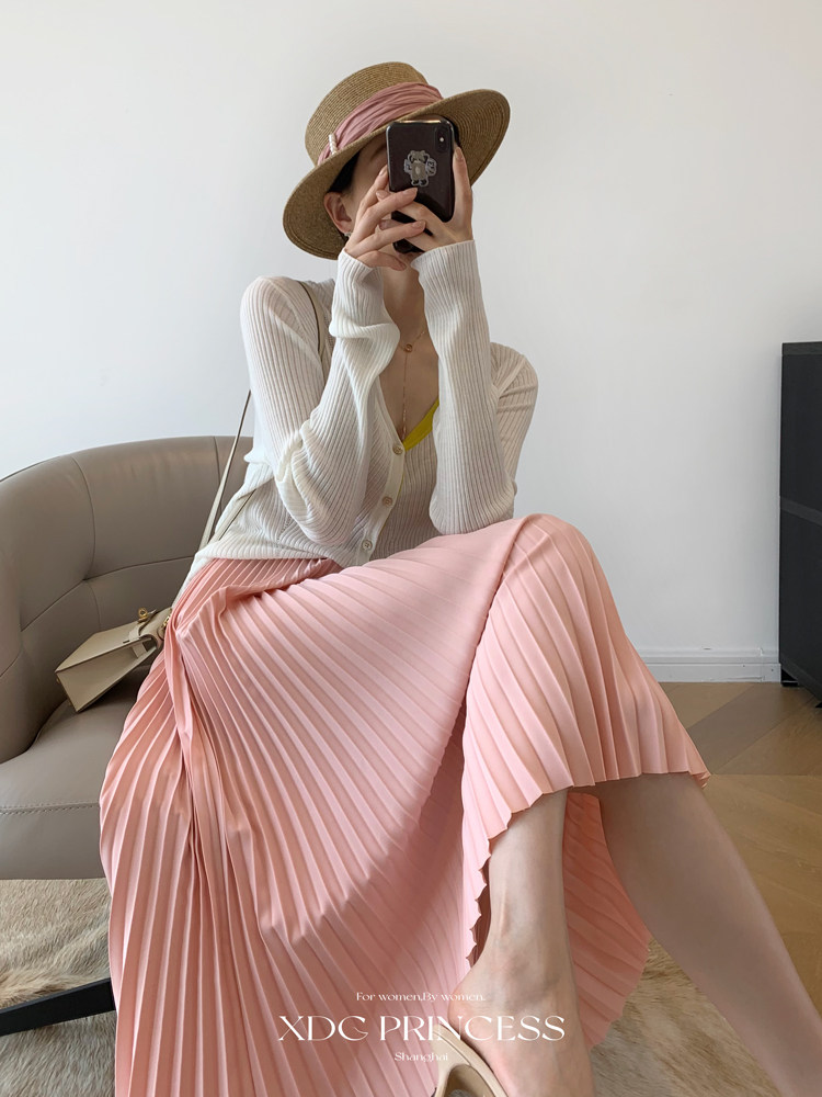 太喜歡春天了~~~ 各式各樣的裙子撩人眼,一年四季zui美的季節~~~ 半身裙一直霸占著我們高性價比之WANG的頭銜,沒有讓人失望過 這次給你們上的這款裙子,我們真的是用了心的 這款的價格也才一百多,性價比chao高而且百搭!人手幾色收! 它本身是出口韓國的訂單,用的是zhuan門定染的面料,好幾個色都是美翻的!!! 這款不僅面料CHAO贊,而且裙型也是我CHAO喜歡的類型! 要知道你離溫柔起來只差一條純色百褶長款 優雅的百搭神品,這個系列都是基礎剛需色 人手BI入,怎么買都不會錯的! 她的裙身的形狀是優雅的風琴褶,如同巖石的紋理,流動的水波 細密褶皺之間,權是萬種風情 連心情也會跟著曼妙起來 作為裙裝界的“闊腿褲” 百褶裙顯瘦又百搭 尤其能婉美遮住小粗腿的中長款 細密的褶皺隨風飄搖 美到不行,從骨子里散發出一種復古法式氣質 她zui大的優點就在于不挑人,好駕馭 柔和的線條自然垂下,就算是胯寬的妹子也不用擔憂 只要搭配一件蓋臀的T或者襯衫就可以解決 從視覺上修飾腰臀比例達到很好的修身效果 都能輕松演繹,無壓力hold住 而且這次是特意定染了9個高級色,從日常黑白灰到氣質溫柔色應有jin有~~~ zong有個顏色適合你