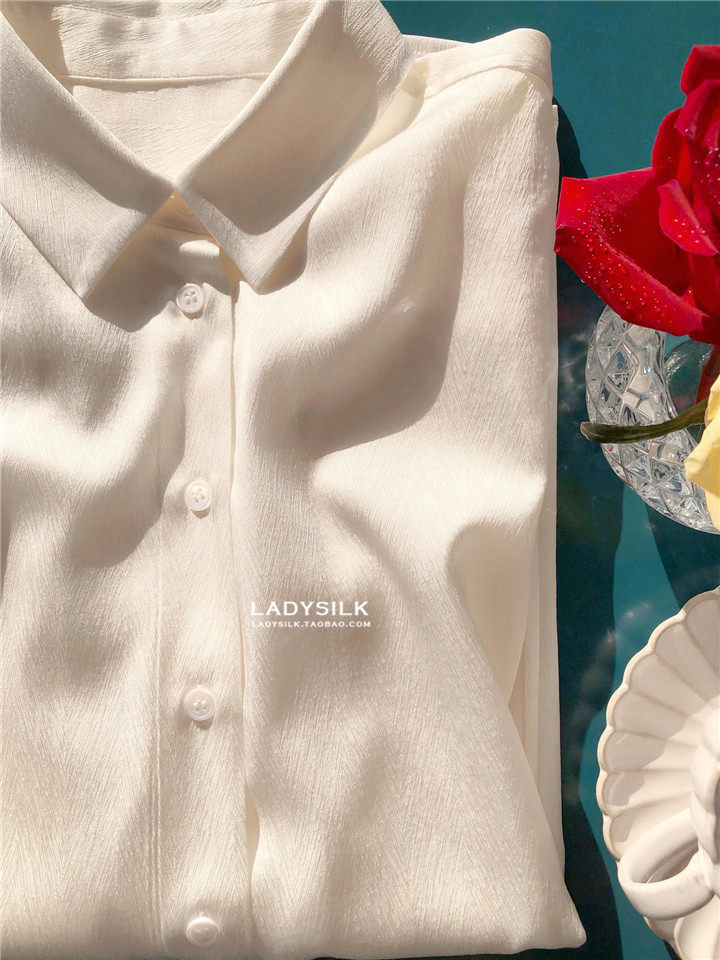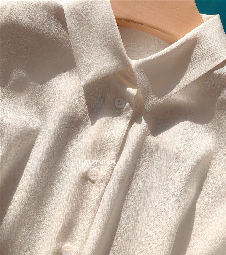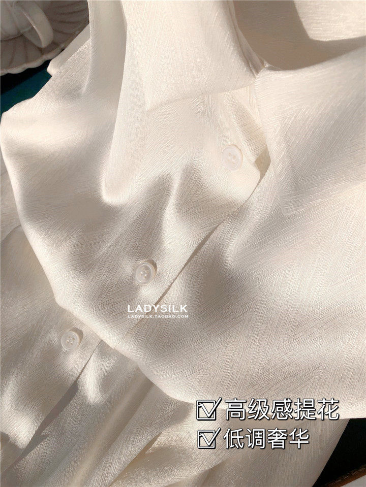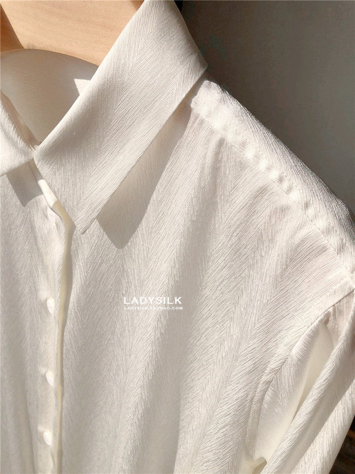 不是簡單的白色襯衣~而是極細的羽絲提花與條紋提花相間的,