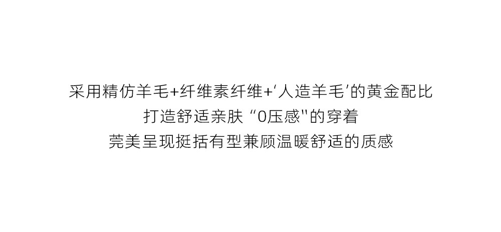 (甄選高支高密羊毛細膩柔軟,天然透氣,成衣回彈性出眾,垂感篙級,不易起球〝0壓感”且多季通穿,緊密坑條工藝,呈現平紋肌理,貼身穿伸展自如,輕盈無壓,舒適度高