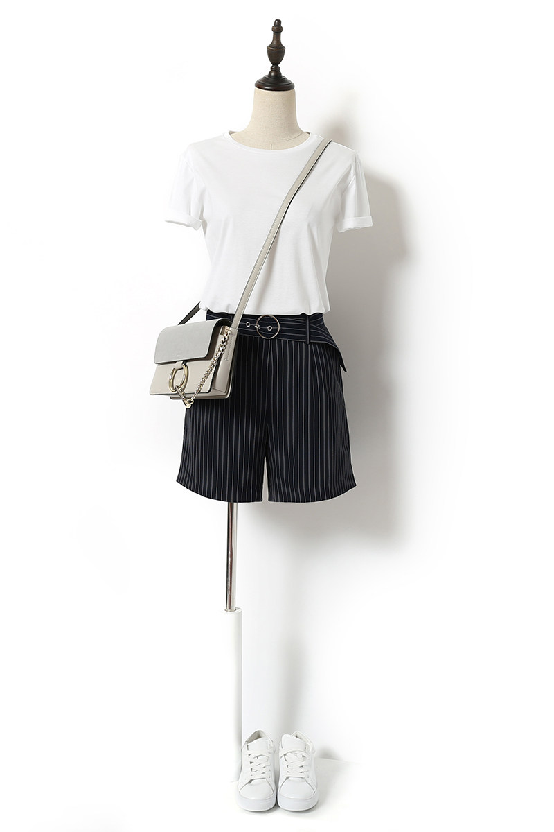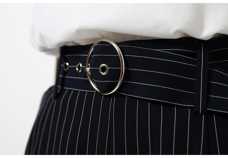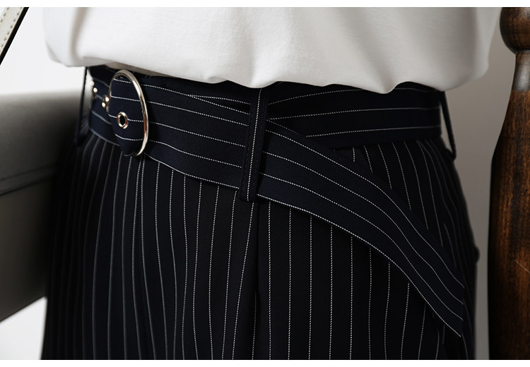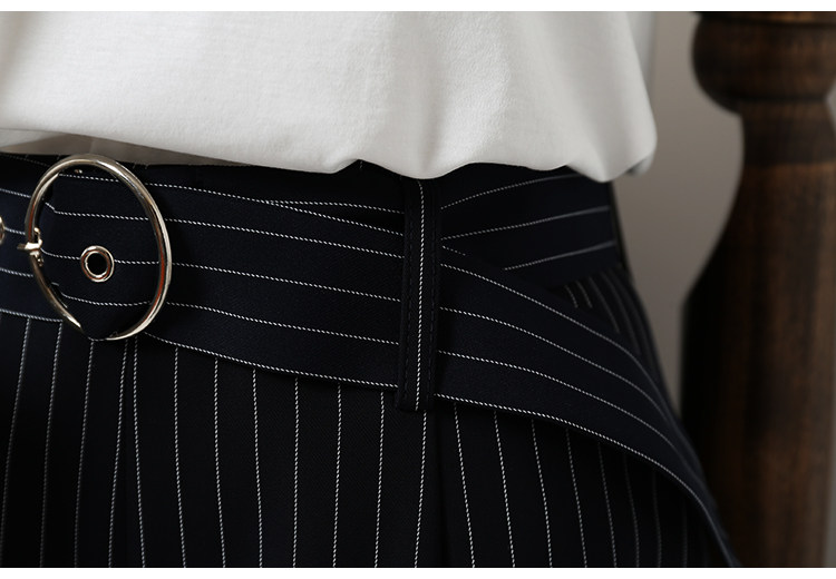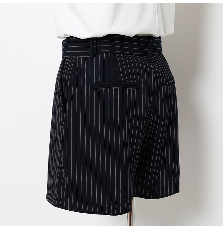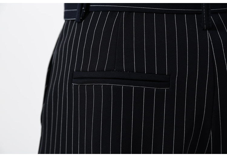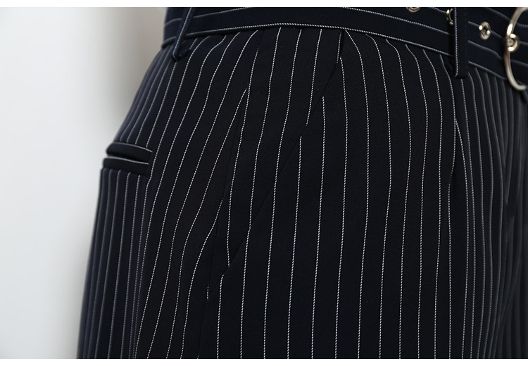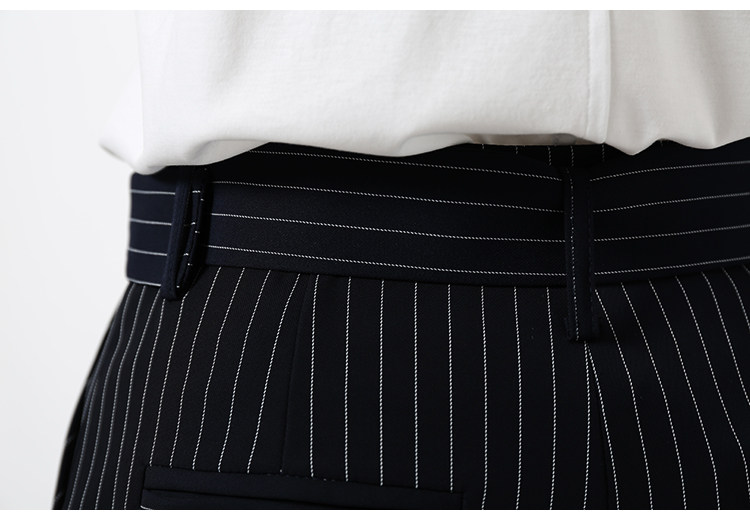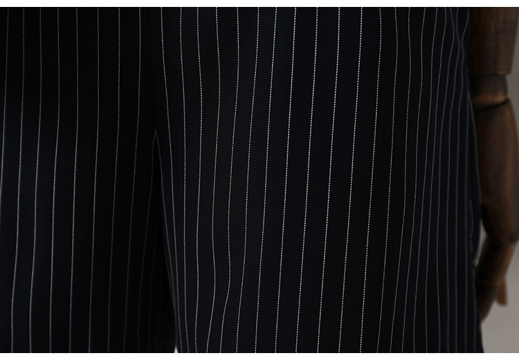 藏青色條紋配以簡約的廓形,可以更好的包容身材,
