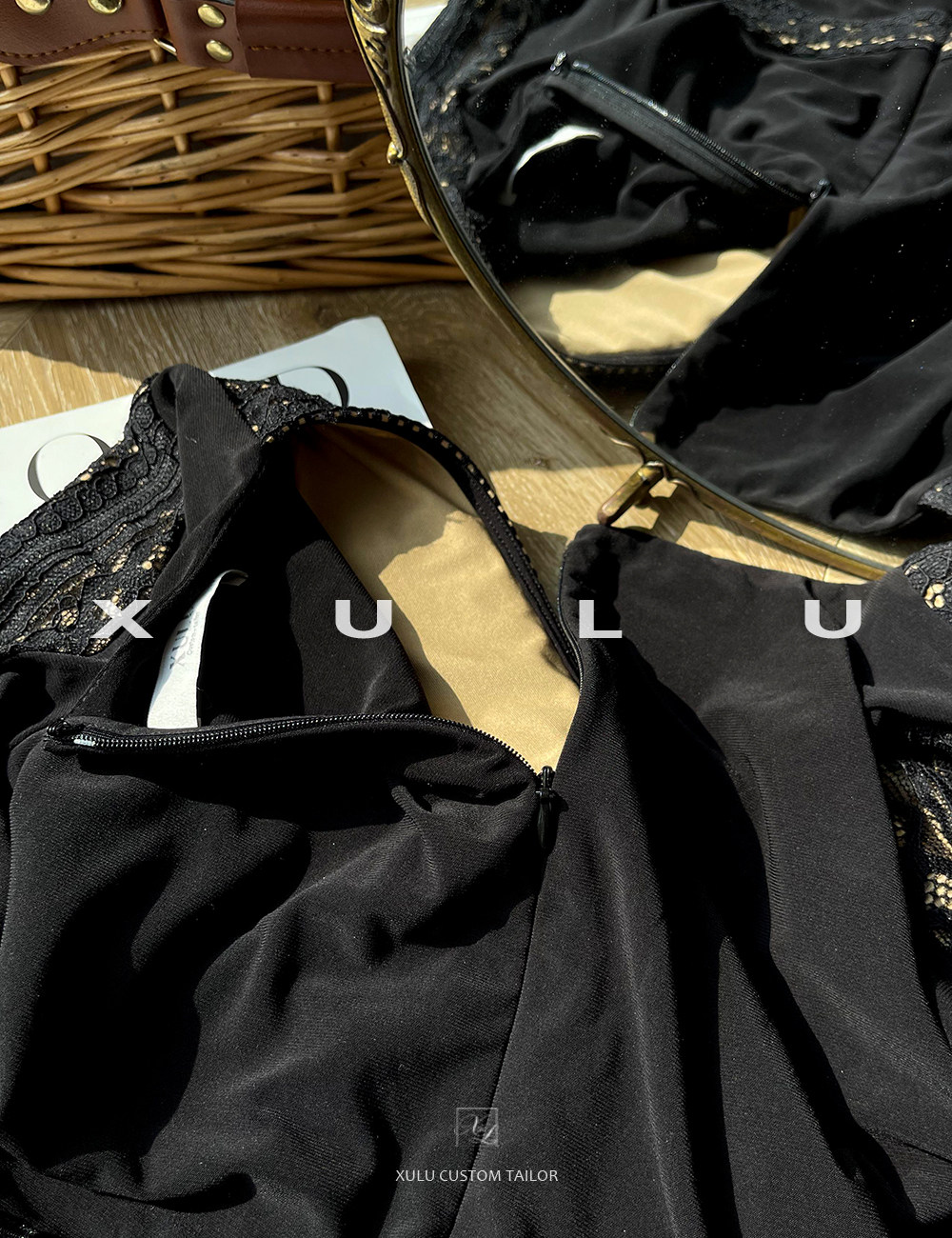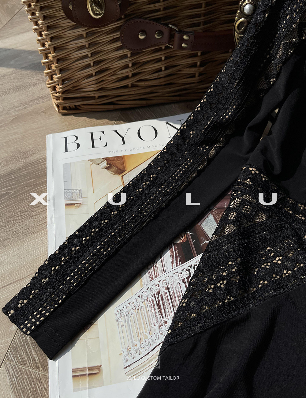 領口、袖身及腰部兩側,融入鏤空蕾絲拼接