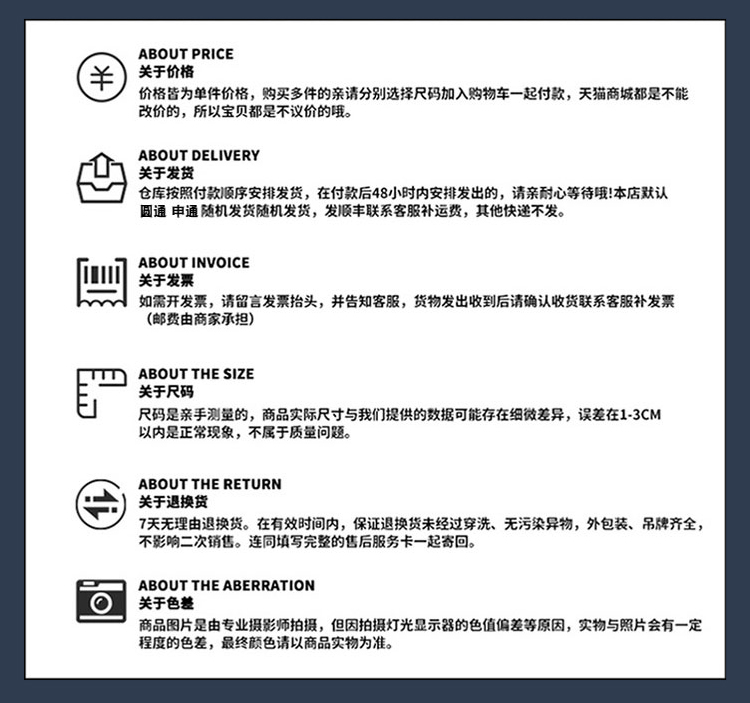 因商品為海外寄送,若拒收包裹,包裹將會退回海關並被銷毀,且訂單款項不會退款。請務必在下單前確認收件地址及商品內容無誤。 - 非瑕疵商品退貨手續費