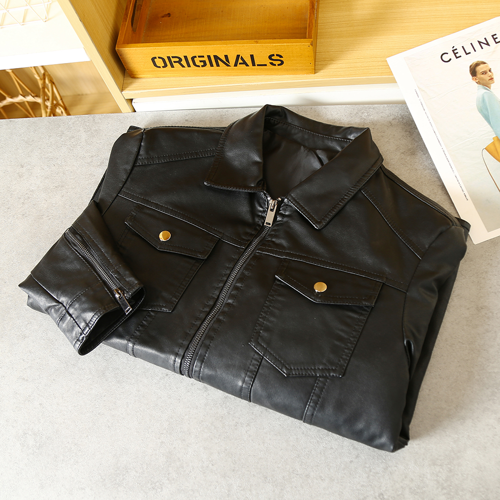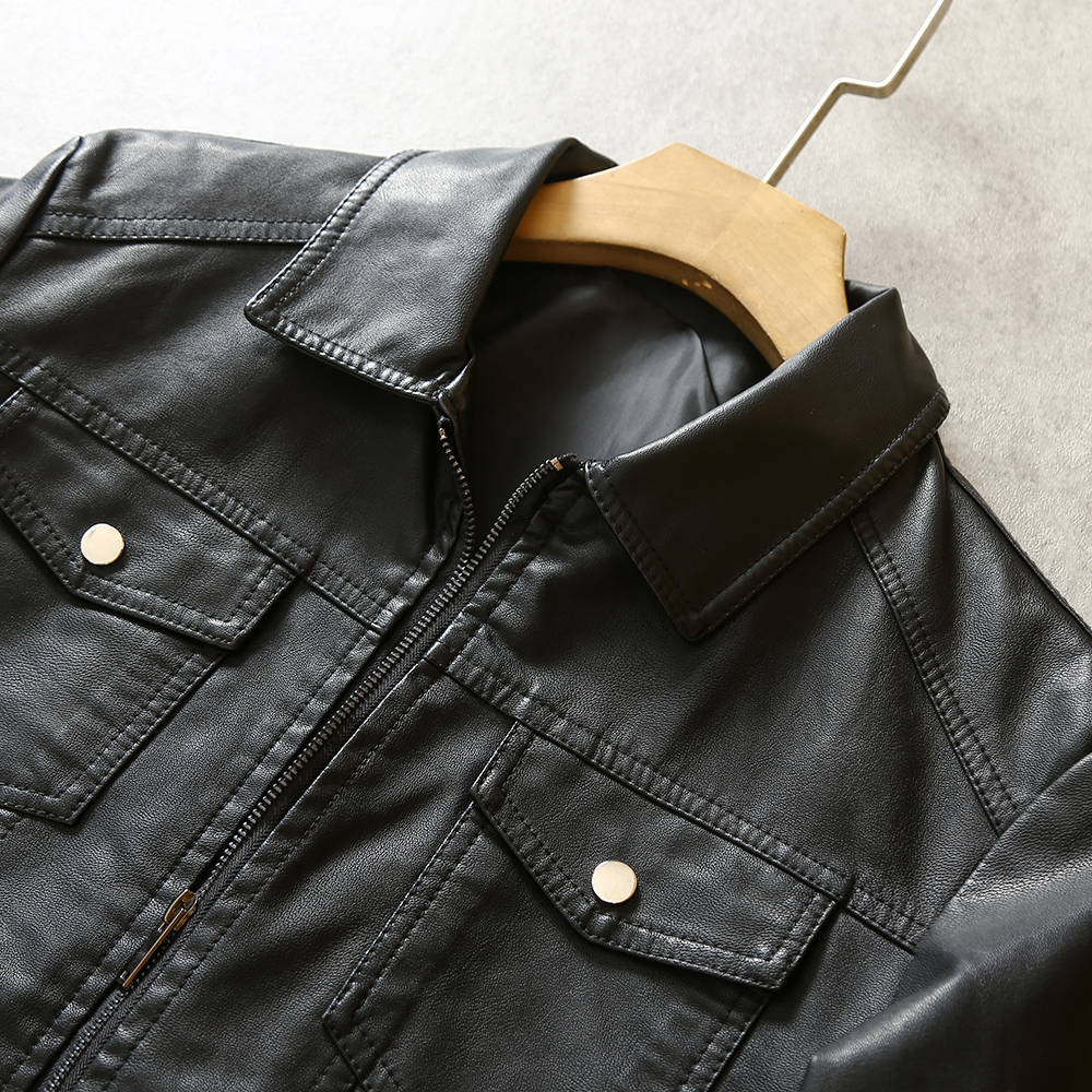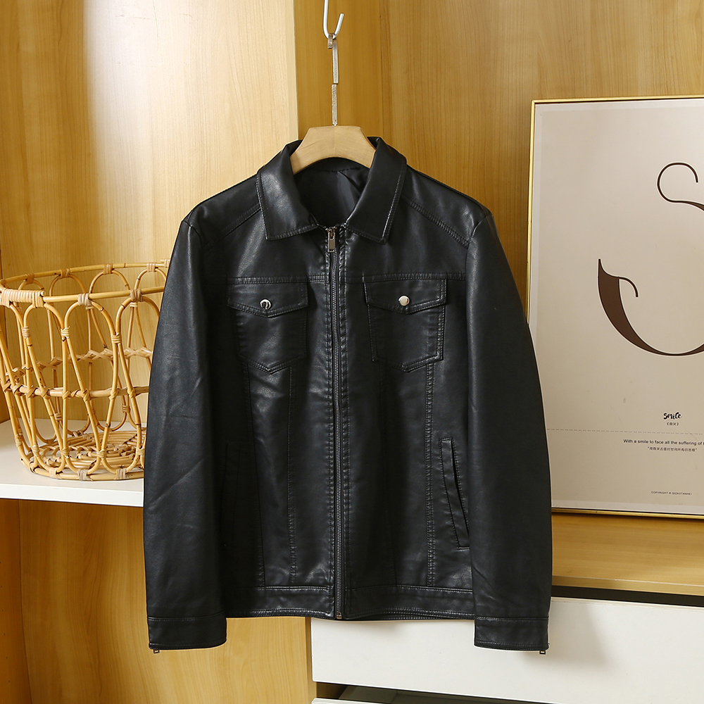 水洗PU皮皮夾克
