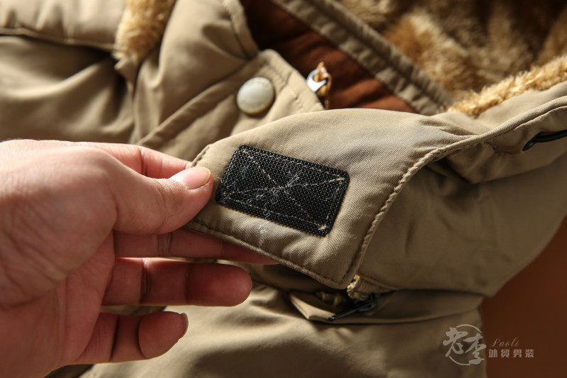 下擺兩個口袋摁扣閉合,胸前側口袋是拉鏈設計,