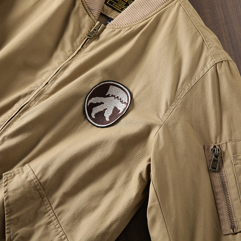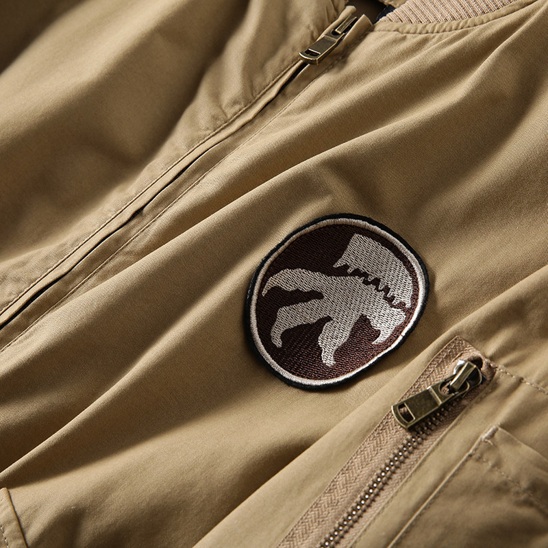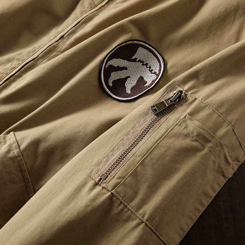肩側的拉鏈拋袋設計,飛行夾克必不可少的主元素
