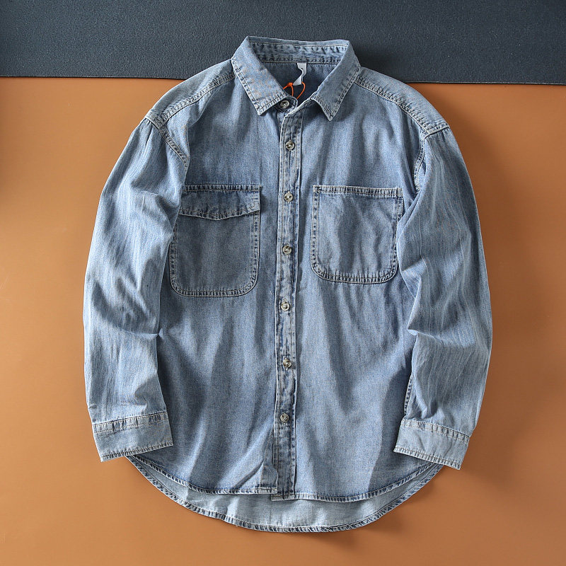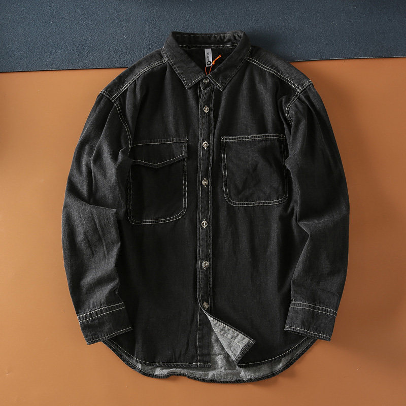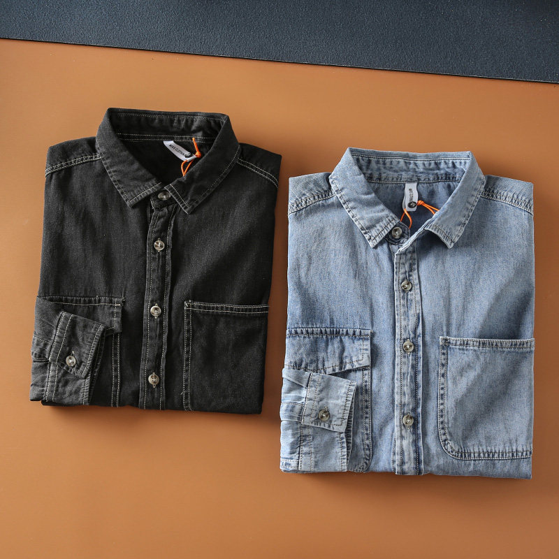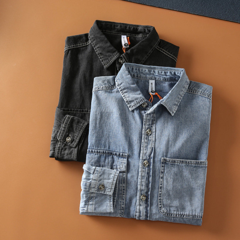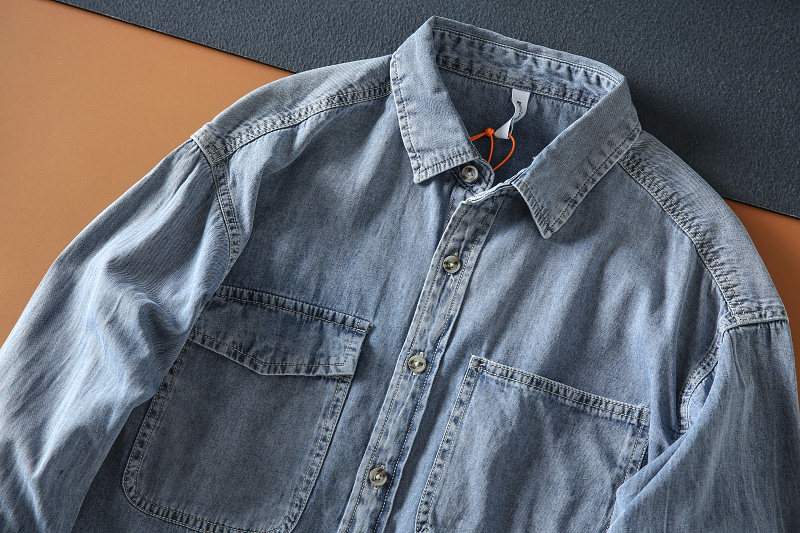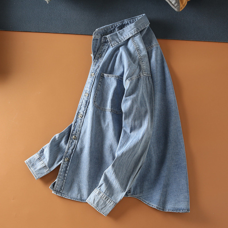 日系休閑穿搭的純棉牛仔襯衫