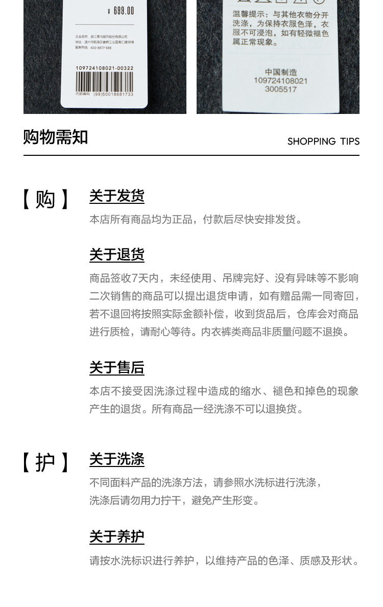 {"text":"致亲爱的森迷们:商品均由专业摄影师拍摄,专业修图师校色修正,但由于现场灯光、显示器色差以及各人对色彩的不同理解等因素,导致细节图与模特图以及实物与商品照片有细微偏差的,敬请见谅~"}