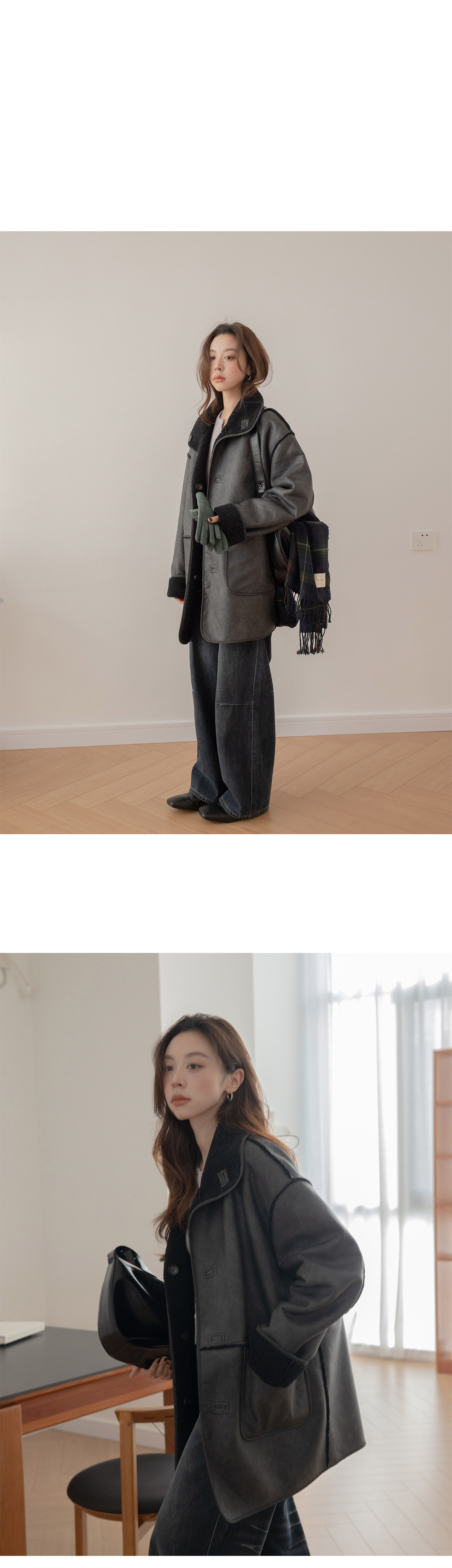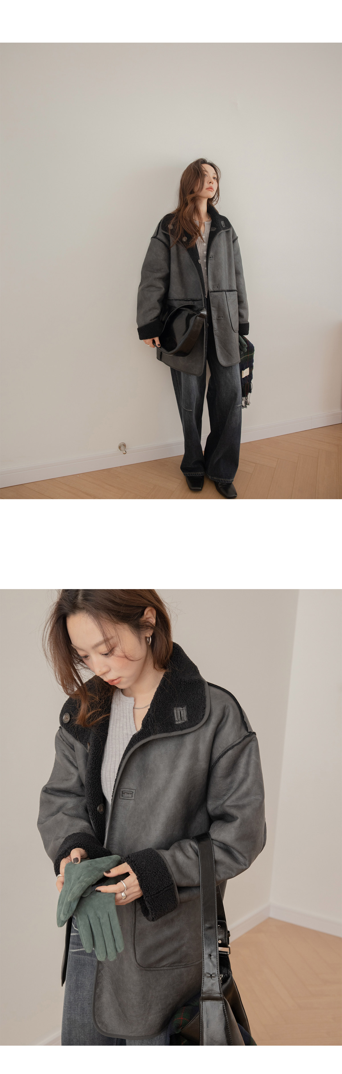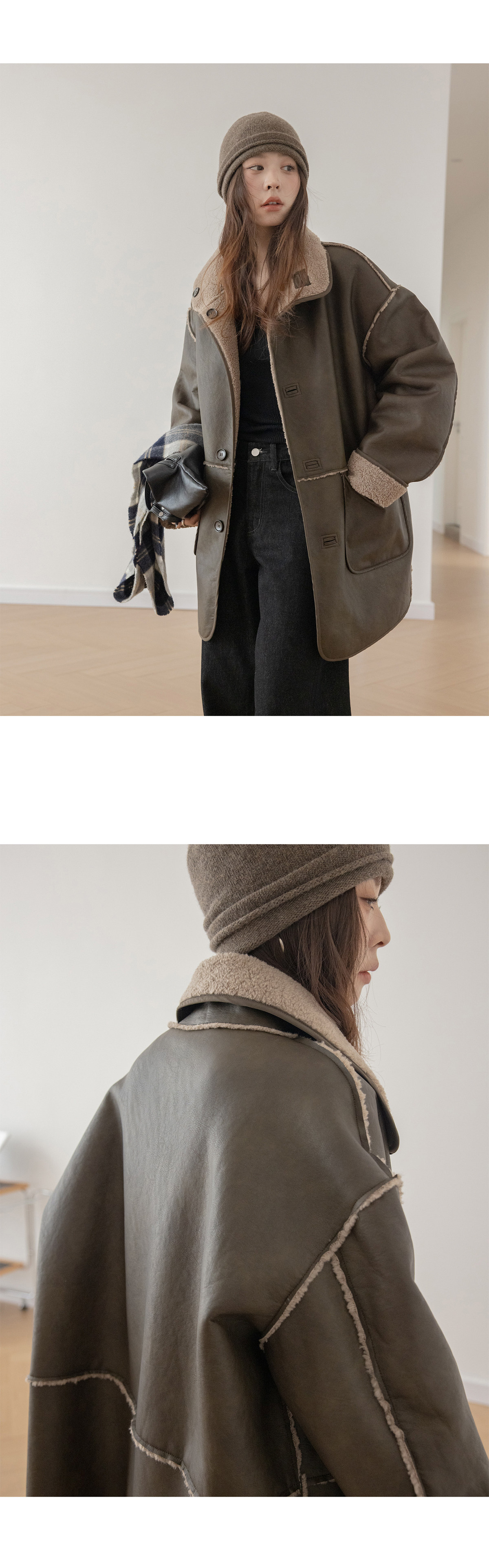 搭配外縫線形成質感碰撞。