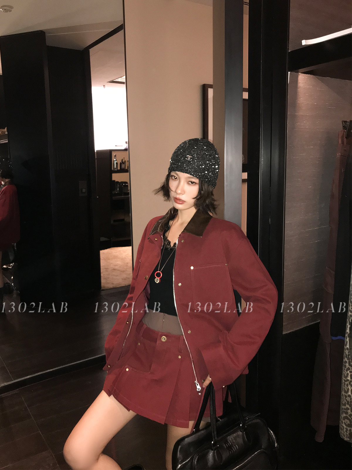 安可拉紅撞色拼接抽繩外套,力量感和溫柔分寸拿捏到位