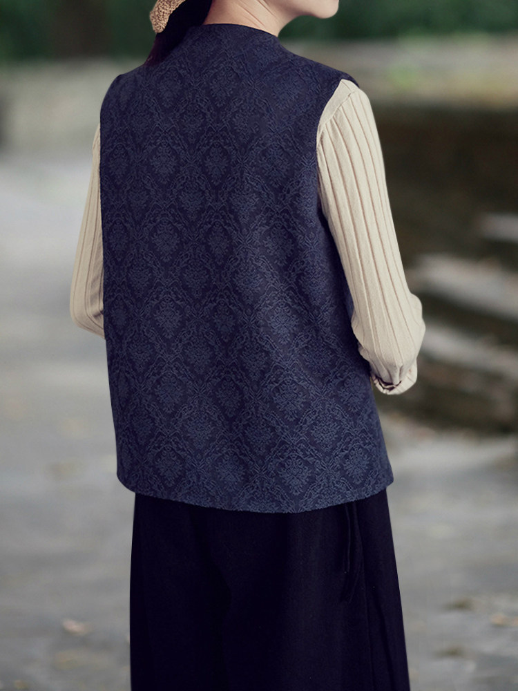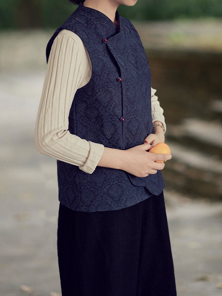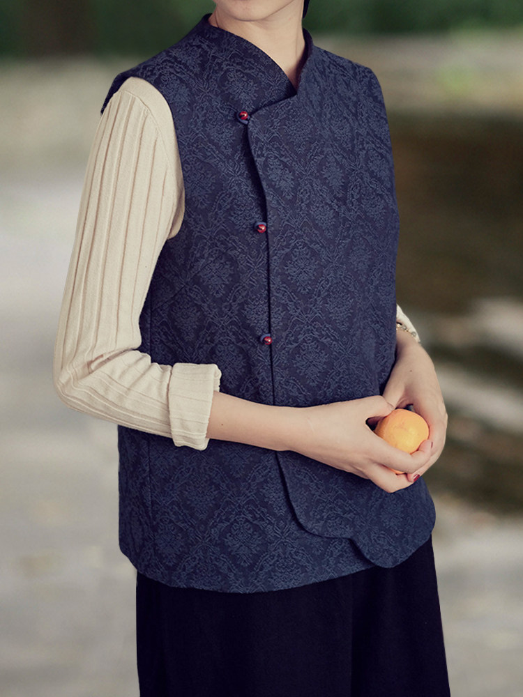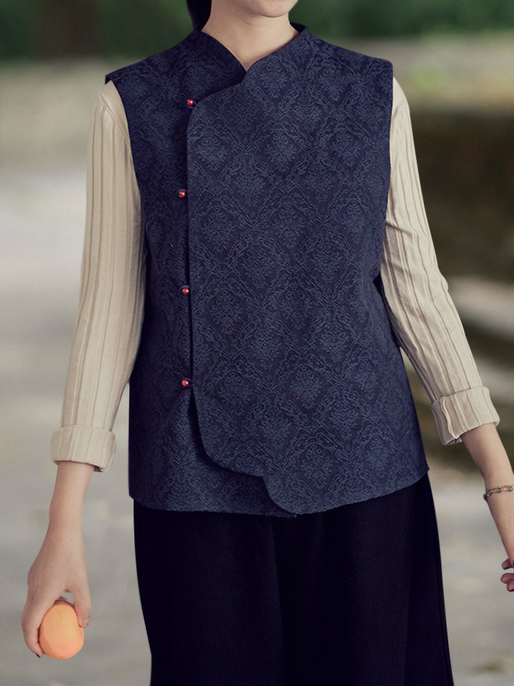 菱形肌理抽象花紋,很有質感,中式元素的斜襟,撞色珠扣點綴,