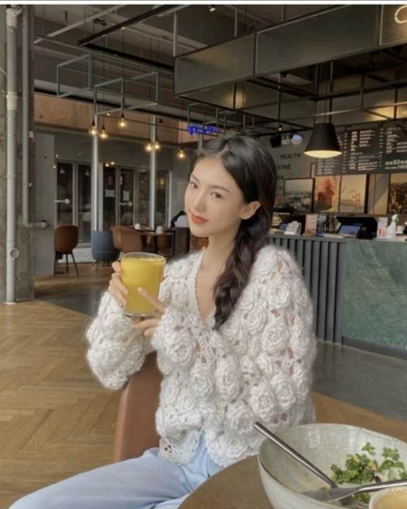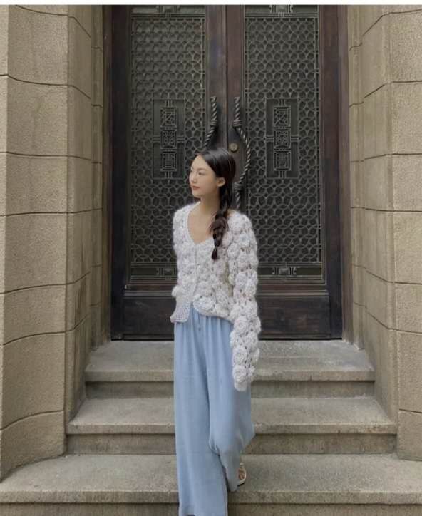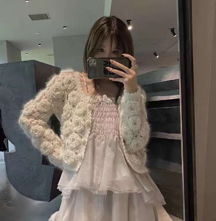 都是在玫瑰這個元素在衍生開來的,這件新品的米白色鉤針玫瑰造型衫真的是炒美