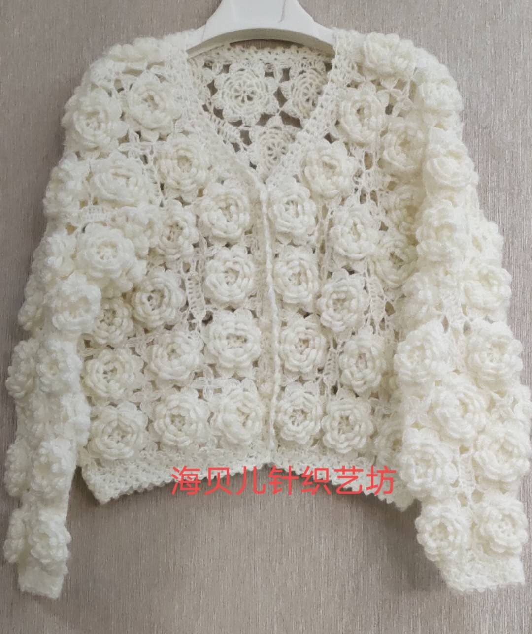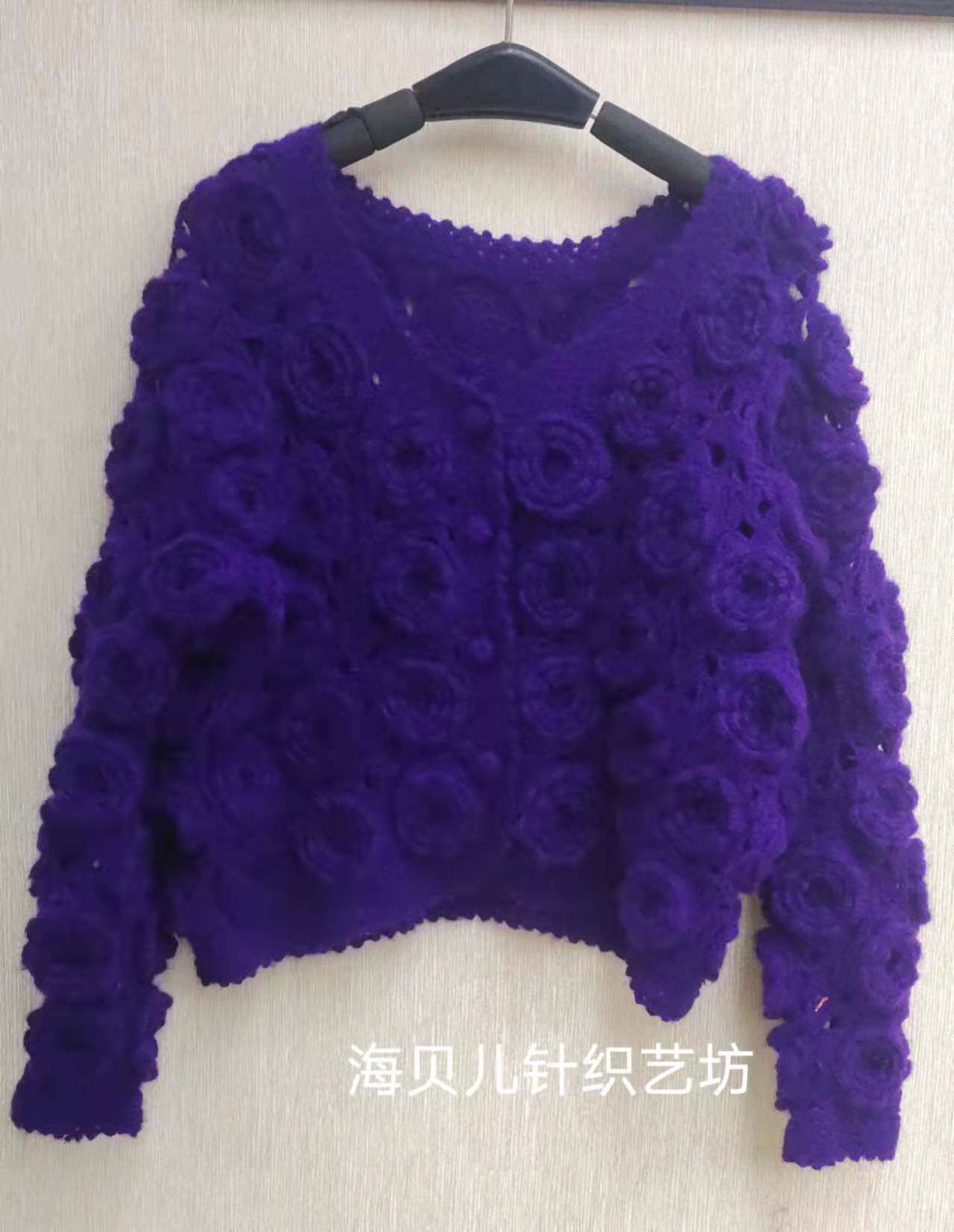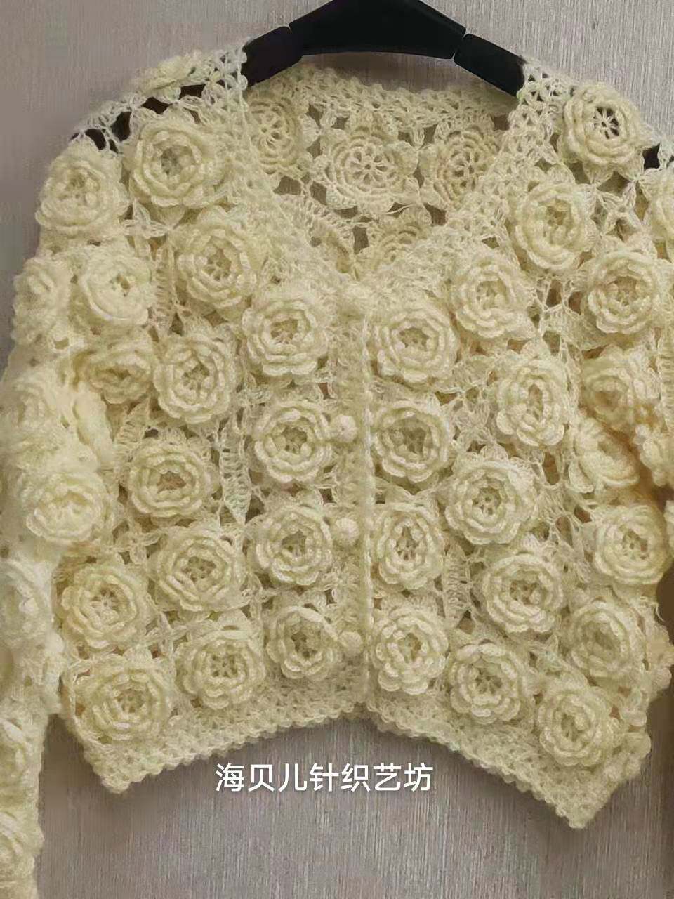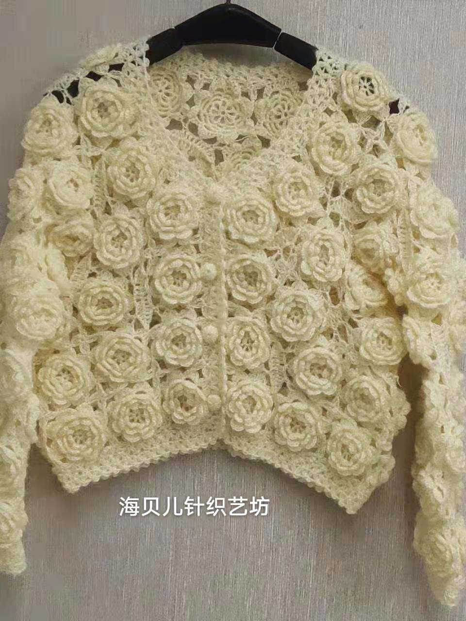 純手工制作超級重工立體花朵鉤花毛衣,耗時長,傳統手工越來越稀缺,不管是制作還是用料都是高成本,這樣的手工藝術品值得您擁有.