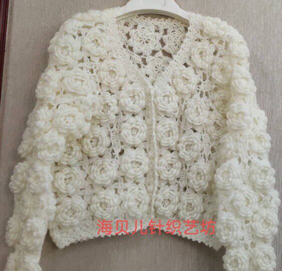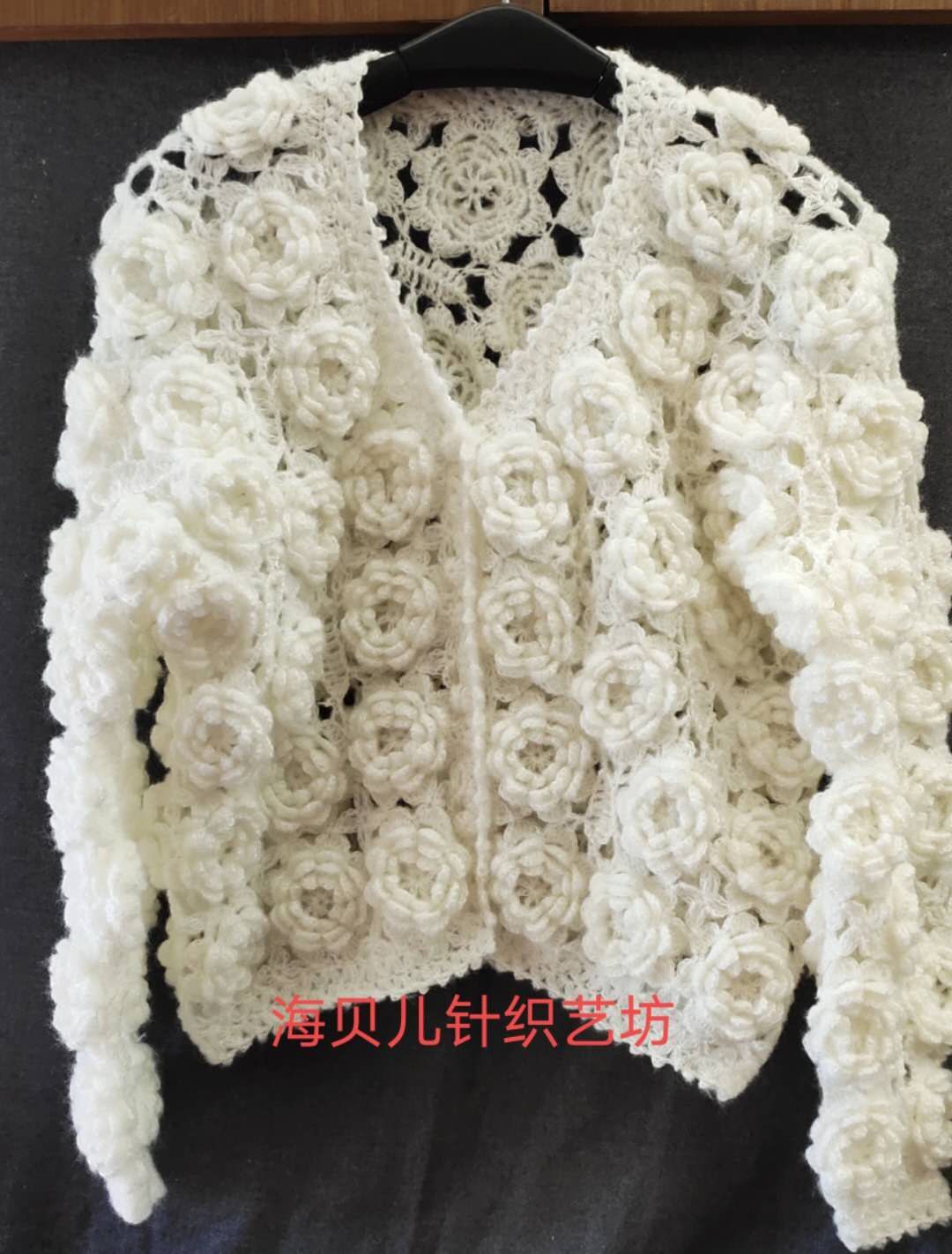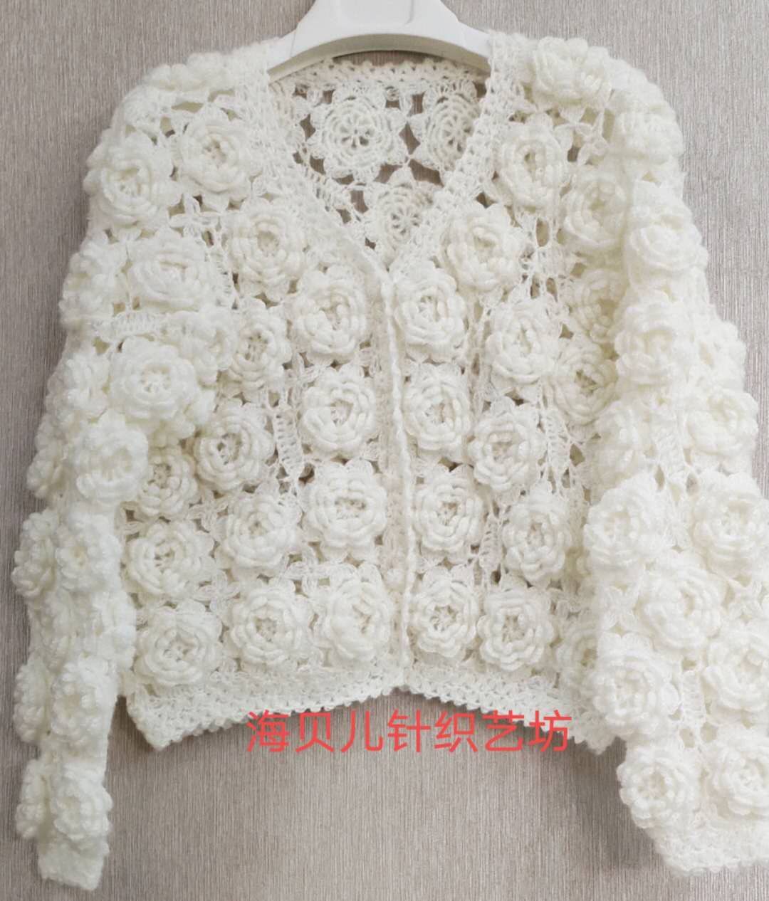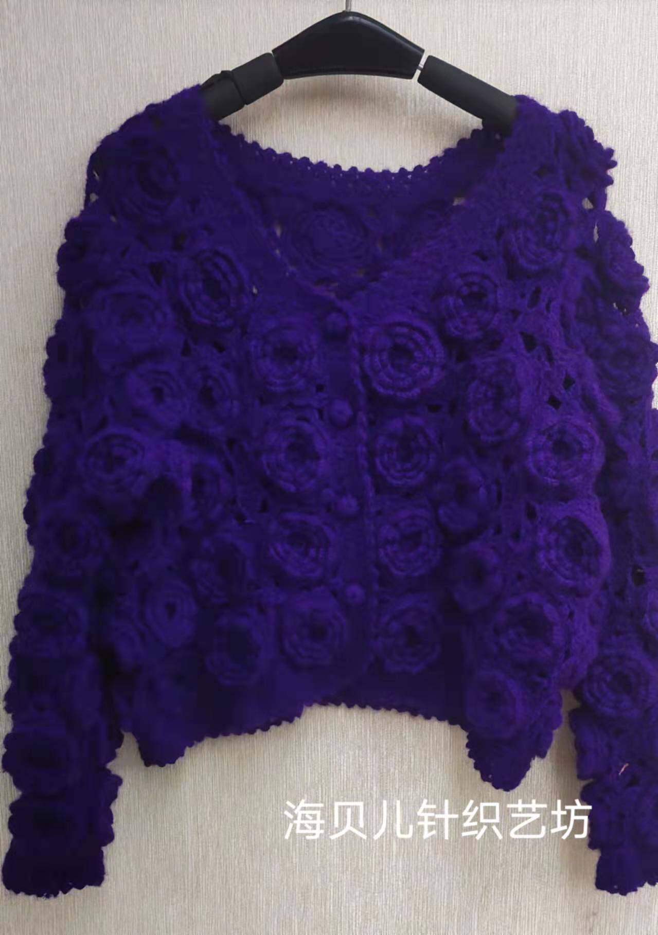純手工制作超級重工立體花朵鉤花毛衣,耗時長,傳統手工越來越稀缺,不管是制作還是用料都是高成本,這樣的手工藝術品值得您擁有.