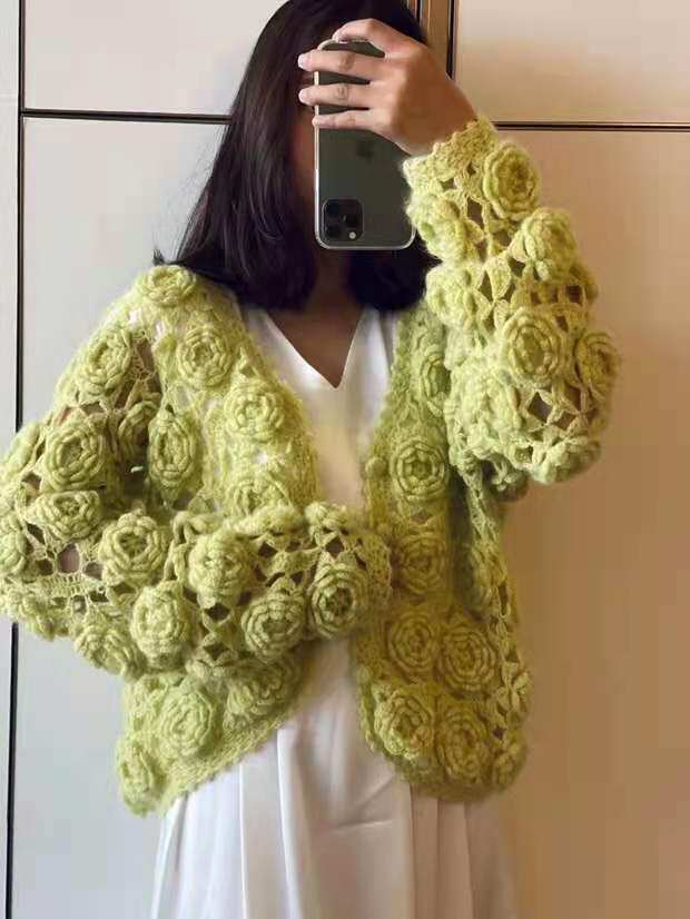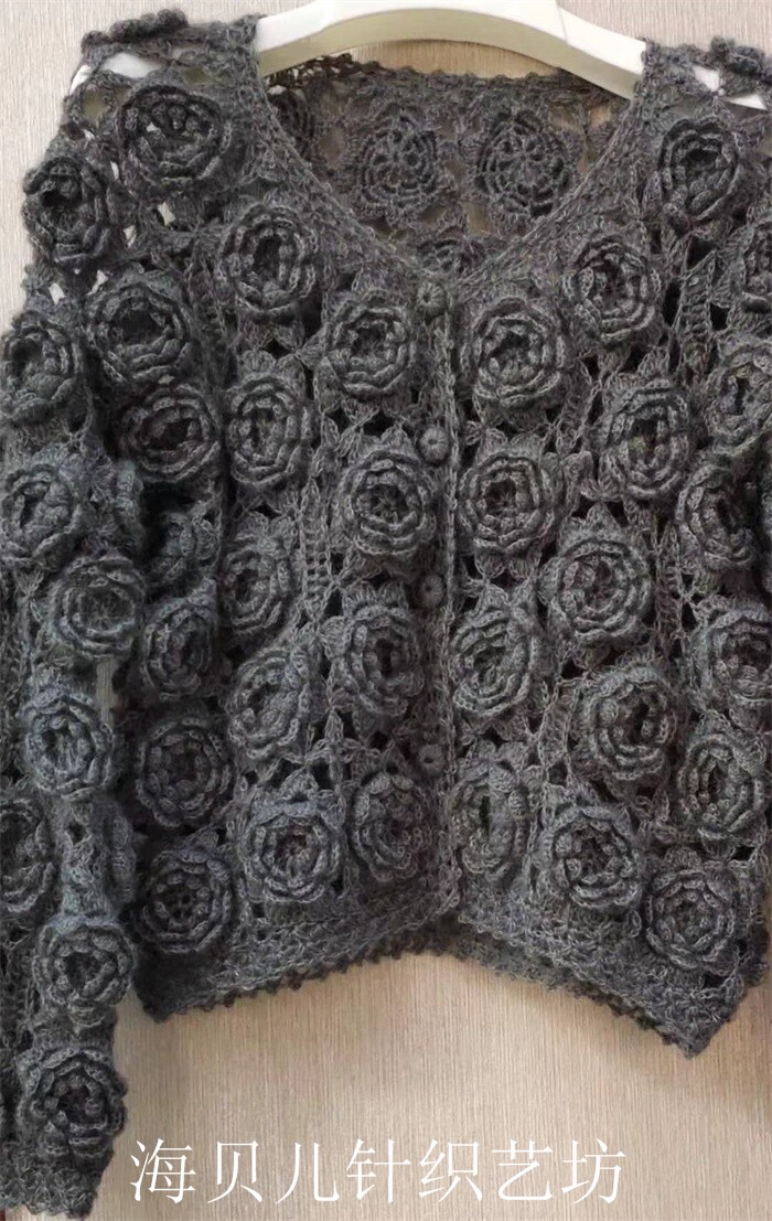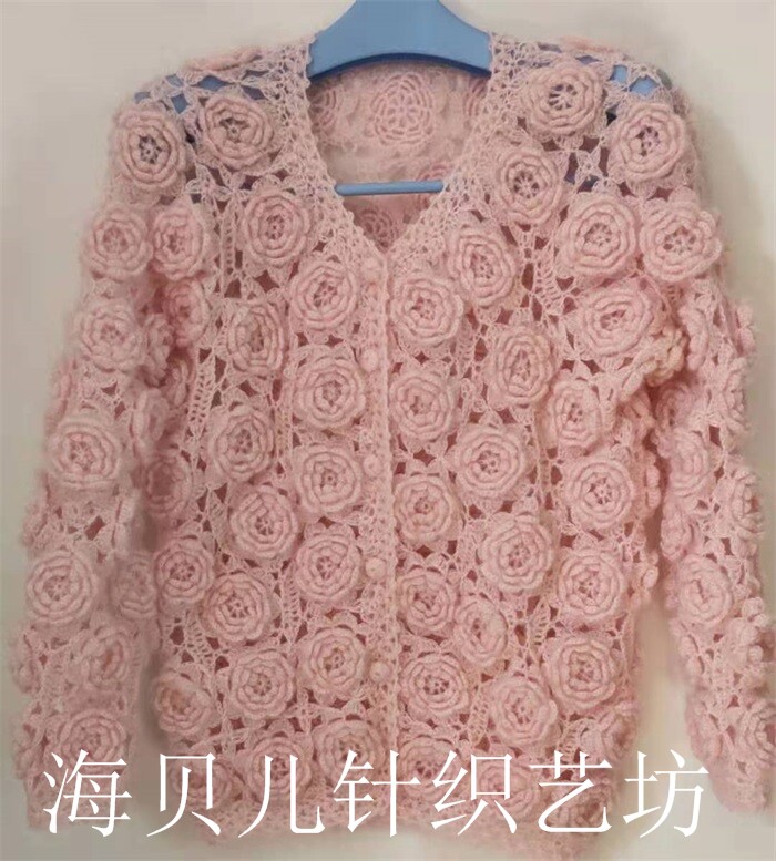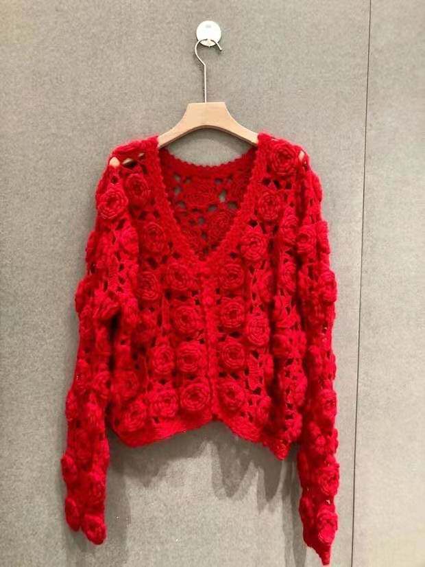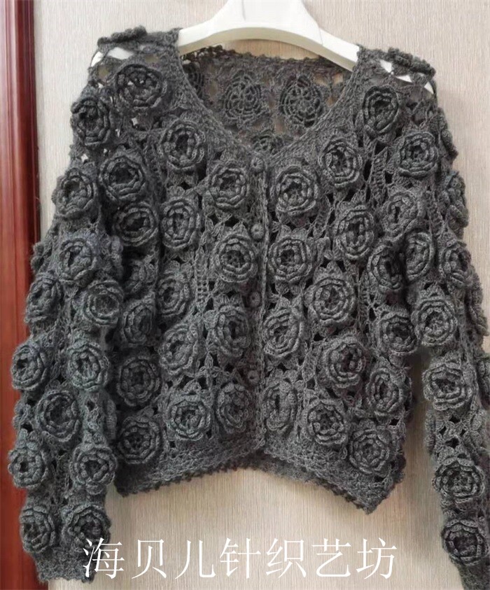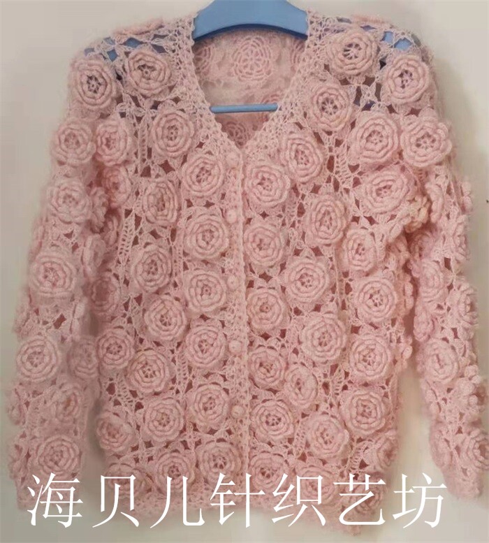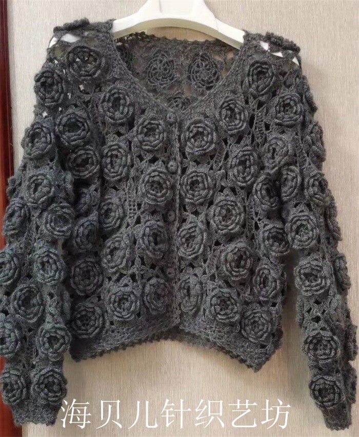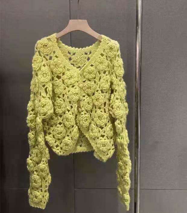 純手工制作超級重工立體花朵鉤花毛衣,耗時長,傳統手工越來越稀缺,不管是制作還是用料都是高成本,這樣的手工藝術品值得您擁有.