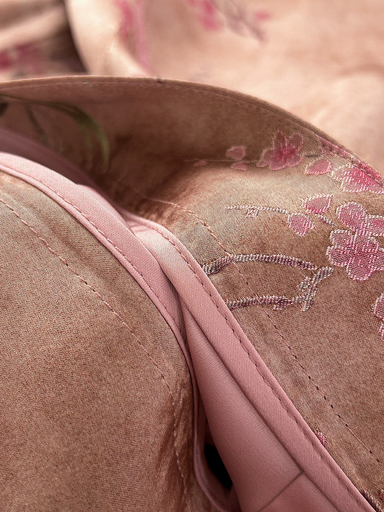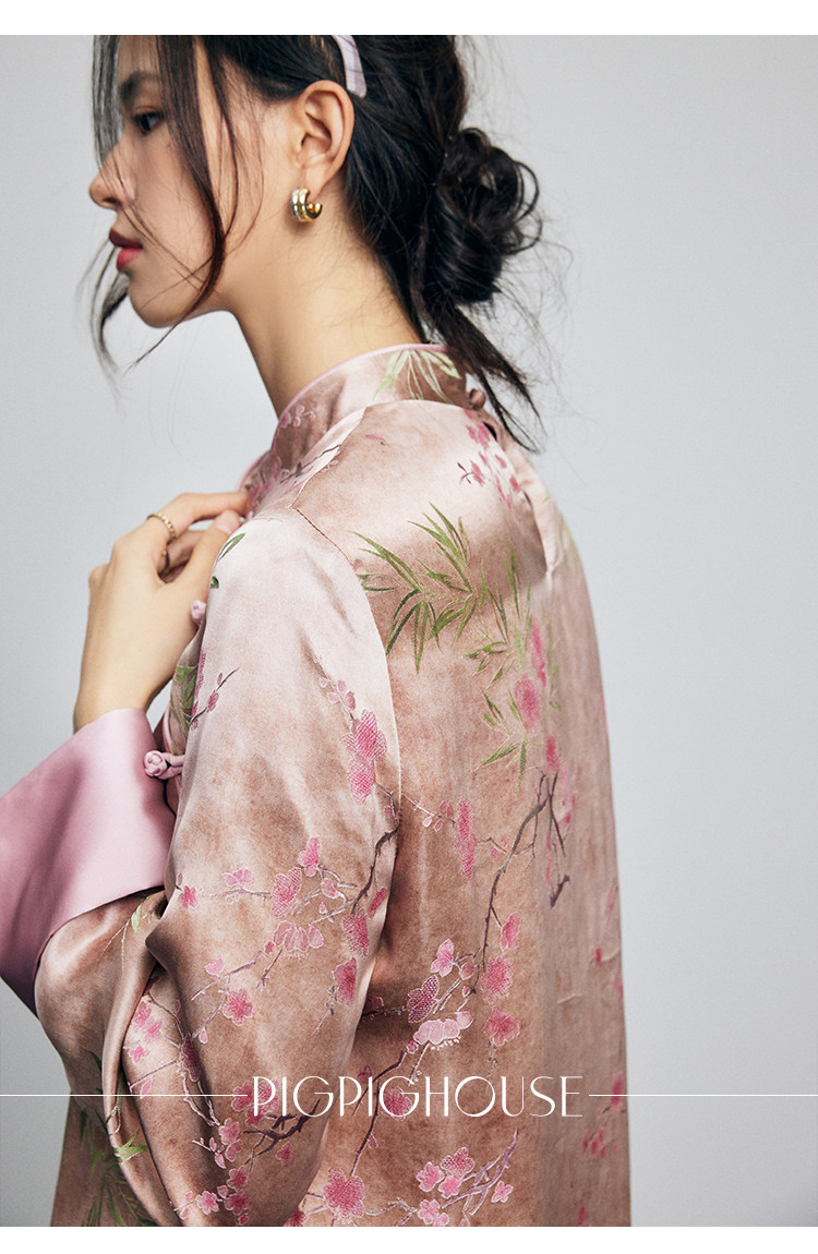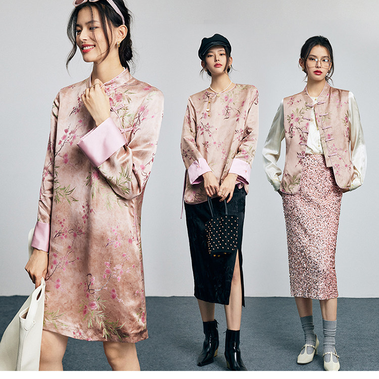 疏影橫斜,暗香浮動 真的很喜歡這個系列,喜愛之情無以言表 用的是人絲香云紗面料,中國的非物質文化遺產 純植物染料染色,工序復雜,環·保親膚 這個系列分連衣裙、外套、馬甲和半裙,都可以嘗試! ![]() ![]() 非物質文化遺產,人絲香云紗 質感、細膩度都可以媲美真絲香云紗面料 面料以緞面提花工藝織造,質感細滑、柔爽 再經過香云紗的染整工藝處理 整個手感以及品質都有質的提升!!! ![]() 新中式旗袍裙 沒有拘泥于傳統的曲線塑造,放松了衣身 整個版型更具包容性,沒有傳統旗袍那么挑身材 大大降低了對身材的限制 即便身形不夠玩美,也能穿出自信 兩款上衣,一款相對復古一些 斜開襟+側邊系帶的設計 具有明顯的明清時期風格,古韻古香 另外一款相對要簡約現代一些 但也沒有失掉中式的精髓,大方典雅 ![]() 馬甲是灰常經典的立領+對襟+盤扣設計 衣身寬松有容量,疊穿各類貴價真絲衫或者是羊毛衫都可 半裙以輕盈的質感以及滿滿的女人味取勝 盤扣+側開衩,別致時髦 行走間,一顰一笑皆是風情 |