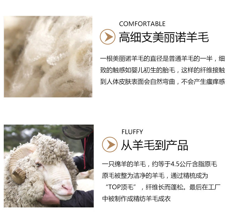 采用90%髙支進口美麗諾羊毛并進行了獨有的工藝處理