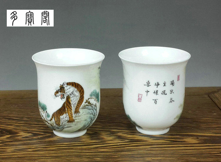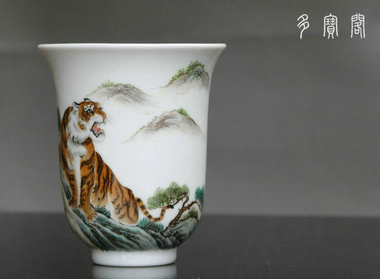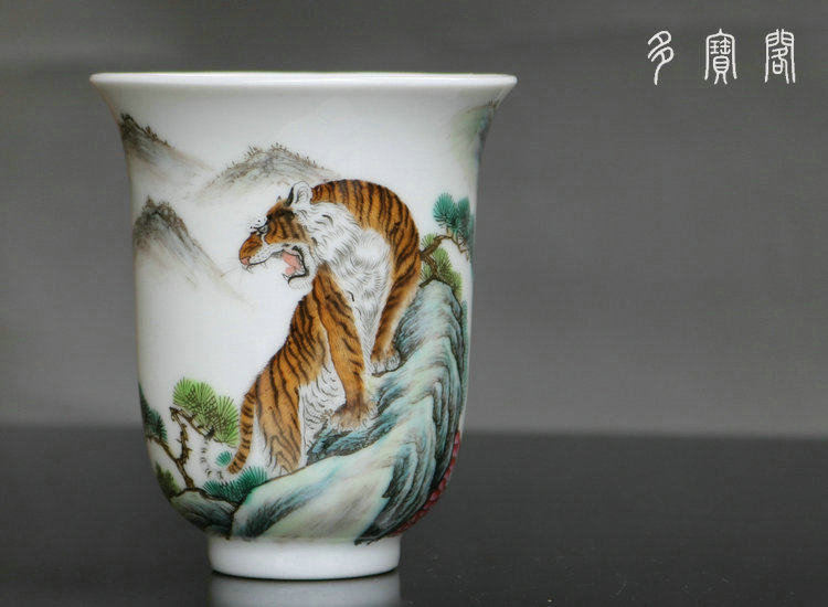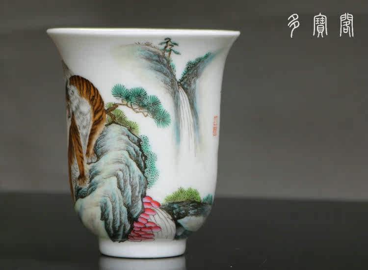 名 稱:粉彩老虎圖金鐘杯